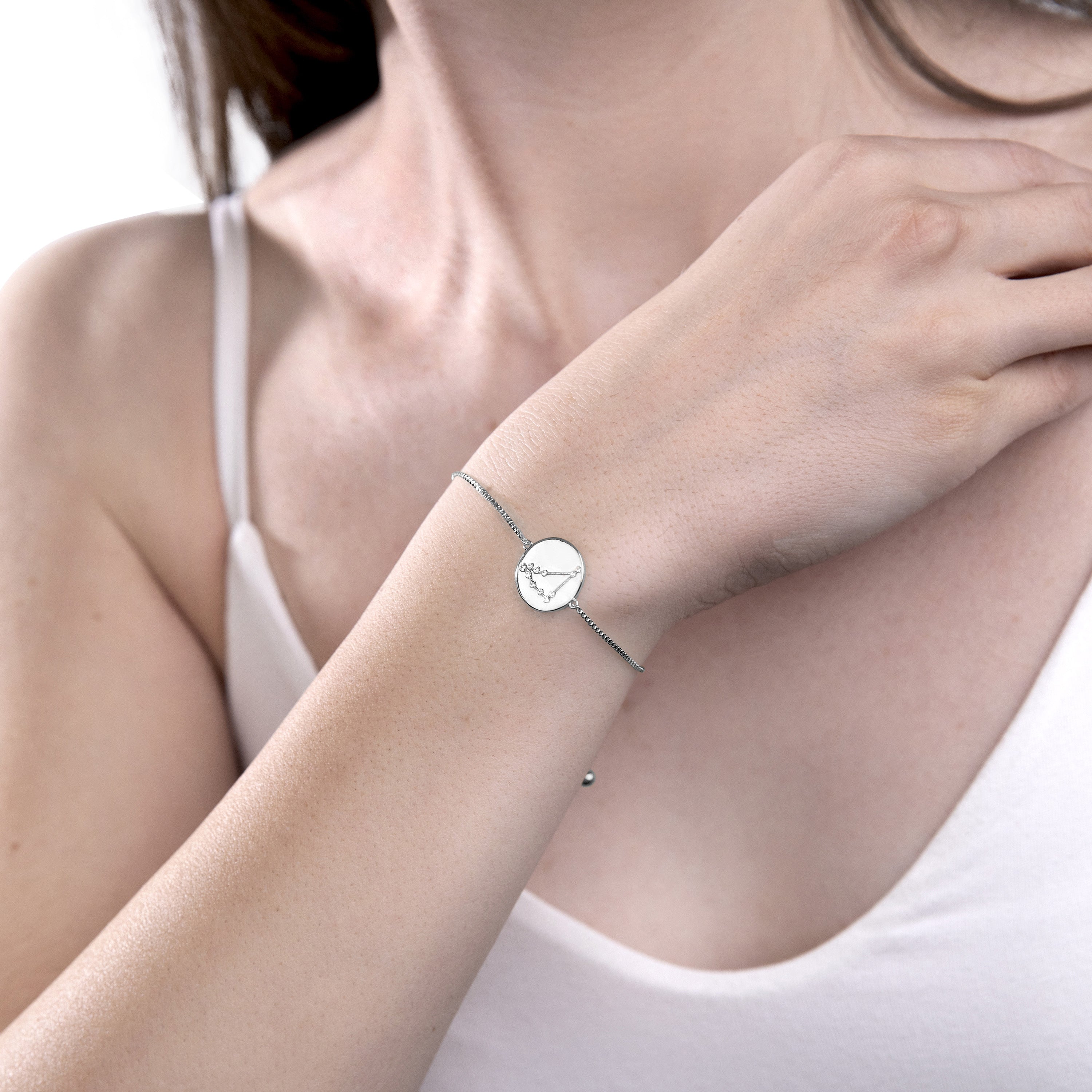 Sterling Silver Taurus Zodiac Crystal Bracelet with Adjustable Chain, 5 to 9 Inches