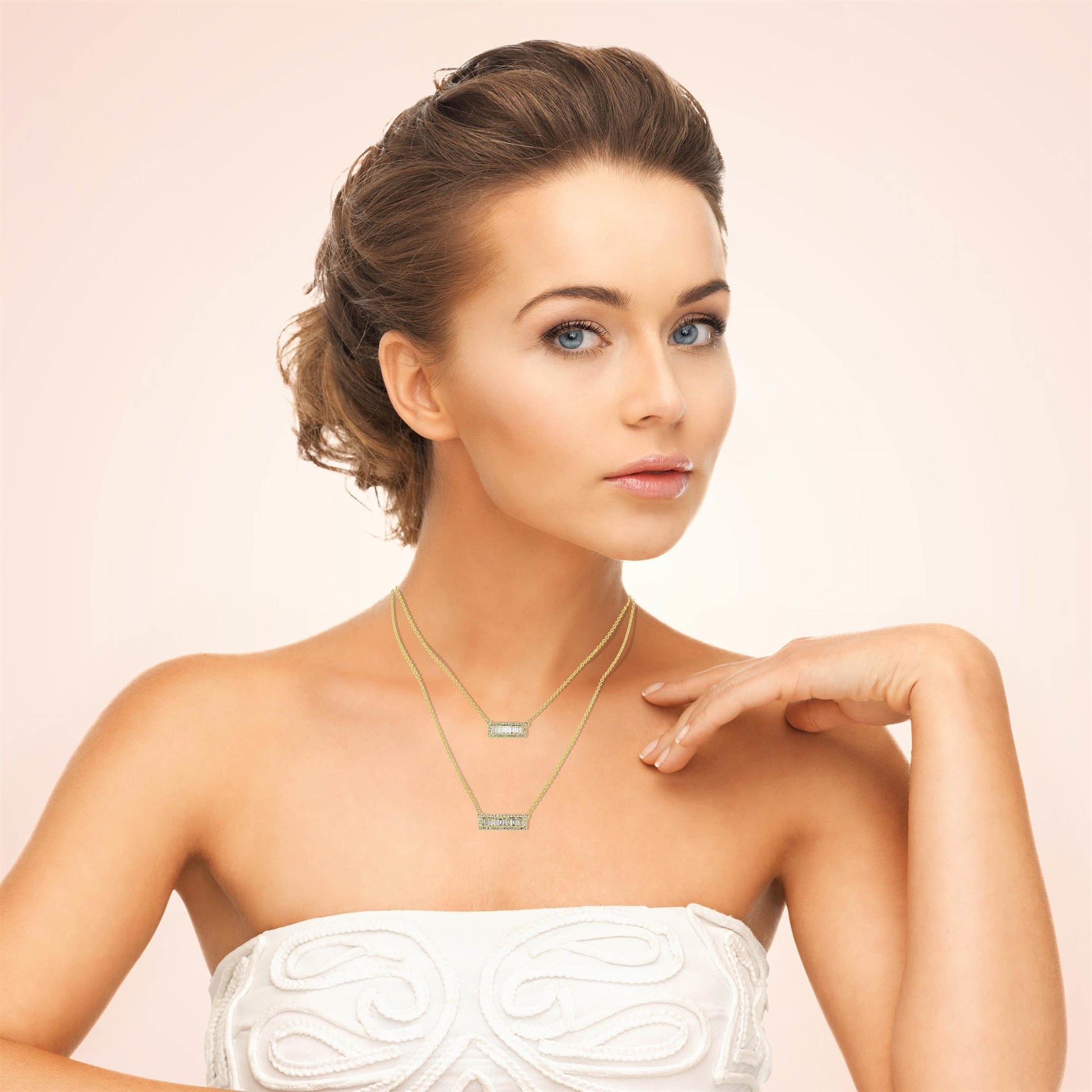 Introducing the Gemistry Collector’s Edition: a luxurious selection of fine jewelry, crafted for those with a discerning eye. Each piece is a timeless masterpiece, perfect for adding unparalleled elegance to your collection. Classic and chic, this genuine 14K Gold necklace is here to elevate your look up a notch. The rectangular charm is studded with shining Diamonds to give you a luxurious feel and the lobster claw clasp and 3" extender allow for a secure, adjustable fit.