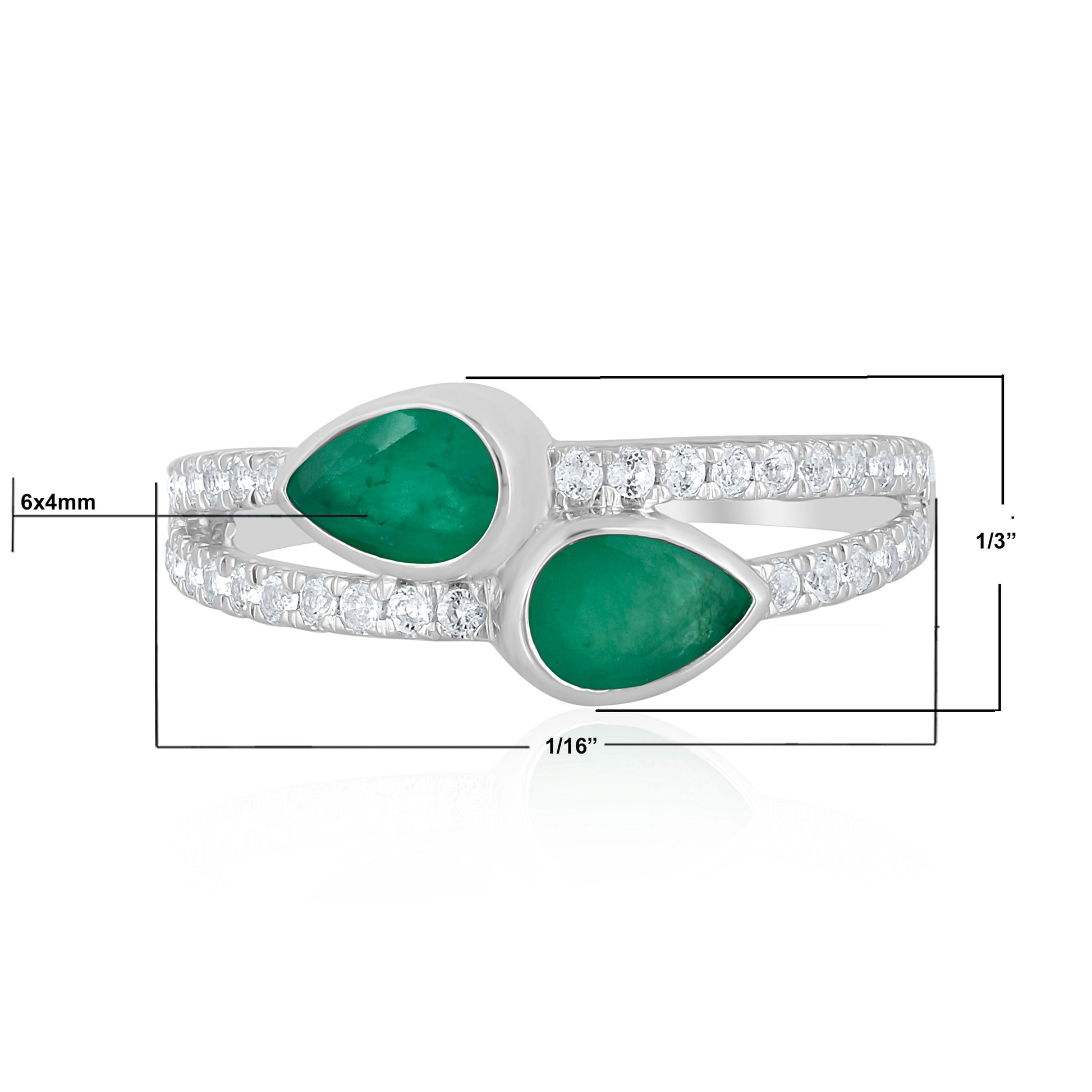 Introducing the Gemistry Collector’s Edition: a luxurious selection of fine jewelry, crafted for those with a discerning eye. Each piece is a timeless masterpiece, perfect for adding unparalleled elegance to your collection. The Gemistry 14K White Gold Gemstone and White Topaz Bypass Ring is the perfect blend of luxury and simplicity. It features a 14K White Gold split-shank band encrusted with pave-set White Topaz gemstones which lead to a bypass design of 2 pear-shaped, bezel set genuine, faceted Emeralds. The band is tapered at the back for comfort and the split shank allows the light to catch the band from all directions. Gemistry’s GIA-certified artisans thoughtfully create each piece to ensure it is lightweight, comfortable, and durable. When finished, we carefully polish and wrap your jewelry in a beautiful black gift pouch and box. At Gemistry, we take great pride in ensuring that each and every jewel and gemstone that Gemistry has access to is responsibly sourced, guaranteed. In addition, all Gold and precious metals are recovered responsibly in accordance with The Responsible Gold Mining Principles.