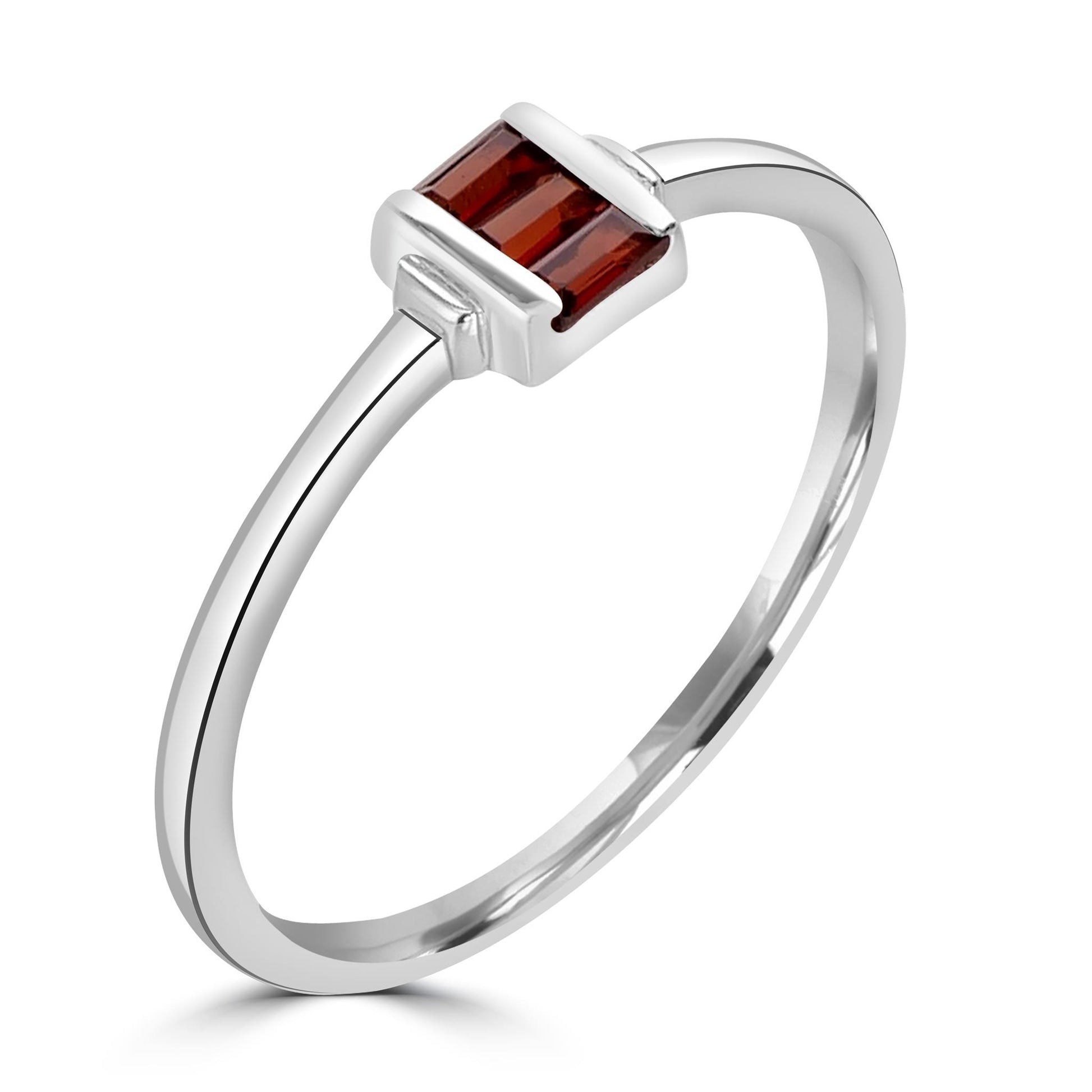 Introducing the Gemistry Stack Ring Collection : a versatile assortment of rings designed for effortless layering. Each piece combines timeless sophistication with modern flair, perfect for adding a touch of chic to any outfit. Mix, match, and stack to create your own unique style statement. The Ava 3-Stone Baguette Gemstone Ring is hand crafted from genuine Sterling Silver. The bezel setting holds 3 genuine Garnet gemstones, stacked horizontally on top of each other - perfect for those born in January. The Garnet birthstone symbolizes love, friendship and healing broken bonds, and is often associated with strength and vitality, making it an ideal gemstone for those born in this winter month.