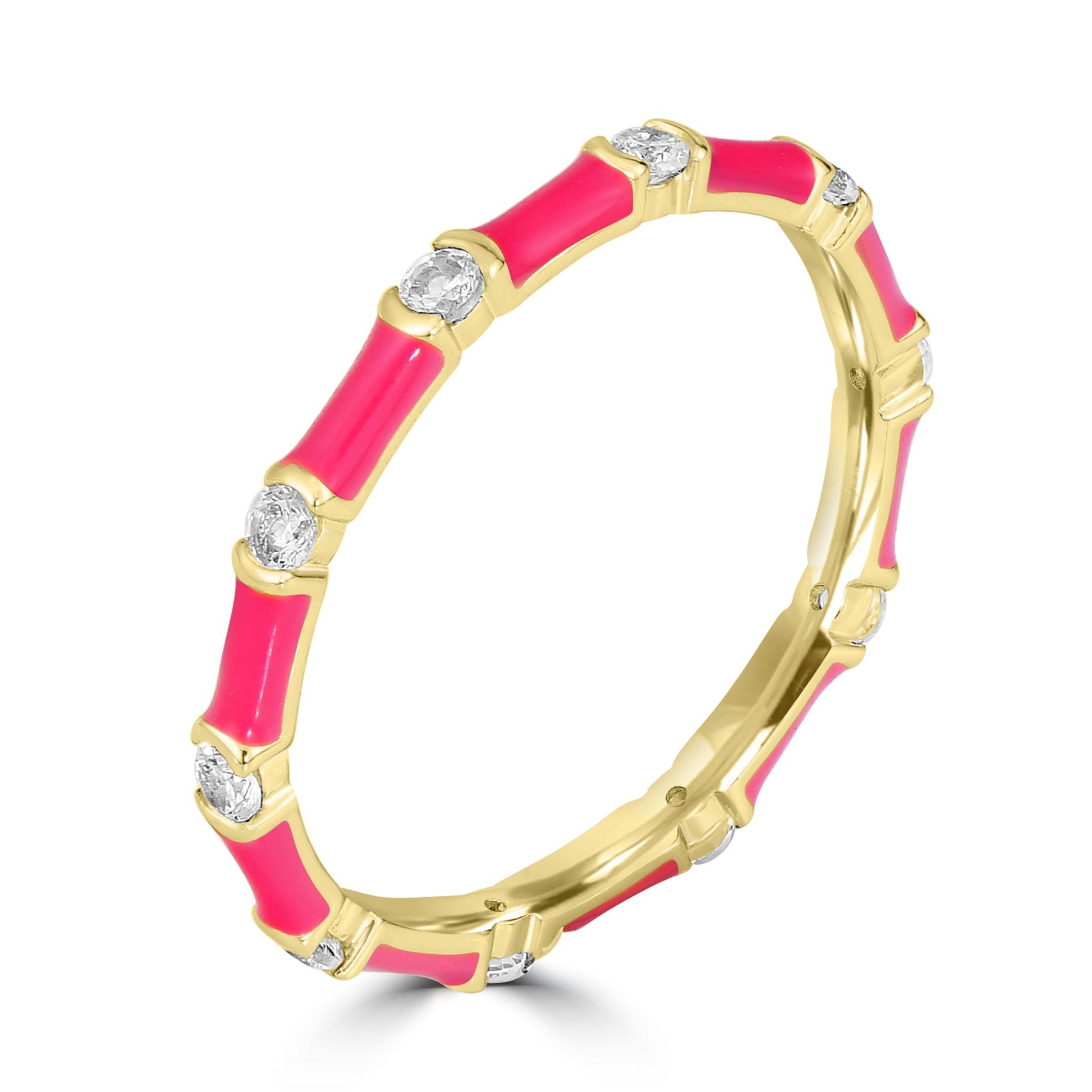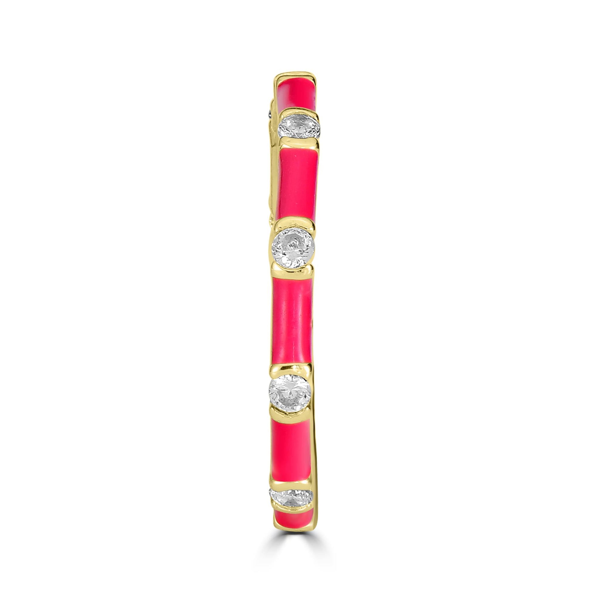 Bob Mackie is an internationally renowned costume and fashion designer who has dressed some of the most glamorous entertainment icons in the world. Gemistry has partnered with Bob Mackie in a brand new collaboration that marries the designer's exquisite sense of glamour and vibrant color with Gemistry's expertise in quality and craftmanship. The Gemistry Bob Mackie Band Ring features a Gold over Brass band with a high-polish finish. The center of the ring showcases 10 round Cubic Zirconia stones set in a prong setting. The stones are arranged in a symmetrical pattern, creating a balanced and visually appealing design. The red enamel accent adds a modern and stylish touch to the overall design, providing a striking contrast against the Gold finish and the sparkling Cubic Zirconias. Wear it alone or in a stack. Whether you want to elevate your look, surprise someone with a thoughtful present, or celebrate a milestone, this exclusive ring helps you do just that! We are a modern brand that redefines luxury. With a focus on craftsmanship, sustainability, and transparency, Gemistry is committed to creating timeless pieces that will be treasured for generations.