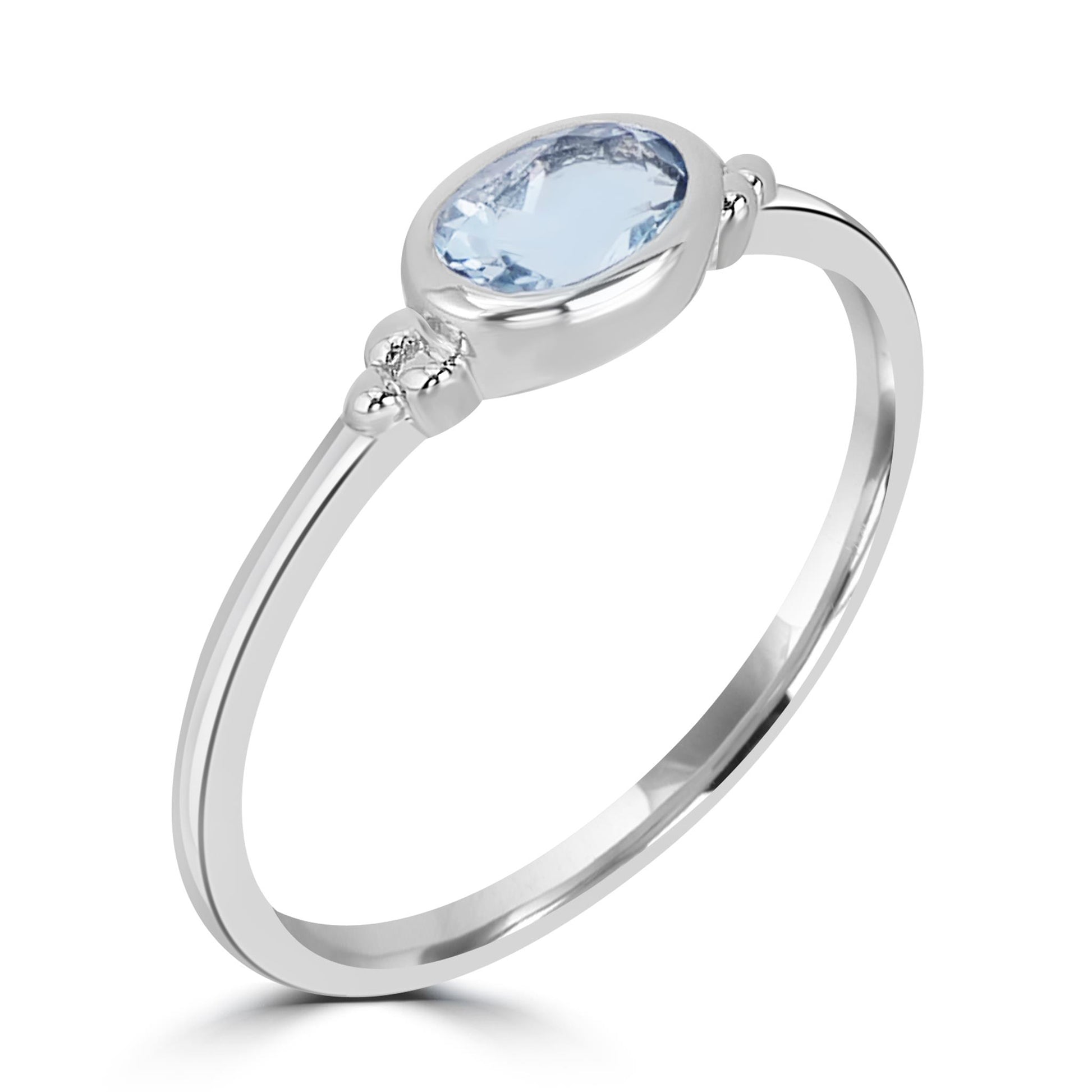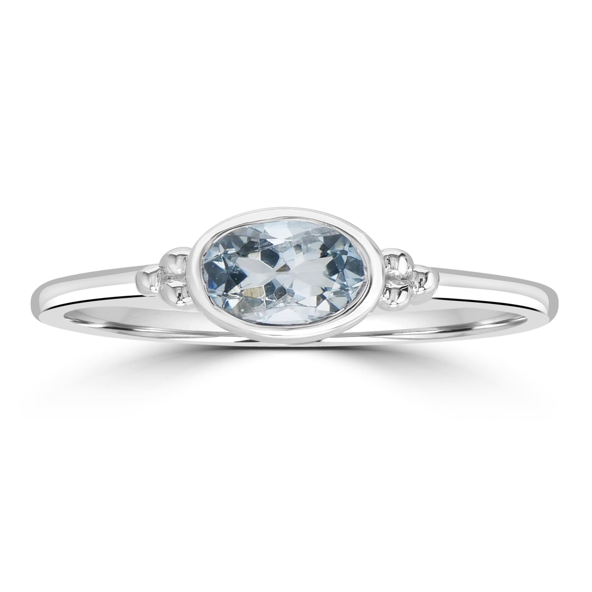 Introducing the Gemistry Stack Ring Collection : a versatile assortment of rings designed for effortless layering. Each piece combines timeless sophistication with modern flair, perfect for adding a touch of chic to any outfit. Mix, match, and stack to create your own unique style statement. The Gemistry East-West Sterling Silver Aquamarine Gemstone Stackable Solitaire Bezel Ring features an oval bezel-set genuine Aquamarine gemstone mounted horizontally, which makes it stunning to wear alone or convenient to stack for a layered look. Aquamarine is the birthstone for the month of March. It symbolizes serenity, courage, and clarity. Its light blue to bluish-green color is reminiscent of the sea, and it has long been associated with calmness and peace.