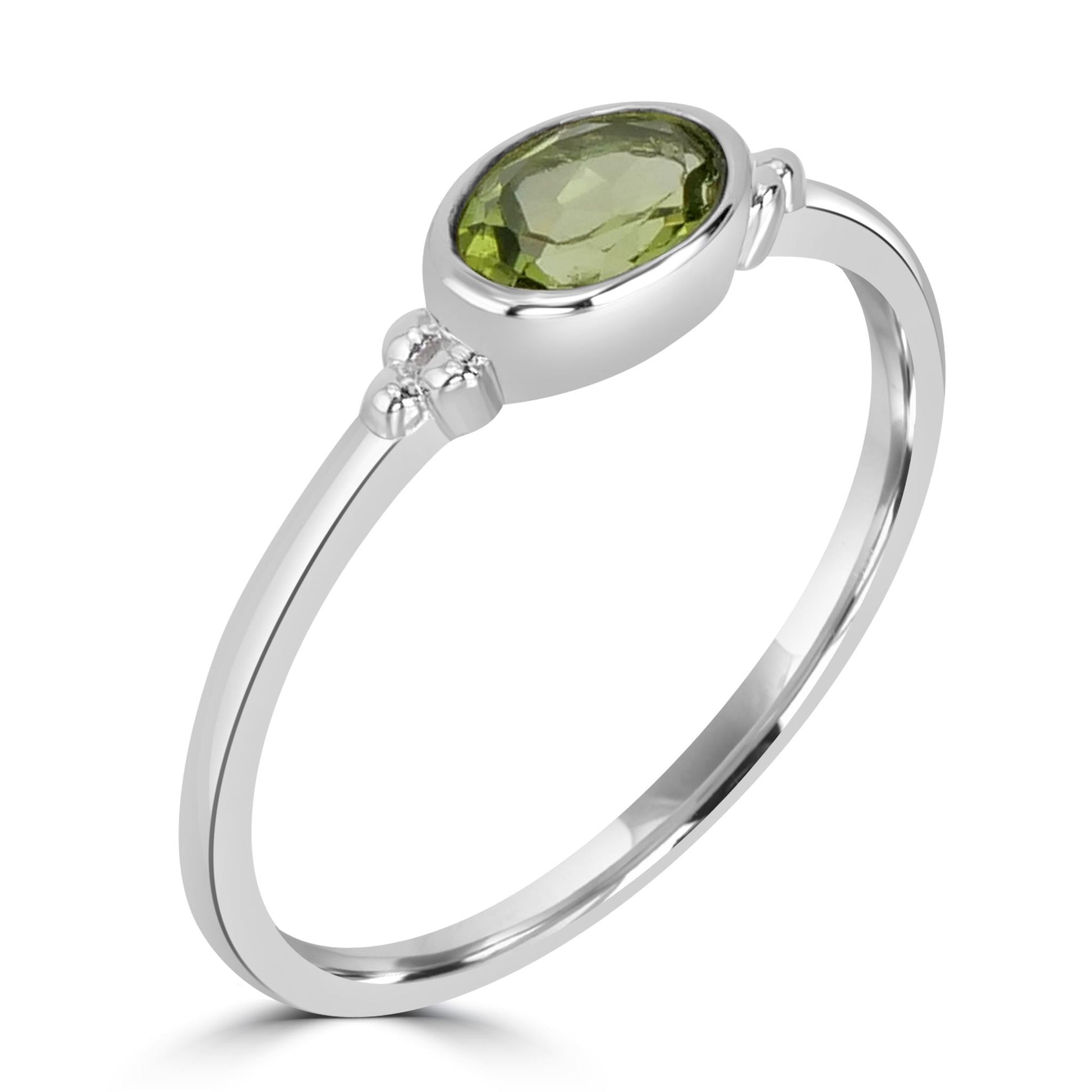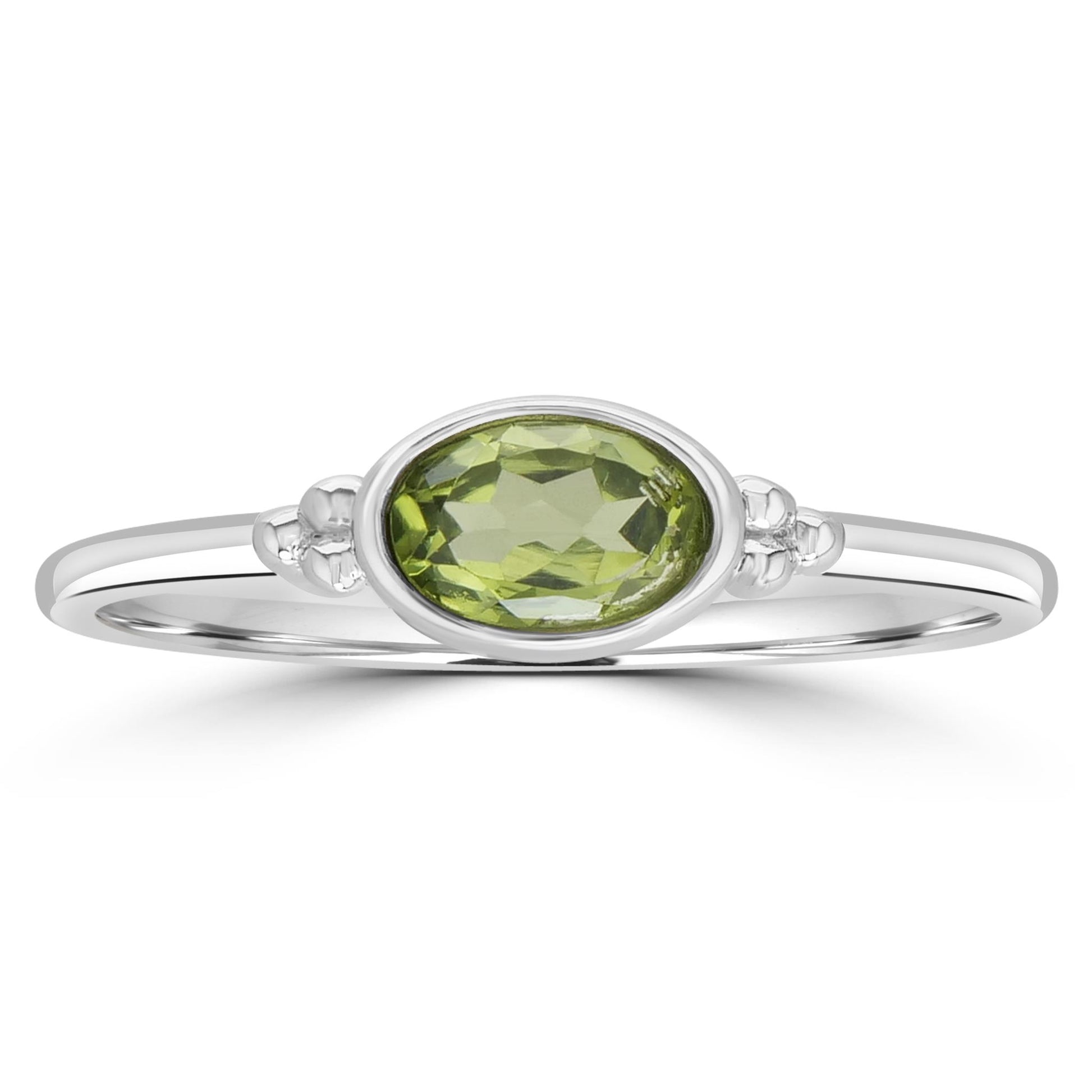 Introducing the Gemistry Stack Ring Collection : a versatile assortment of rings designed for effortless layering. Each piece combines timeless sophistication with modern flair, perfect for adding a touch of chic to any outfit. Mix, match, and stack to create your own unique style statement. The Gemistry East-West Sterling Silver Stackable Solitaire Bezel Ring features an oval bezel-set genuine Peridot gemstone mounted horizontally, which makes it stunning to wear alone or convenient to stack for a layered look. Peridot is the birthstone for the month of August. It symbolizes prosperity and good fortune.