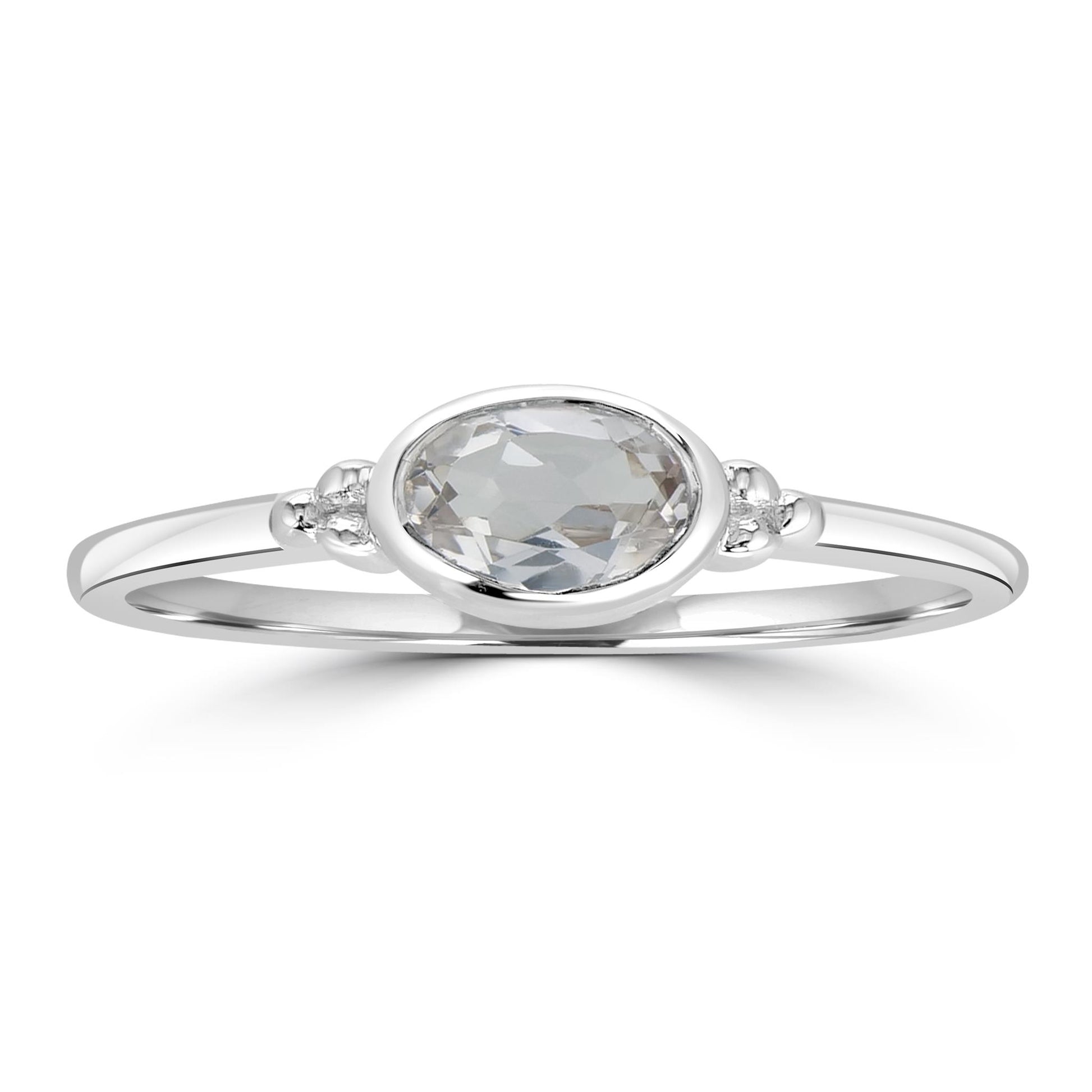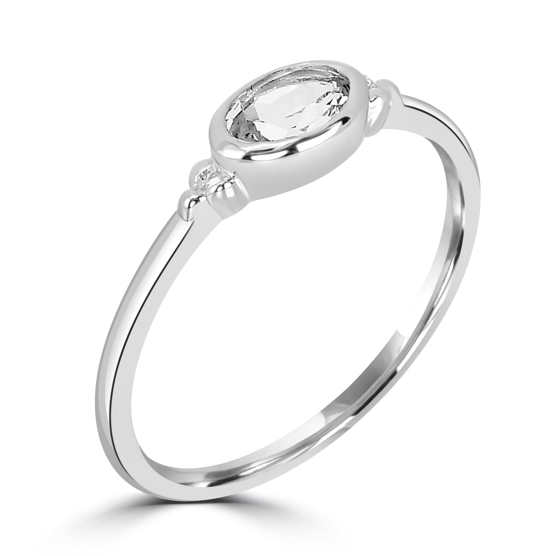 Introducing the Gemistry Stack Ring Collection : a versatile assortment of rings designed for effortless layering. Each piece combines timeless sophistication with modern flair, perfect for adding a touch of chic to any outfit. Mix, match, and stack to create your own unique style statement. The Gemistry East-West Sterling Silver Stackable Solitaire Bezel Ring features an oval bezel-set genuine White Topaz gemstone mounted horizontally, which makes it stunning to wear alone or convenient to stack for a layered look. White Topaz is the birthstone for the month of April. It symbolizes clarity and purity, bringing peace and serenity.
