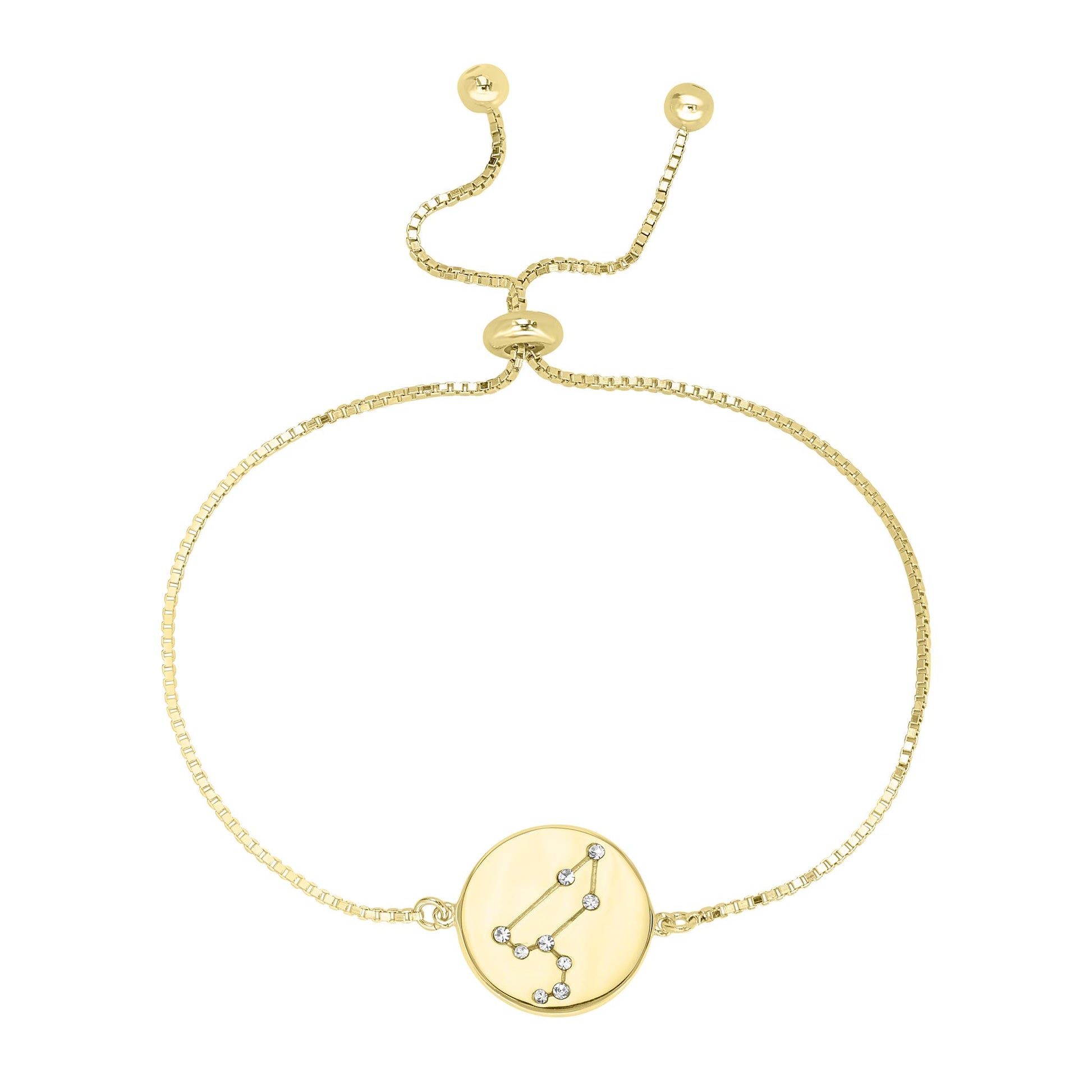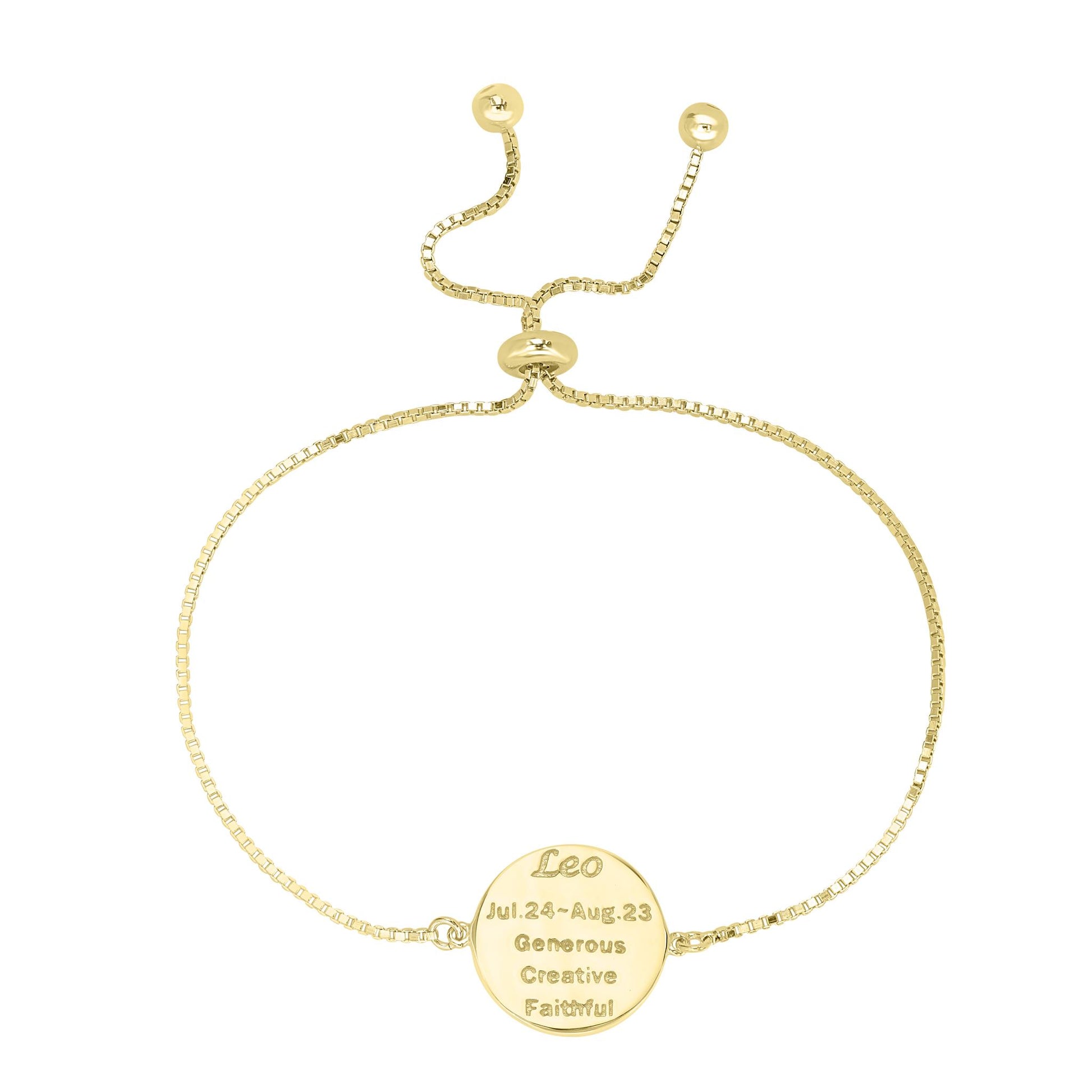 Celebrate your star sign with the Gemistry Zodiac Collection. Each piece depicts the constellation and unique traits of the zodiac signs, offering a personalized touch to your celestial connection. The Gemistry 14K Gold Over Sterling Silver Leo Zodiac Crystal Bracelet features a stunning Leo design adorned with genuine Crystal Quartz gemstones. Handcrafted from nickel-free, 14K Gold-Plated Sterling Silver, this bracelet measures 5 to 9 inches in length, offering an adjustable fit. The genuine Crystal Quartz stones are hand-selected for their clarity, hue, and value, ensuring that each piece is as unique as the individual wearing it. A meaningful gift for those born between July 23rd - August 22nd, Leos are the celestial kings and queens of the jungle and are passionate and loyal. Leos love to be in the spotlight, embracing their fiery and vivacious qualities. Whether worn alone or stacked with other bracelets, it makes a striking statement for any occasion.