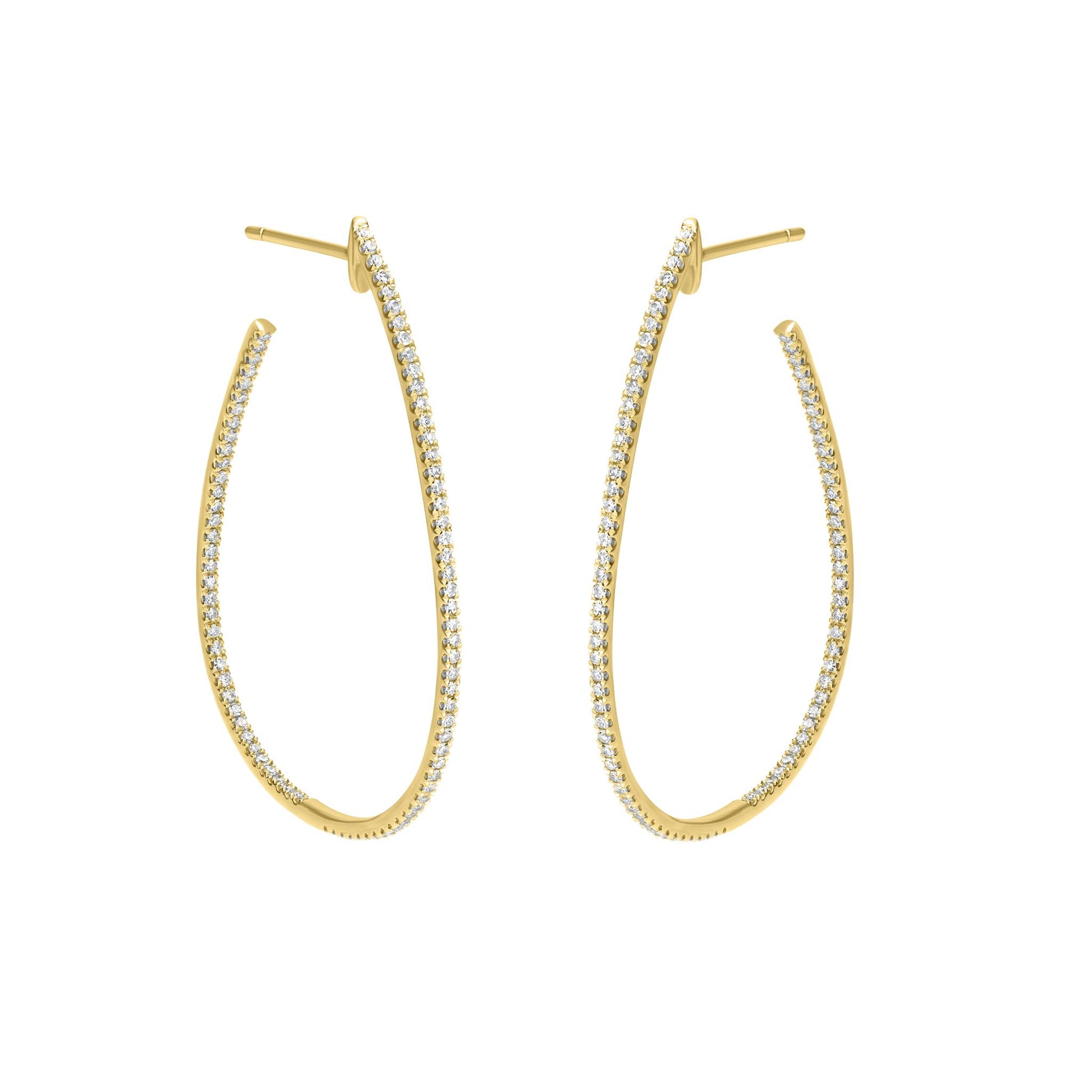 • These earrings are crafted by our master craftsmen. Studded with 169 round diamonds totalling 0.46 Ct in a teardrop-shaped hoop.