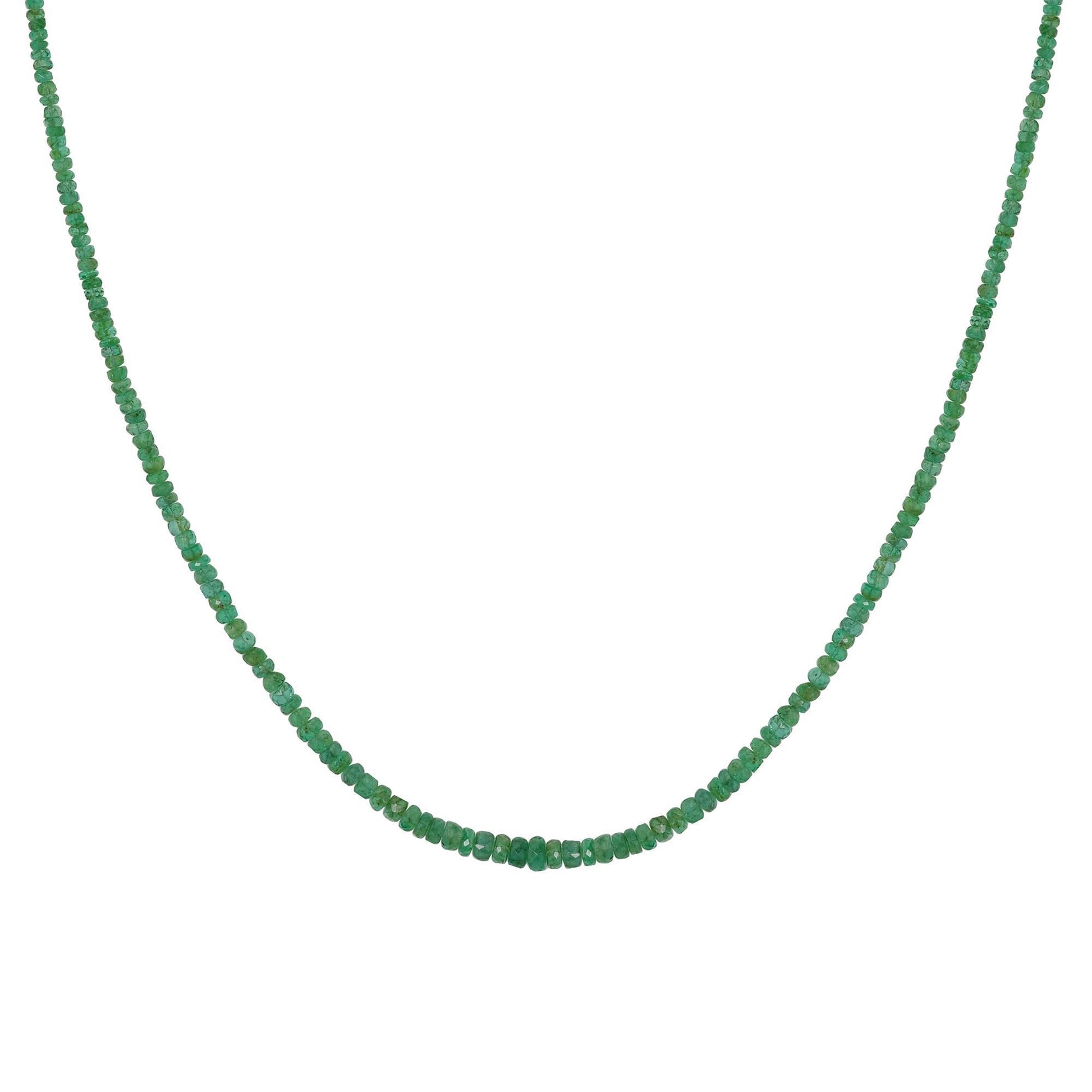This sterling silver women necklace is featured with 2-6 mm round faceted beads of emerald with a total carat weight of 48.60Ct and 1 white diamond set in the link tag . This stand necklace is crafted in genuine, nickel free sterling silver and comes with the stamp of 925 which guarantees the metal purity. This necklace has a lobster clasp and the hanging length is 18 inches . Transform your ensemble with this bright necklace. These faceted emerald round beads look stunning against the neckline. Pair with a black dress and watch the vibrant color pop! Emerald, the birthstone of May, carries the rich green color of Spring and radiates a beautiful vivid tone.