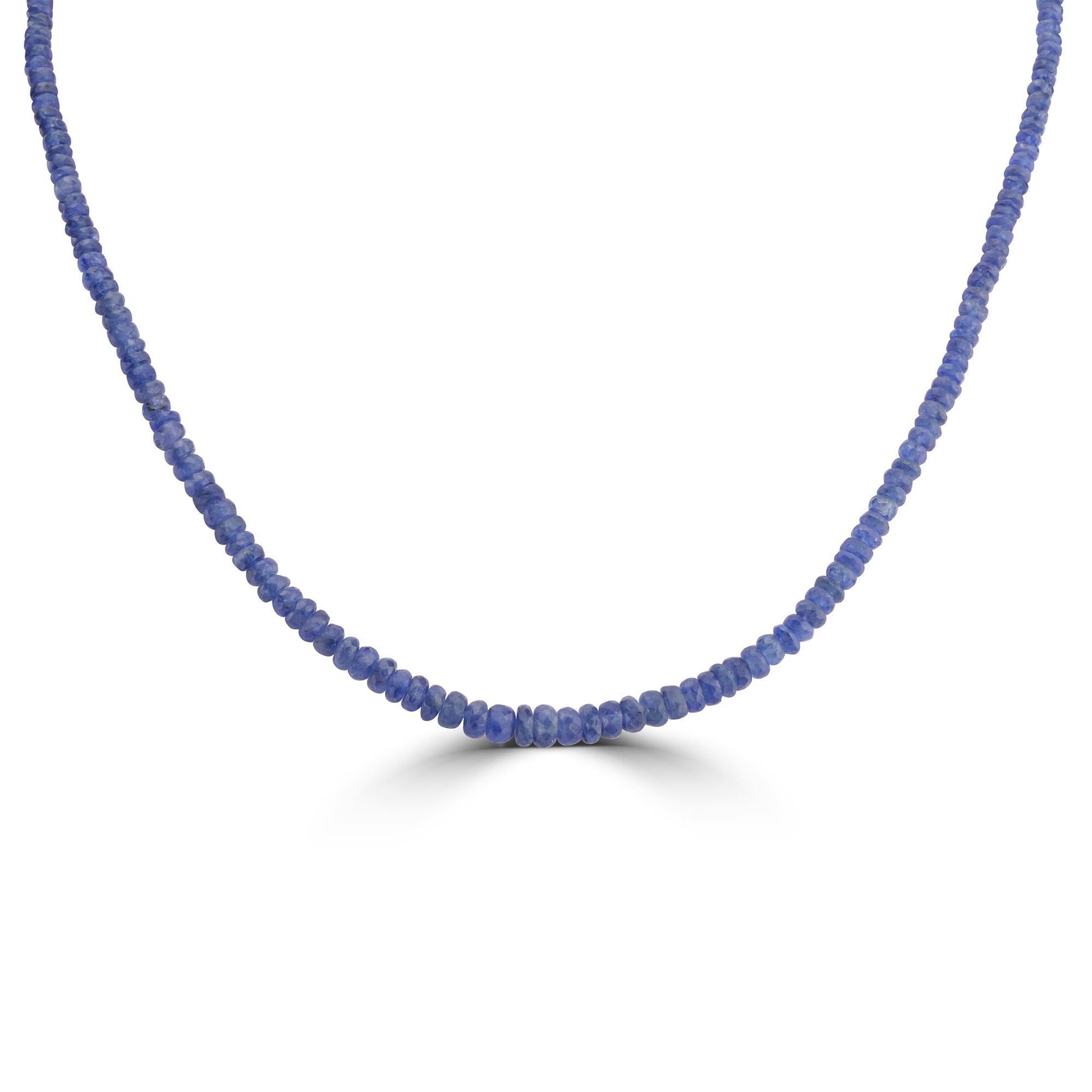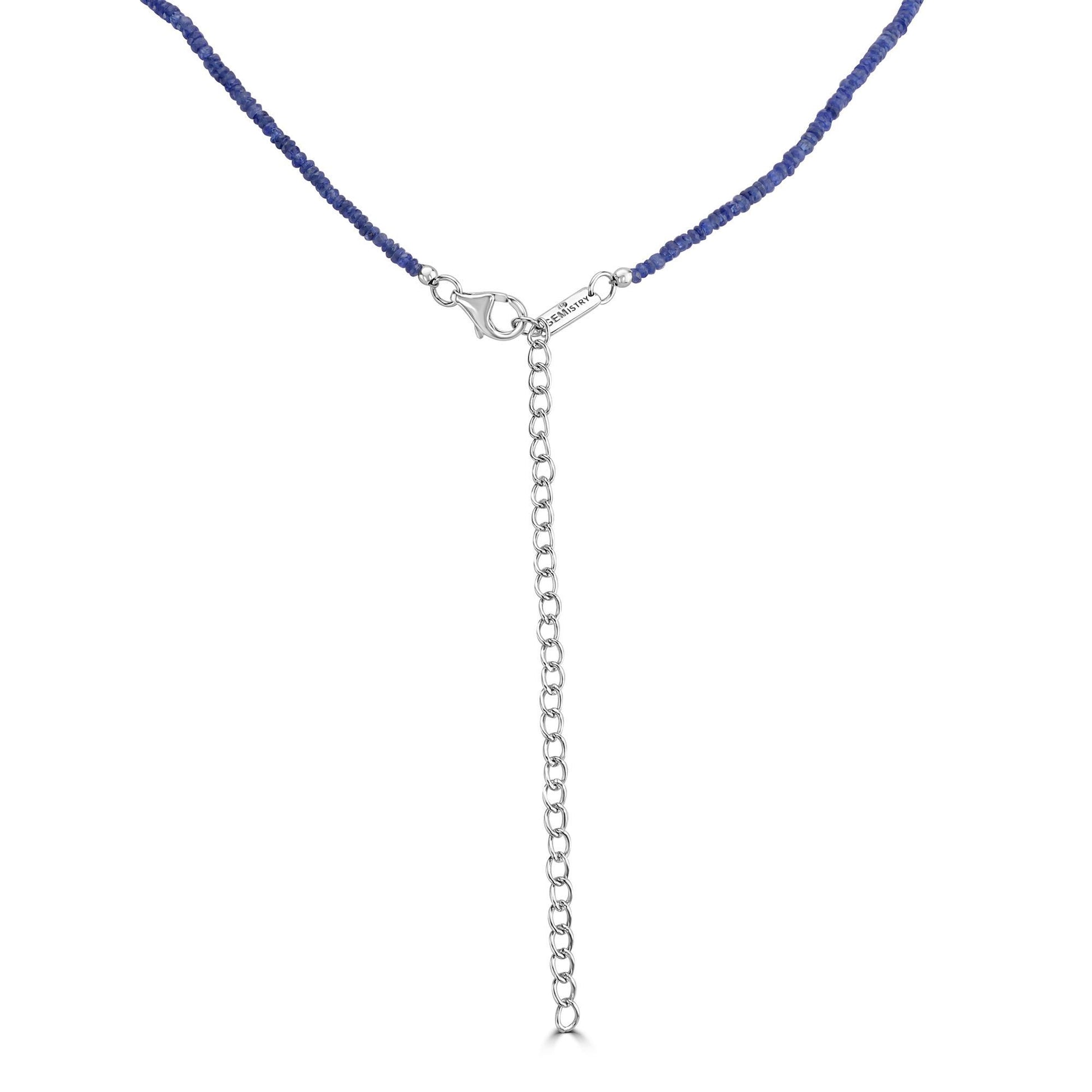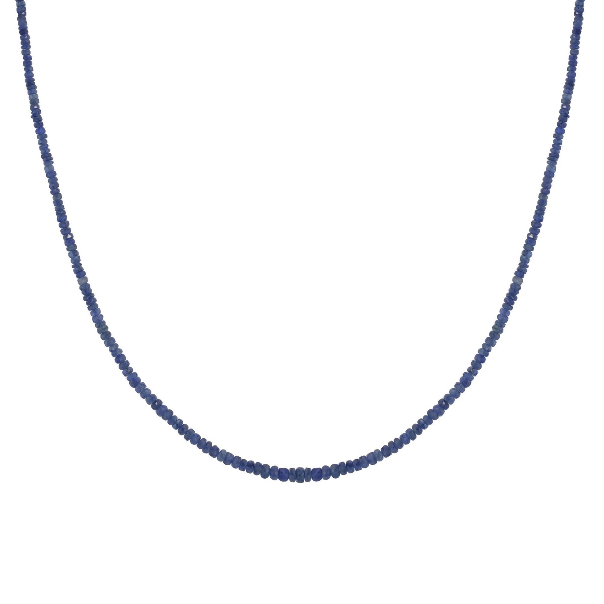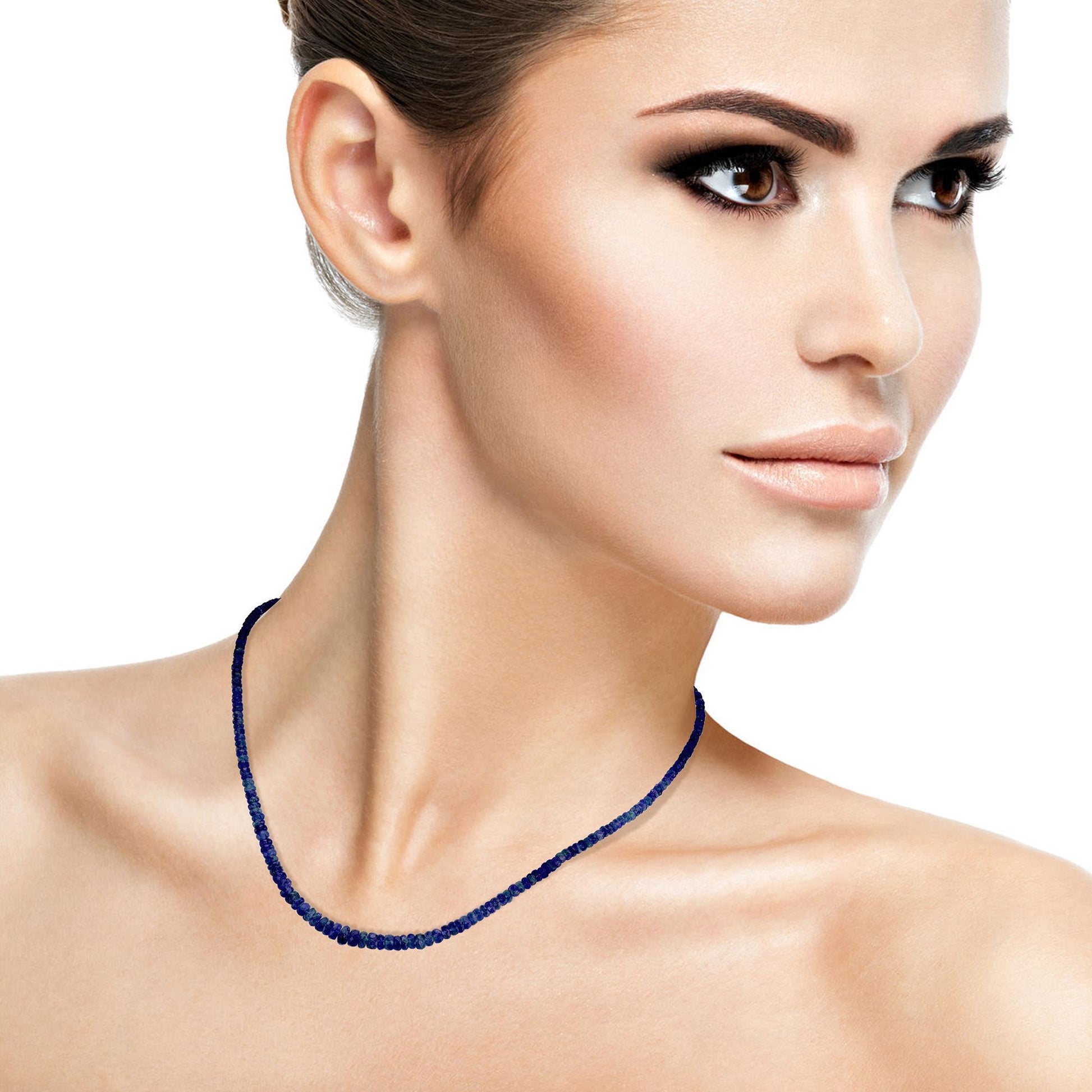 This sterling silver women necklace is featured with 2-6 mm round faceted beads of blue sapphire with a total carat weight of 48.10 Ct and 1 white diamond set on the link tag . This stand necklace is crafted in genuine, nickel free sterling silver and comes with the stamp of 925 which guarantees the metal purity. This necklace has a lobster clasp and the hanging length is 18 inches . Transform your ensemble with this bright necklace. These faceted blue sapphire round beads look stunning against the neckline. Sapphire, the birthstone of September, is most desired in its pure, rich blue color.