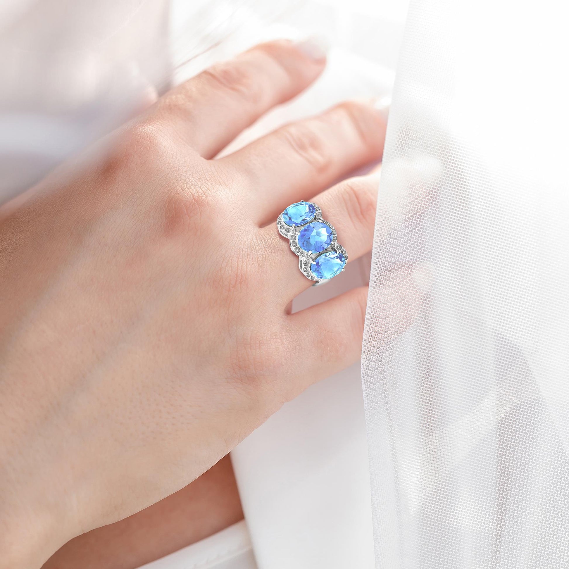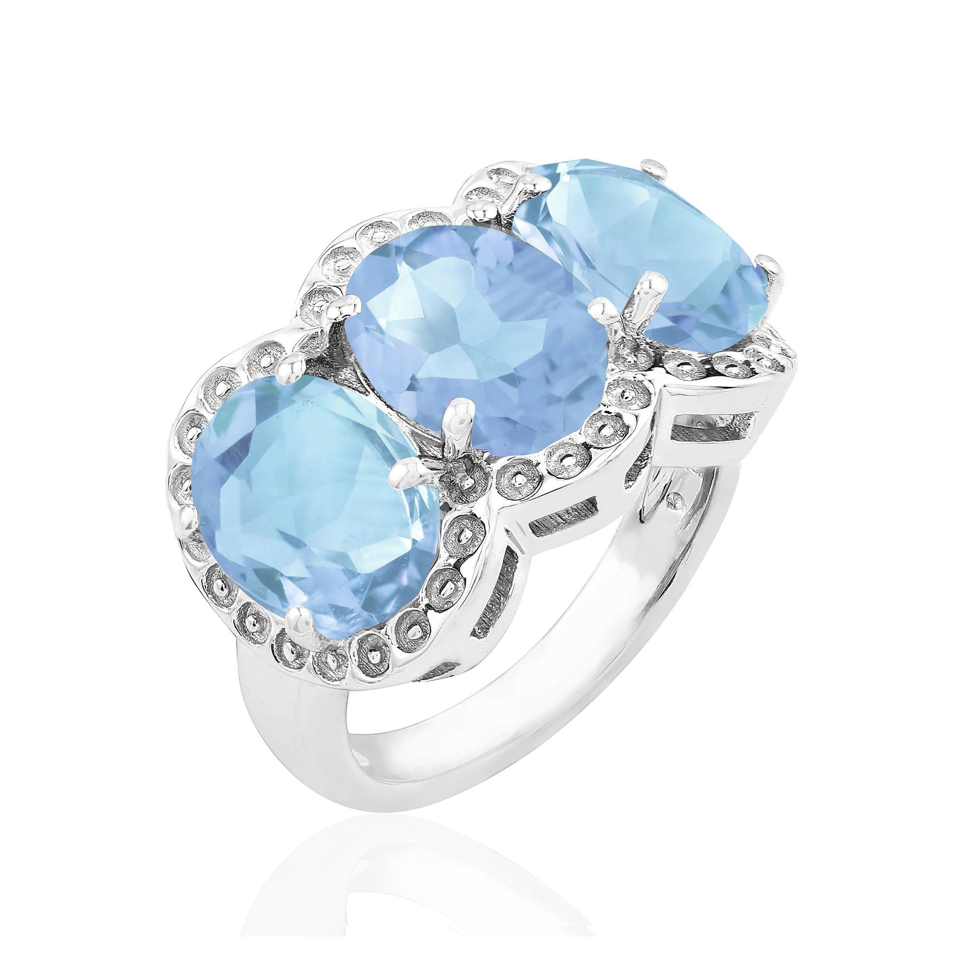 Introducing the Gemistry Birthstone Collection: stylish jewelry featuring your birth month’s unique gemstone. Celebrate your individuality with these beautiful, personal pieces—perfect for gifts or treating yourself! Handcrafted from .925 Sterling Silver, this stunner features three 7x9mm oval-cut Sky Blue Topaz gemstones with a total carat weight of 6.33 Cttw. Rhodium plating helps to reduce tarnishing. Blue Topaz is the birthstone of the month of December. It is believed to promote emotional balance, enhance creative expression.