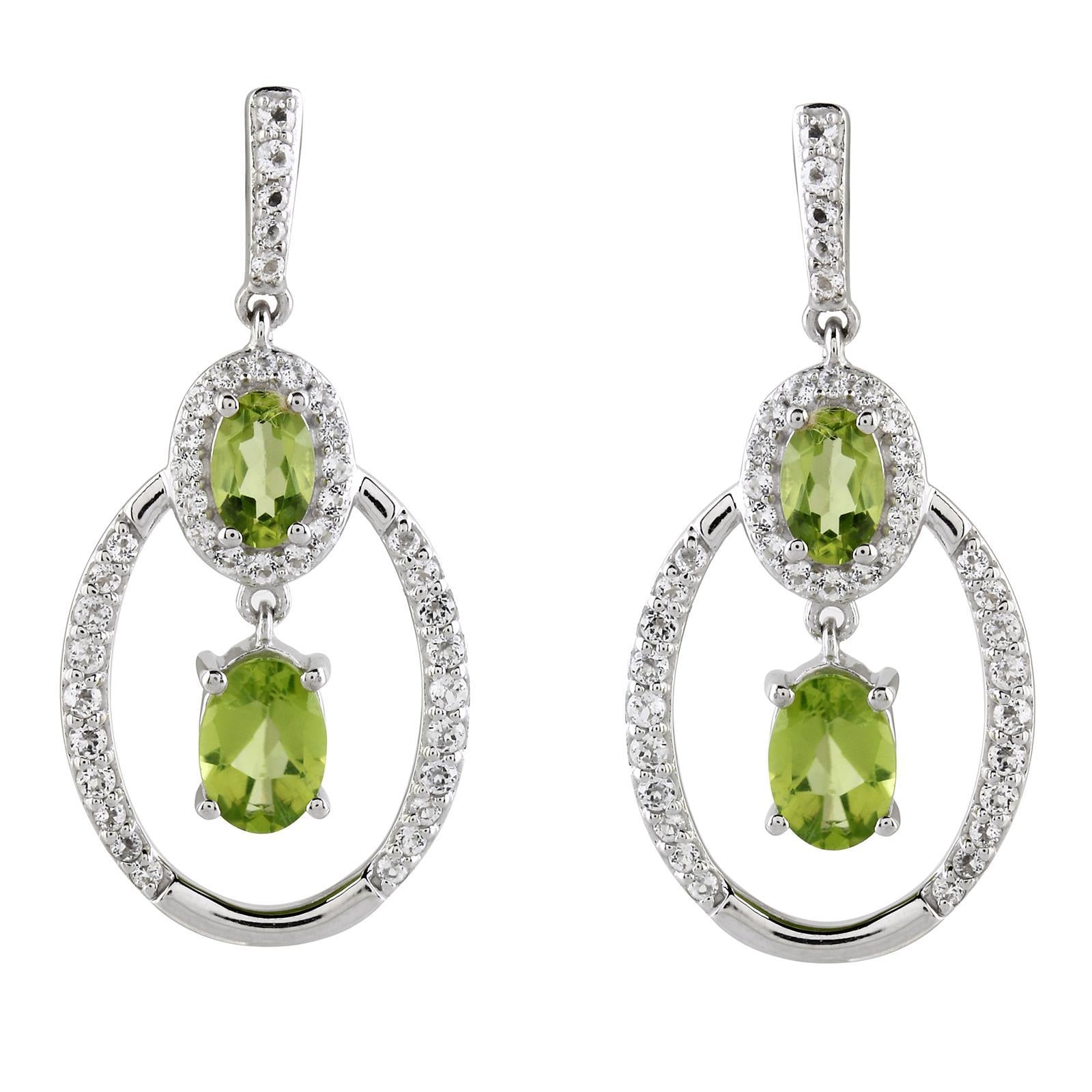 These sterling silver earrings feature oval peridots and round white topaz. This product is crafted in sterling silver and comes with the stamp of 925 which guarantees the metal purity. These earrings will flatter your looks with oval drops of peridot accented with white topaz for extra twinkle.