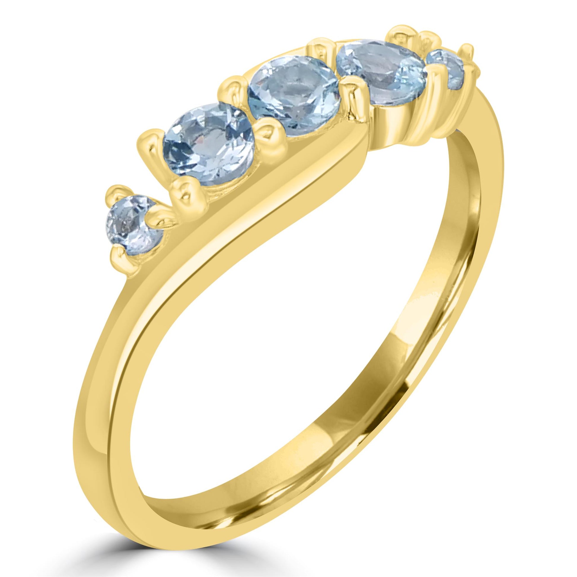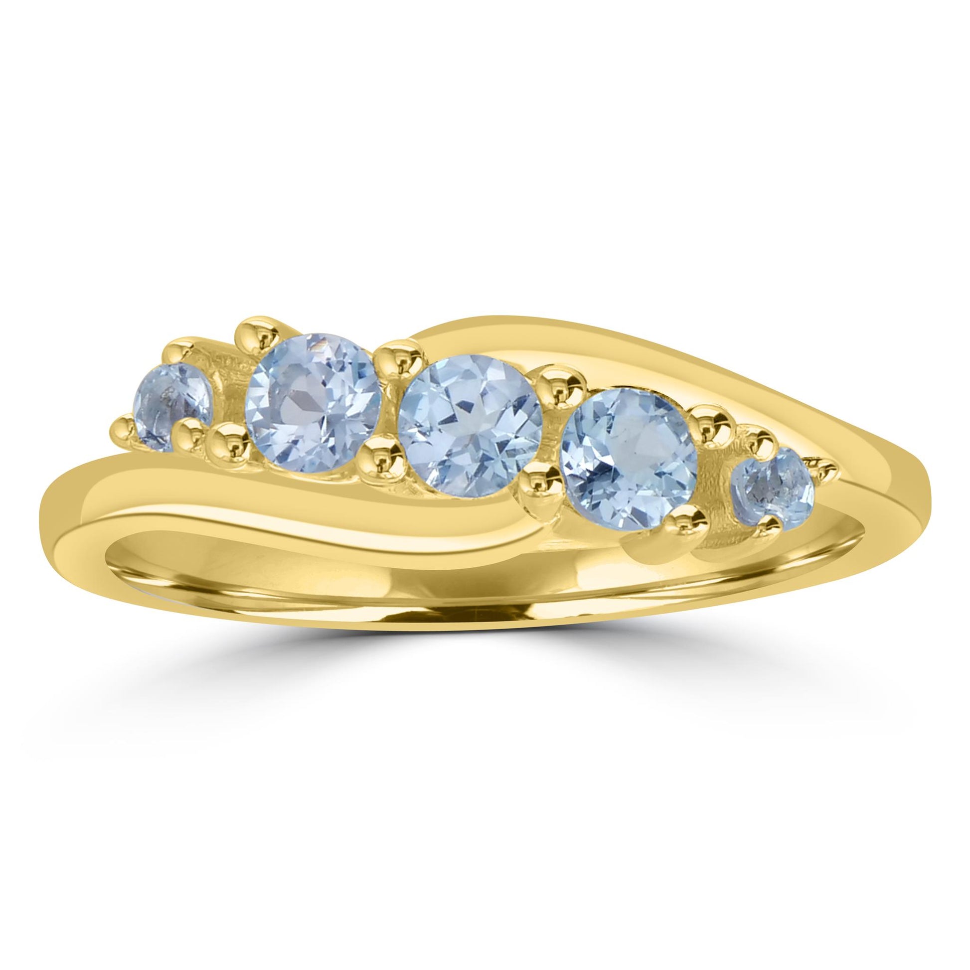 Introducing the Gemistry Birthstone Collection: stylish jewelry featuring your birth month’s unique gemstone. Celebrate your individuality with these beautiful, personal pieces—perfect for gifts or treating yourself! The Gemistry Angela 5-Stone Wave Ring is designed with 5 genuine round gemstones set in a wave designed band crafted from .925 Sterling Silver with 14K Gold Hamilton plating. Three 3.25mm Aquamarine gemstones adorn the center of the ring, flanked by two 2.5mm genuine Aquamarine gemstones. Aquamarine is March's birthstone. It symbolizes truth and wisdom, helping one to clear their mind. Gemistry’s GIA-certified artisans thoughtfully create each piece to ensure it is lightweight, comfortable, and durable. When finished, we carefully polish and wrap your jewelry in a beautiful black gift pouch and box. Gemistry jewelry is a great way to indulge your wife, mom, grandmother, daughter, best friend or even yourself!