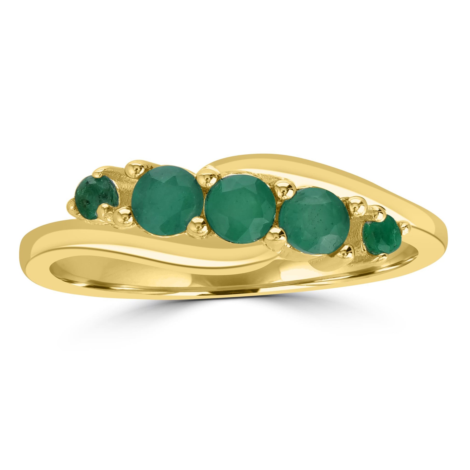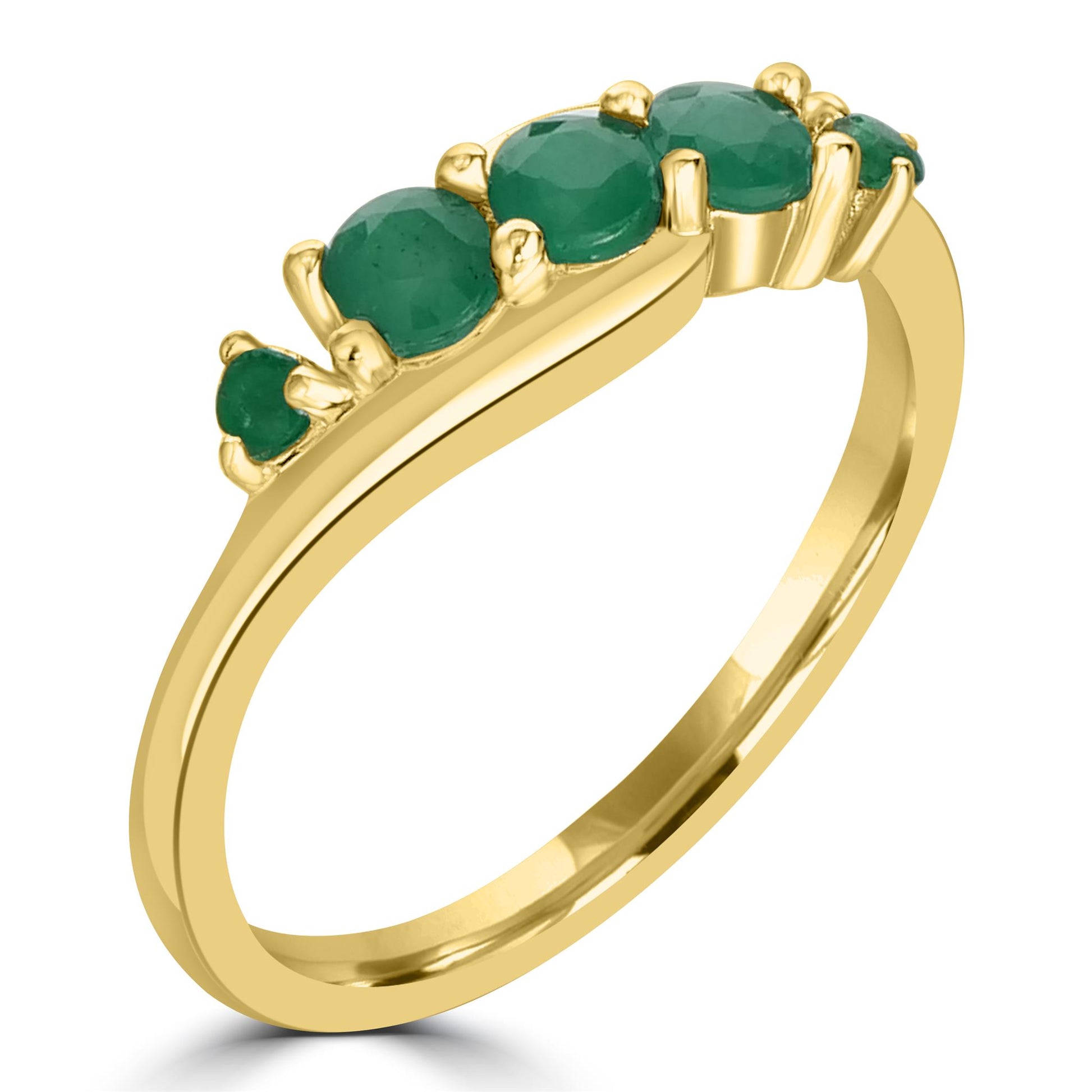 Introducing the Gemistry Birthstone Collection: stylish jewelry featuring your birth month’s unique gemstone. Celebrate your individuality with these beautiful, personal pieces—perfect for gifts or treating yourself! The Gemistry Angela 5-Stone Wave Ring is designed with 5 genuine round gemstones set in a wave designed band crafted from .925 Sterling Silver with 14K Gold Hamilton plating. Three 3.25mm Emerald gemstones adorn the center of the ring, flanked by two 2.5mm genuine Emerald gemstones. Emerald is May's birthstone. It symbolizes foresight, good fortune, and youth. Gemistry’s GIA-certified artisans thoughtfully create each piece to ensure it is lightweight, comfortable, and durable. When finished, we carefully polish and wrap your jewelry in a beautiful black gift pouch and box. Gemistry jewelry is a great way to indulge your wife, mom, grandmother, daughter, best friend or even yourself!