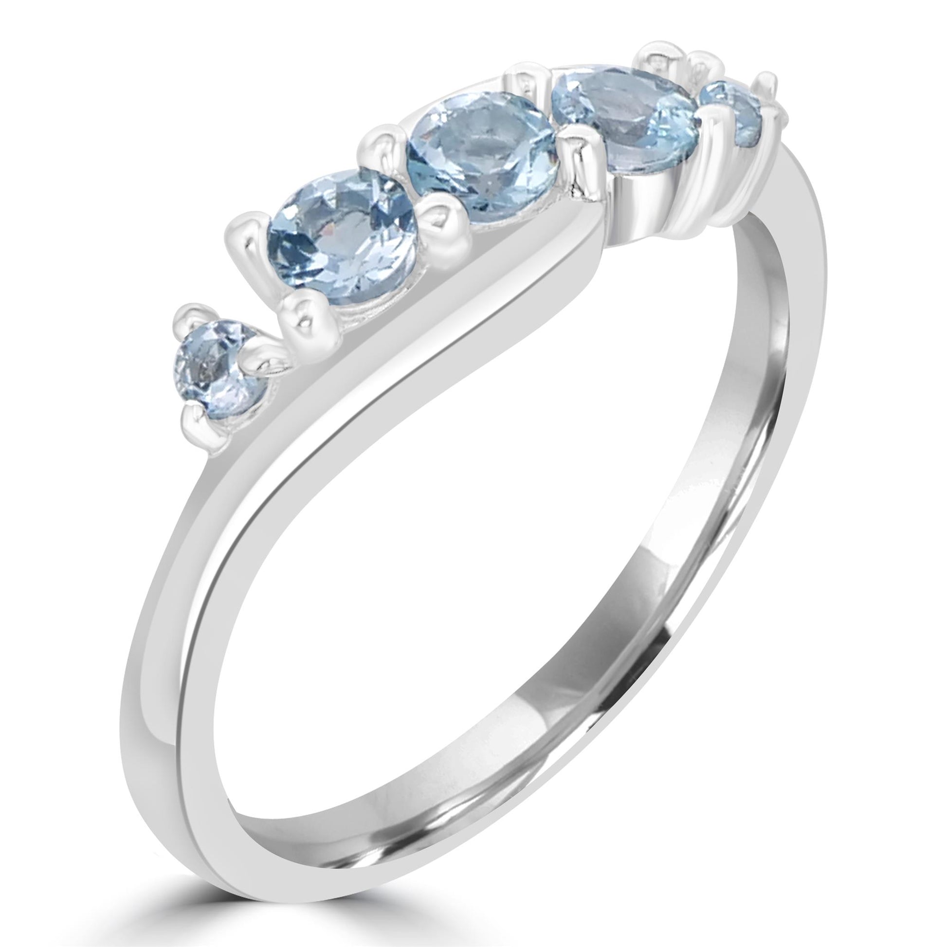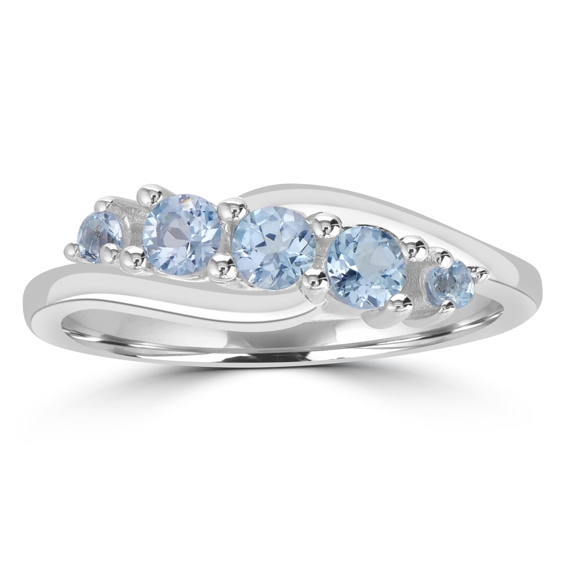Introducing the Gemistry Birthstone Collection: stylish jewelry featuring your birth month’s unique gemstone. Celebrate your individuality with these beautiful, personal pieces—perfect for gifts or treating yourself! The Gemistry Angela 5-Stone Wave Ring is designed with 5 genuine round Aquamarine gemstones set in a wave designed band crafted from Rhodium plated Sterling Silver, which helps to reduce tarnishing. Three 3.25mm gemstones adorn the center of the ring, flanked by two 2.5mm genuine round cut gemstones. Aquamarine is March's birthstone. It symbolizes truth and wisdom, helping one to clear their mind. Gemistry’s GIA-certified artisans thoughtfully create each piece to ensure it is lightweight, comfortable, and durable. When finished, we carefully polish and wrap your jewelry in a beautiful black gift pouch and box. Gemistry jewelry is a great way to indulge your wife, mom, grandmother, daughter, best friend or even yourself!