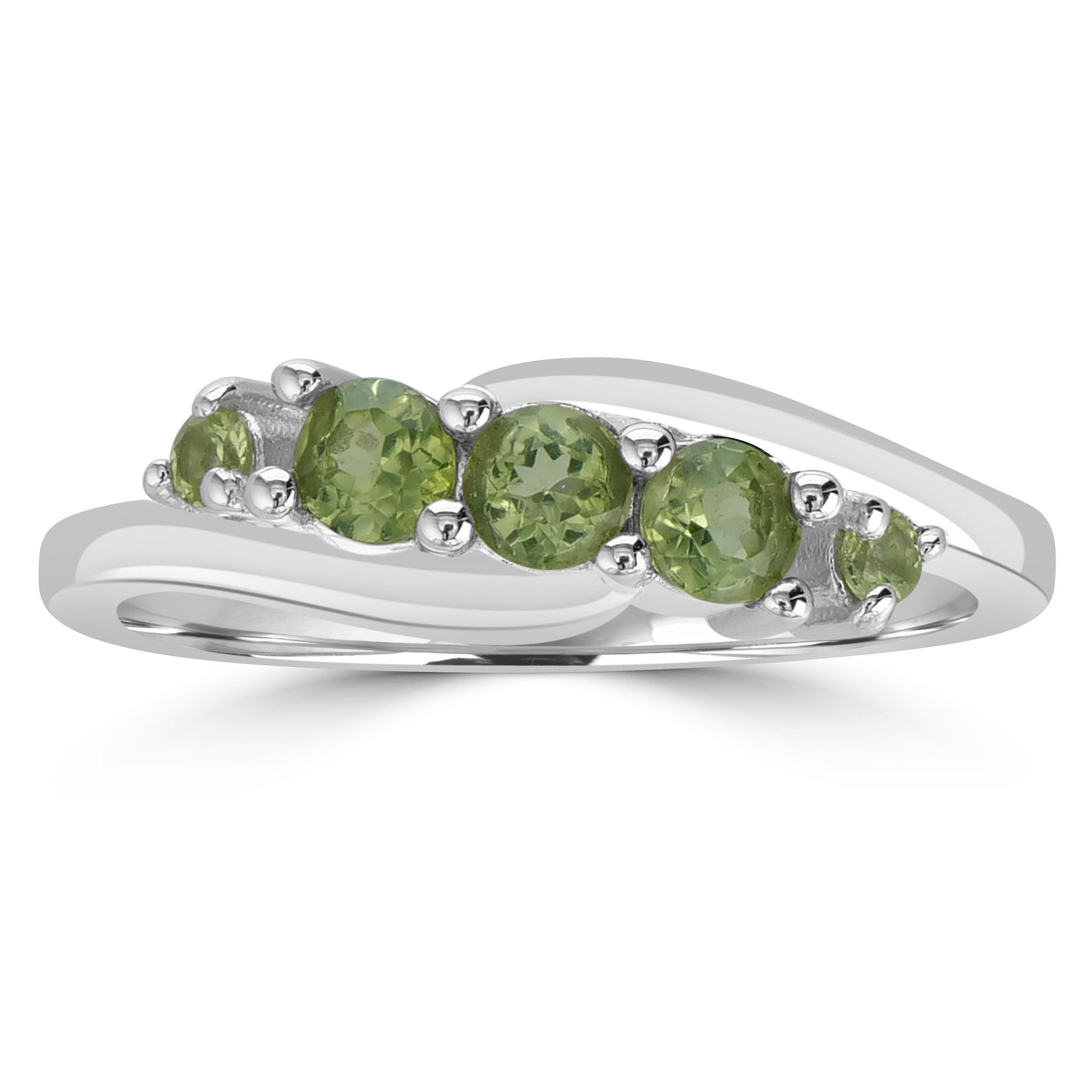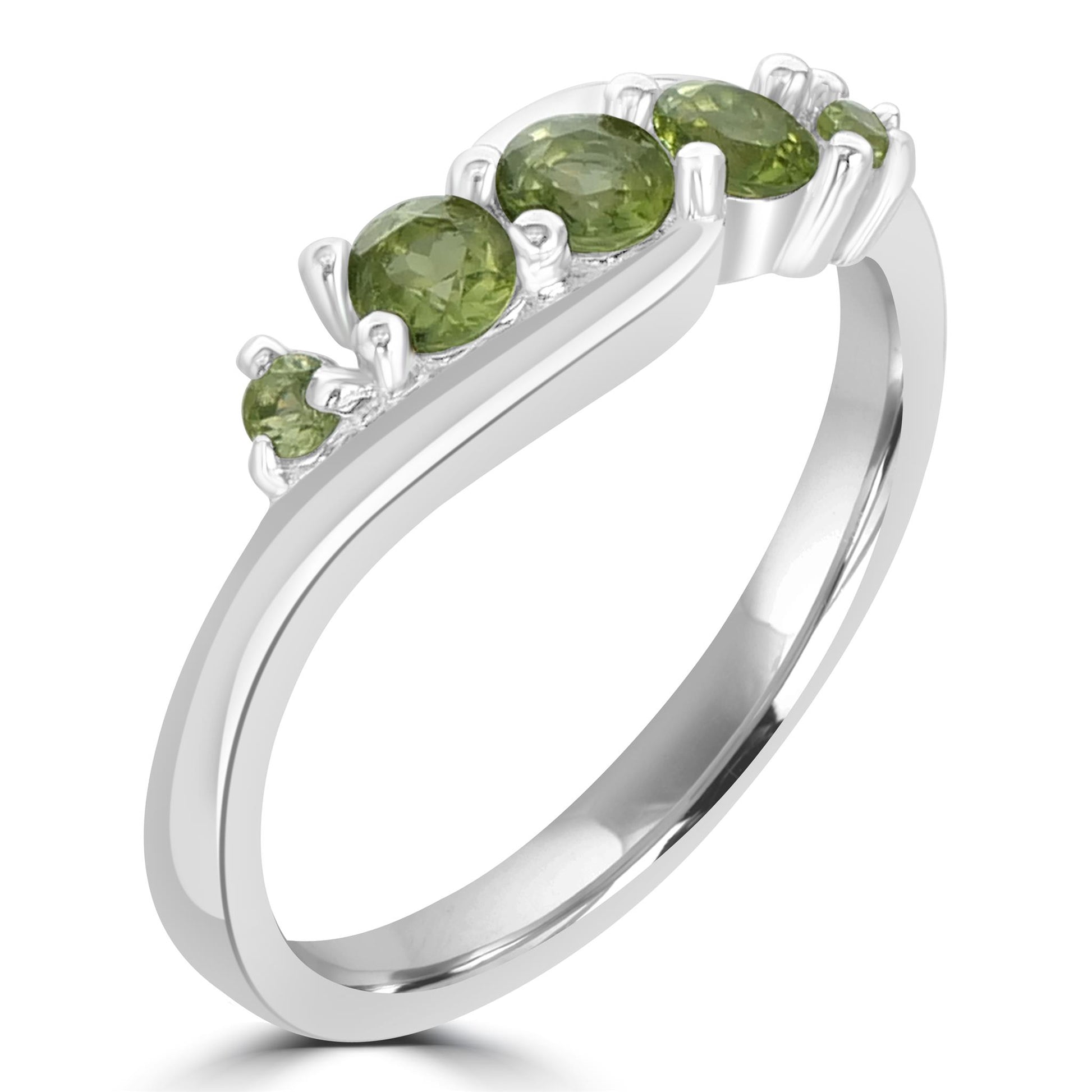 Introducing the Gemistry Birthstone Collection: stylish jewelry featuring your birth month’s unique gemstone. Celebrate your individuality with these beautiful, personal pieces—perfect for gifts or treating yourself! The Gemistry Angela 5-Stone Wave Ring is designed with 5 genuine round Peridot gemstones set in a wave designed band crafted from Rhodium plated Sterling Silver, which helps to reduce tarnishing. Three 3.25mm gemstones adorn the center of the ring, flanked by two 2.5mm genuine round cut gemstones. Peridot is August's birthstone. It symbolizes prosperity and good fortune. Gemistry’s GIA-certified artisans thoughtfully create each piece to ensure it is lightweight, comfortable, and durable. When finished, we carefully polish and wrap your jewelry in a beautiful black gift pouch and box. Gemistry jewelry is a great way to indulge your wife, mom, grandmother, daughter, best friend or even yourself!