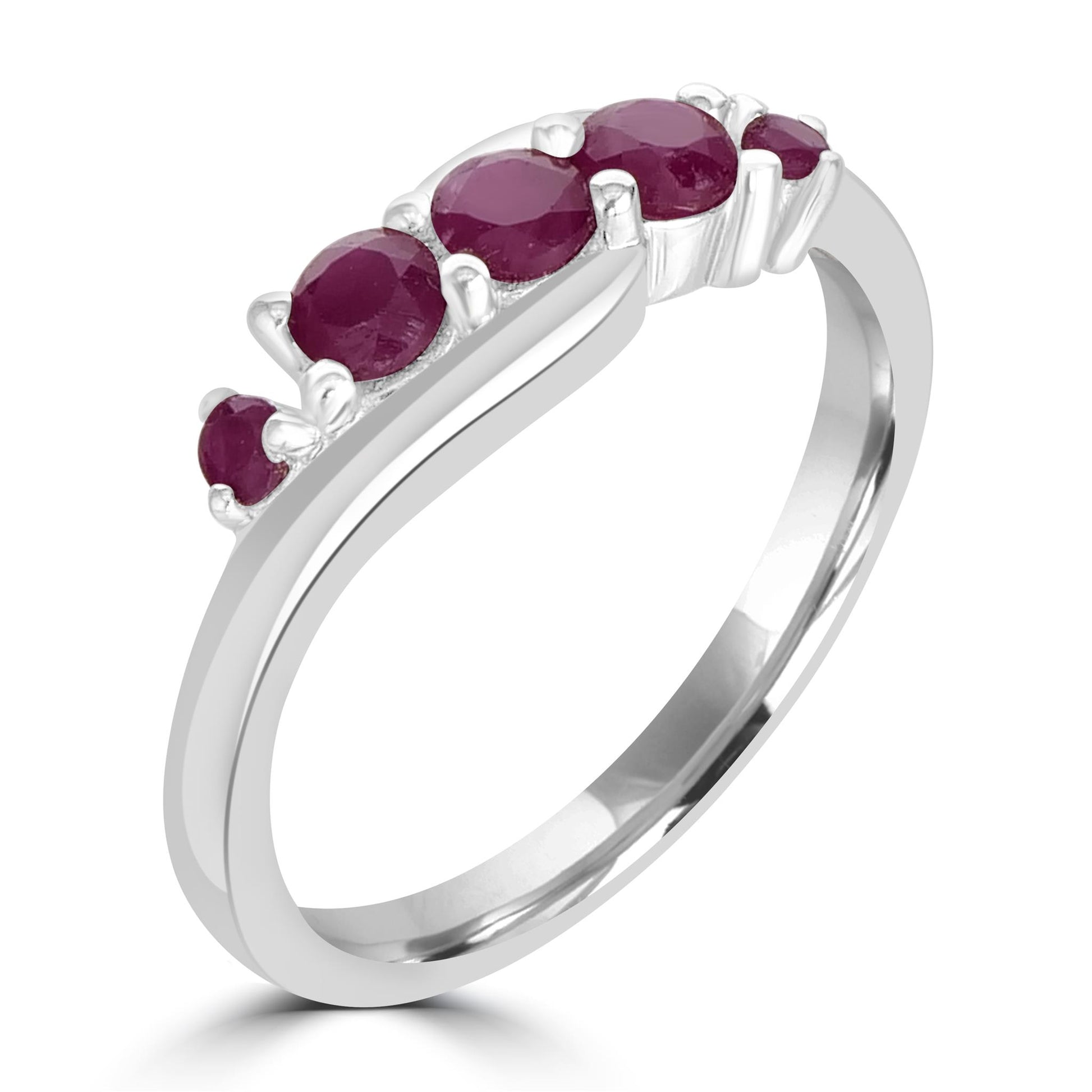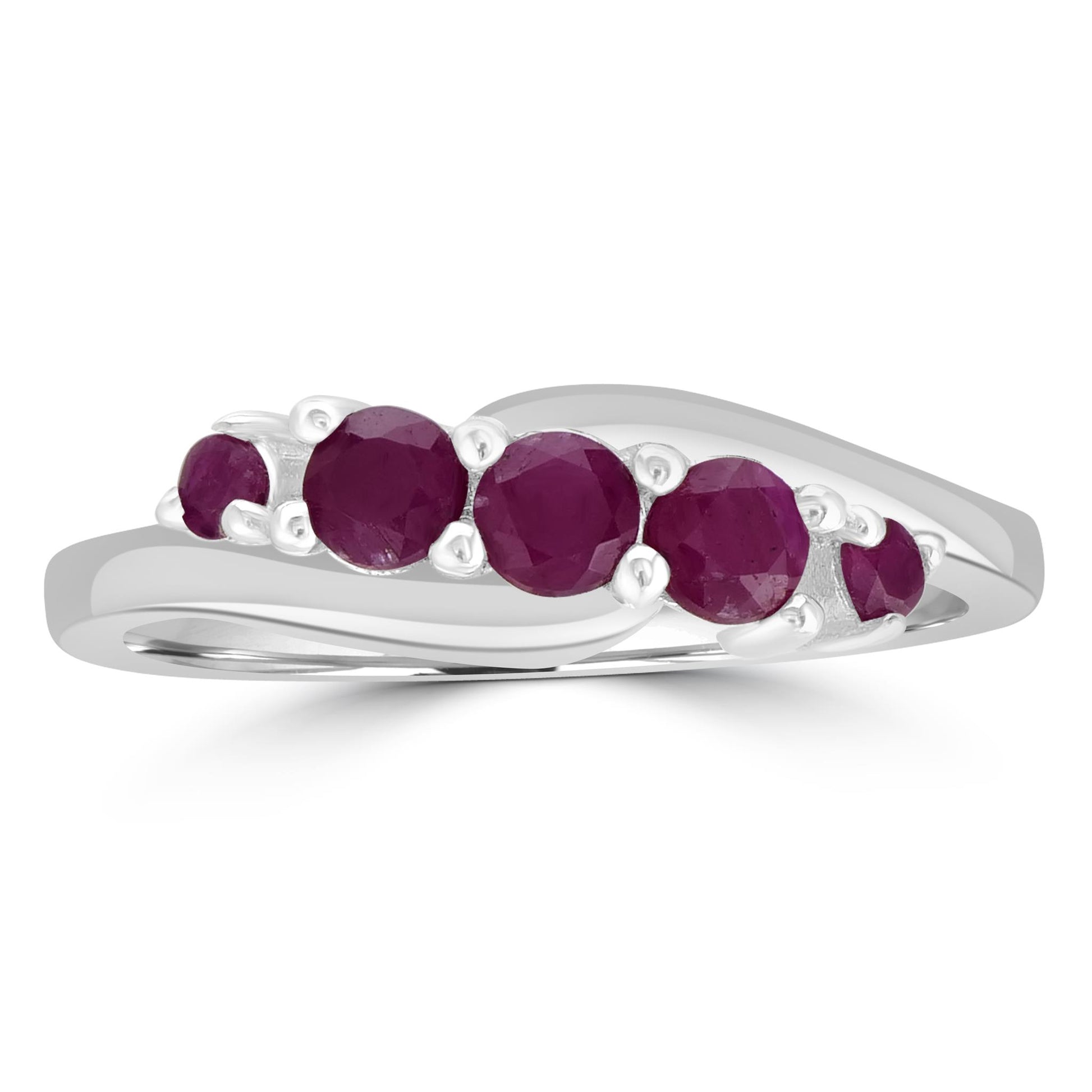Introducing the Gemistry Birthstone Collection: stylish jewelry featuring your birth month’s unique gemstone. Celebrate your individuality with these beautiful, personal pieces—perfect for gifts or treating yourself! The Gemistry Angela 5-Stone Wave Ring is designed with 5 genuine round Ruby gemstones set in a wave designed band crafted from Rhodium plated Sterling Silver, which helps to reduce tarnishing. Three 3.25mm gemstones adorn the center of the ring, flanked by two 2.5mm genuine round cut gemstones. Ruby is July's birthstone. It symbolizes love, passion, wealth and prosperity. Gemistry’s GIA-certified artisans thoughtfully create each piece to ensure it is lightweight, comfortable, and durable. When finished, we carefully polish and wrap your jewelry in a beautiful black gift pouch and box. Gemistry jewelry is a great way to indulge your wife, mom, grandmother, daughter, best friend or even yourself!