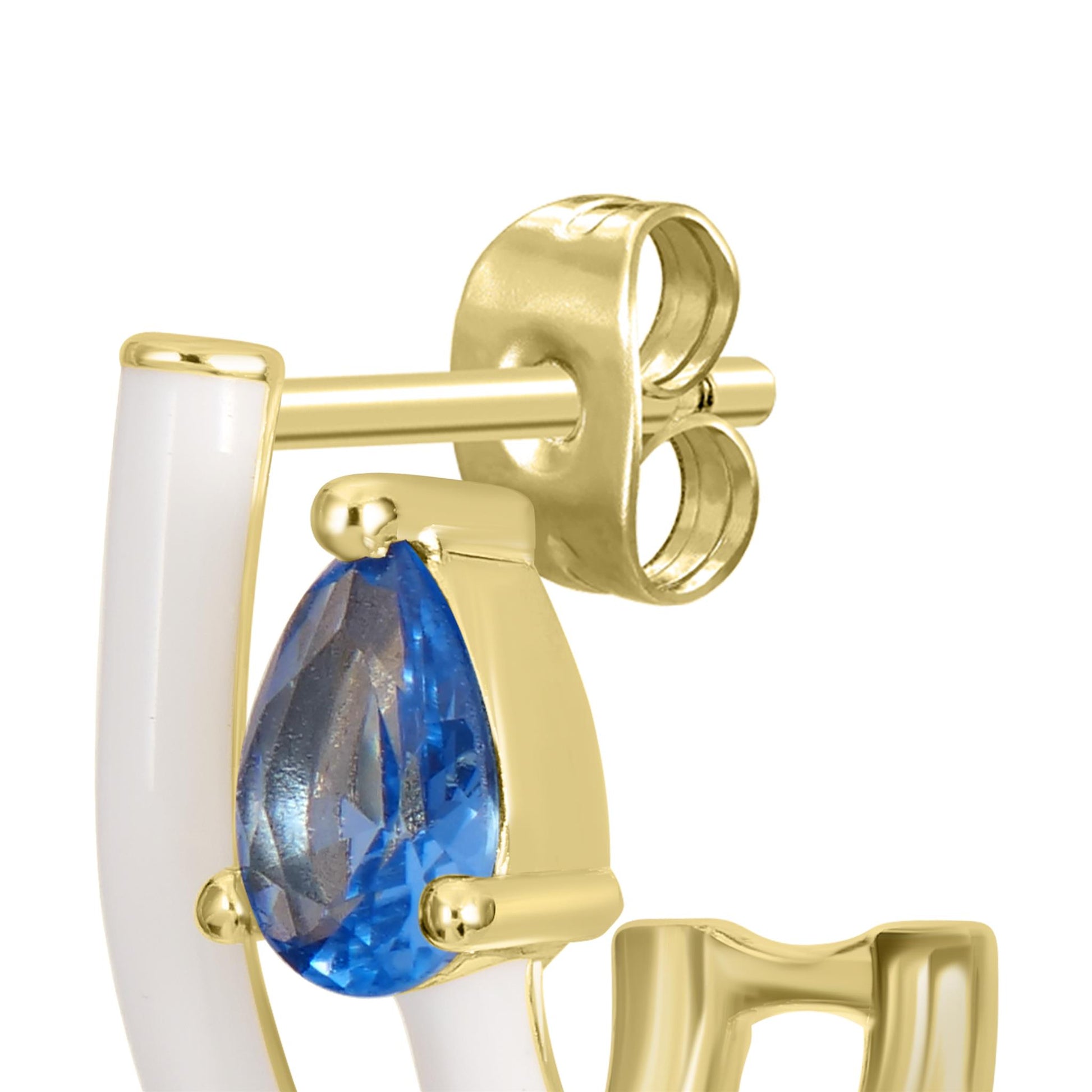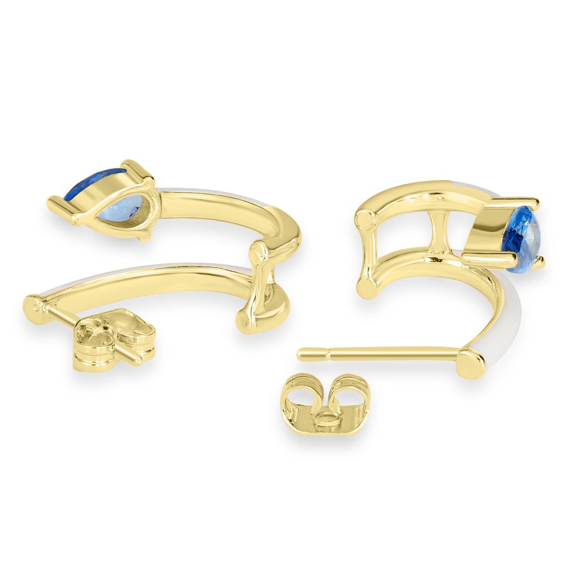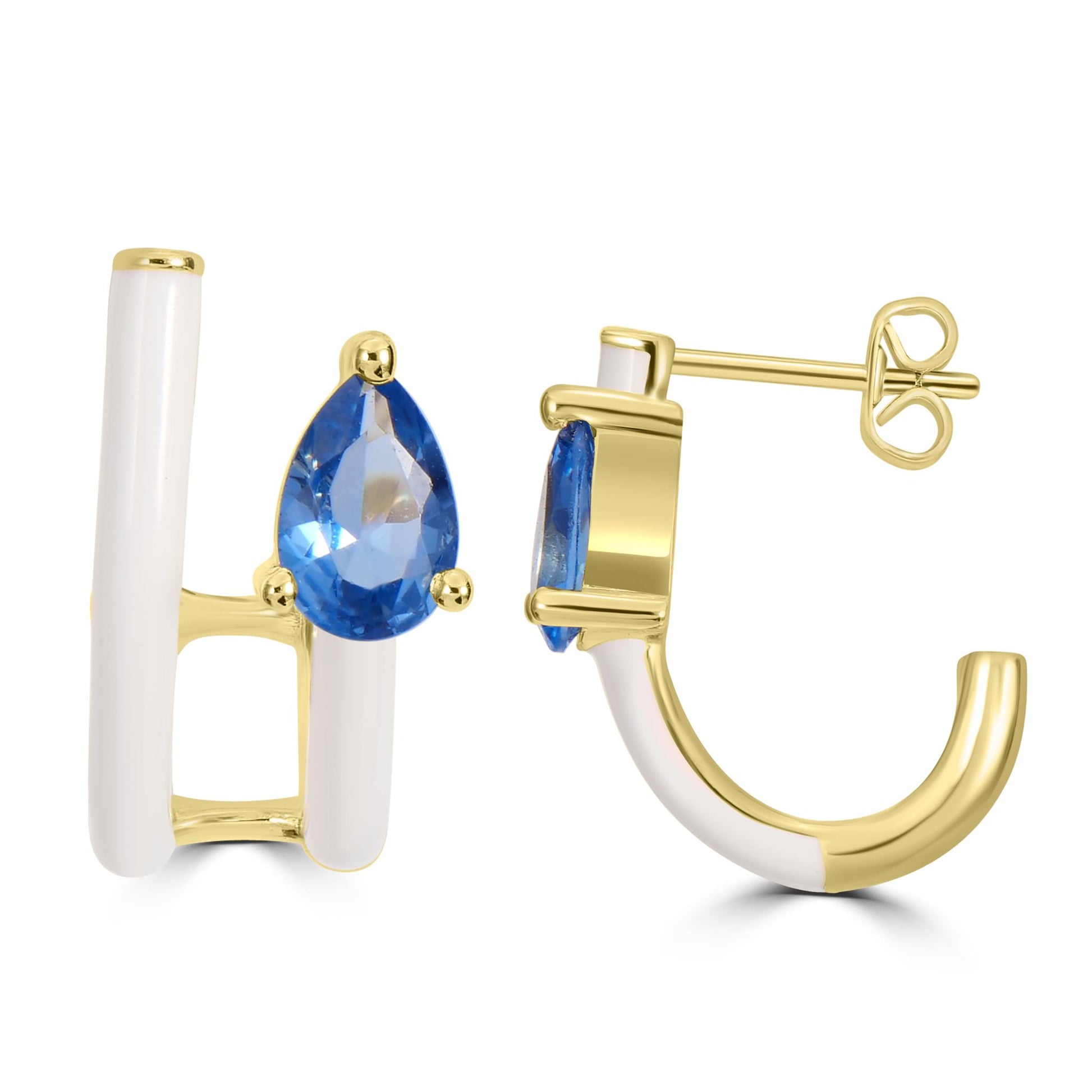 Bob Mackie is an internationally renowned costume and fashion designer who has dressed some of the most glamorous entertainment icons in the world. Gemistry has partnered with Bob Mackie in a brand new collaboration that marries the designer's exquisite sense of glamour and vibrant color with Gemistry's expertise in quality and craftmanship. The Gemistry Bob Mackie Hoop Earrings feature a 14K Gold Over Brass backing with a double row of white enamel. A gorgeous contrasting pear cut London Blue Cubic Zirconia stone in a prong setting rests at the top of the innermost row. The earrings are for pieced ears only and are secured with a post and nut backing. Whether you want to elevate your look, surprise someone with a thoughtful present, or celebrate a milestone, this exclusive collection helps you do just that! We are a modern brand that redefines luxury. With a focus on craftsmanship, sustainability, and transparency, Gemistry is committed to creating timeless pieces that will be treasured for generations.