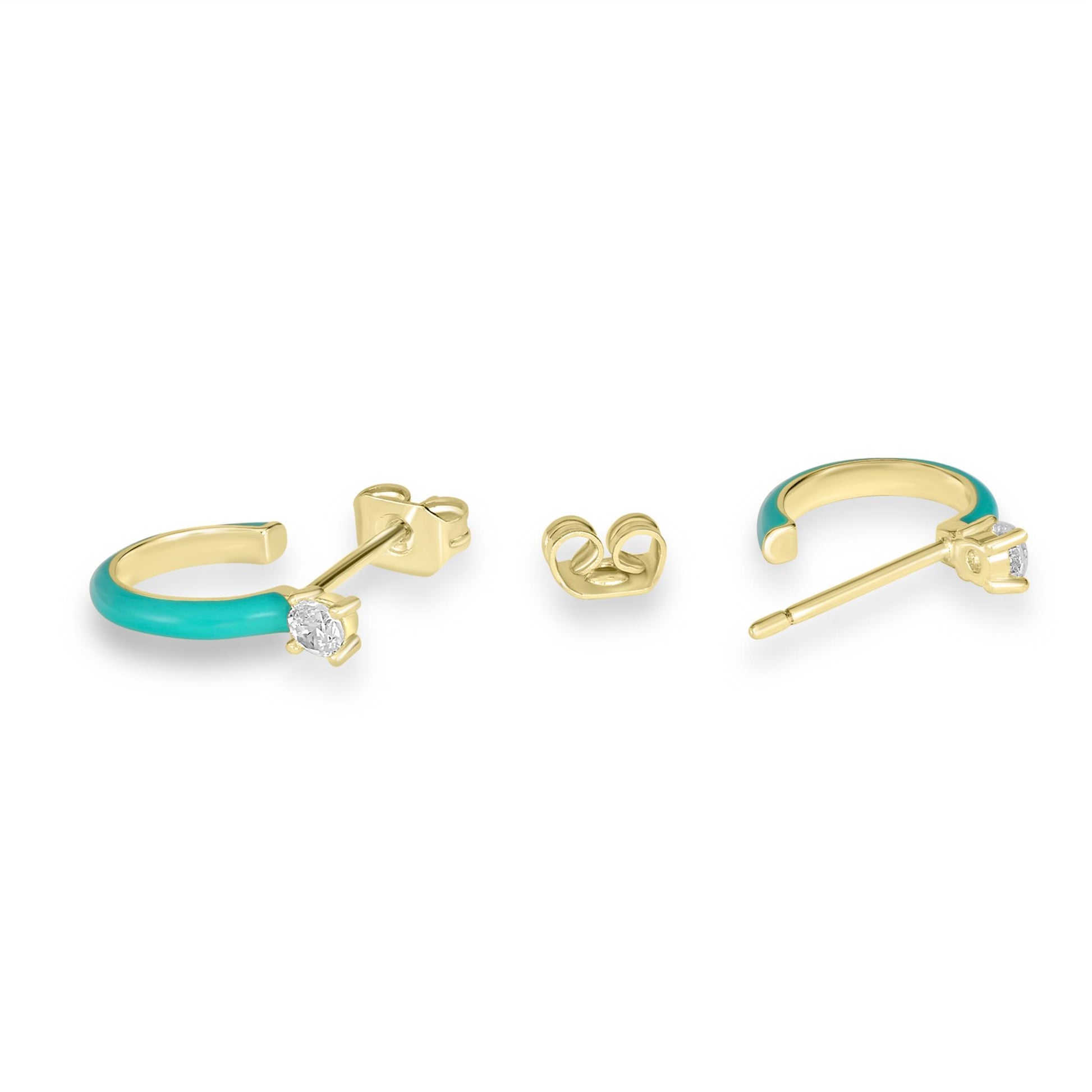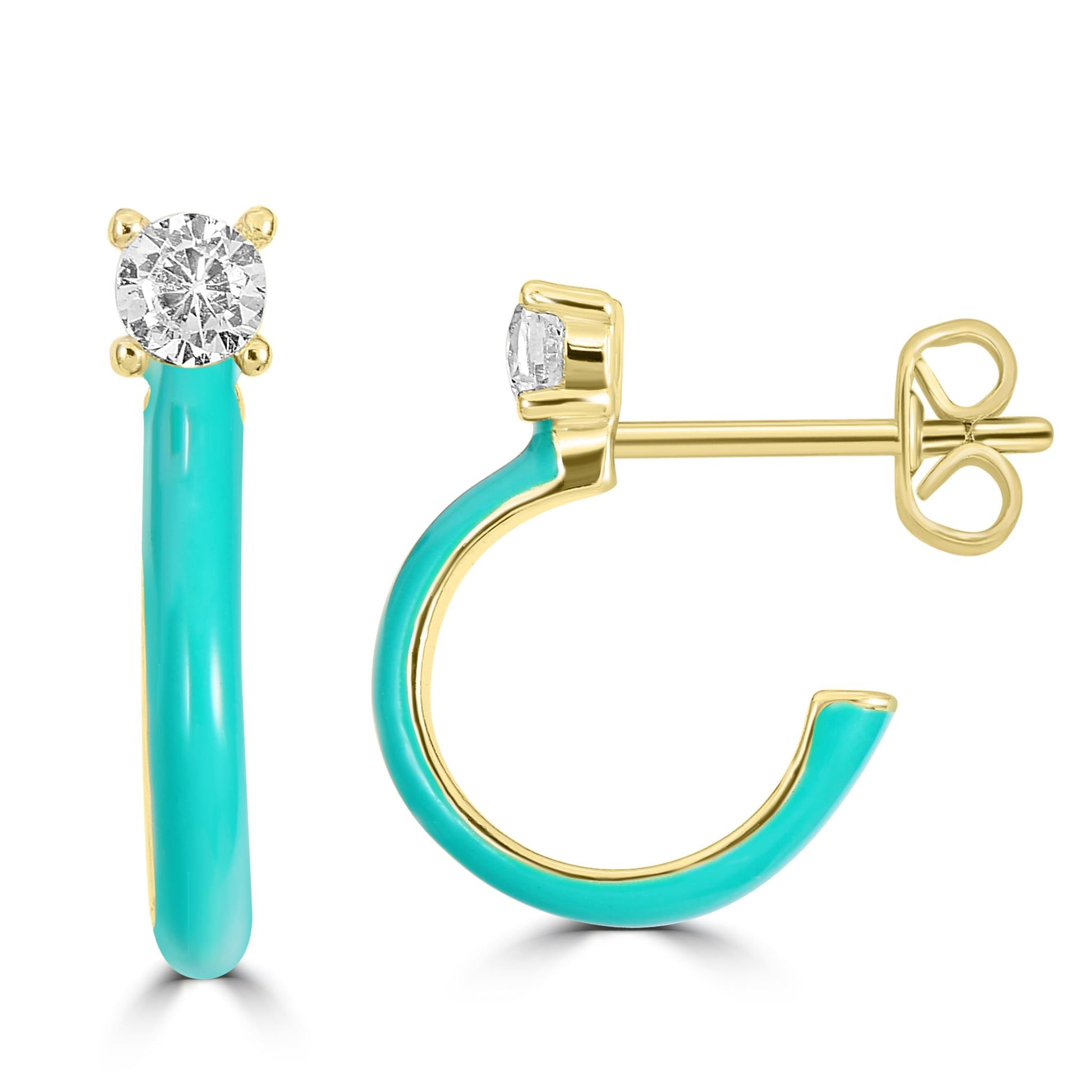 Bob Mackie is an internationally renowned costume and fashion designer who has dressed some of the most glamorous entertainment icons in the world. Gemistry has partnered with Bob Mackie in a brand new collaboration that marries the designer's exquisite sense of glamour and vibrant color with Gemistry's expertise in quality and craftmanship. The Gemistry Bob Mackie Hoop Earrings feature a 14K Gold Over Brass backing with a stunning turquoise enamel and a round cut Cubic Zirconia stone at the top in a prong setting. They are secured with a post and nut backing. Whether you want to elevate your look, surprise someone with a thoughtful present, or celebrate a milestone, this exclusive collection helps you do just that! We are a modern brand that redefines luxury. With a focus on craftsmanship, sustainability, and transparency, Gemistry is committed to creating timeless pieces that will be treasured for generations.