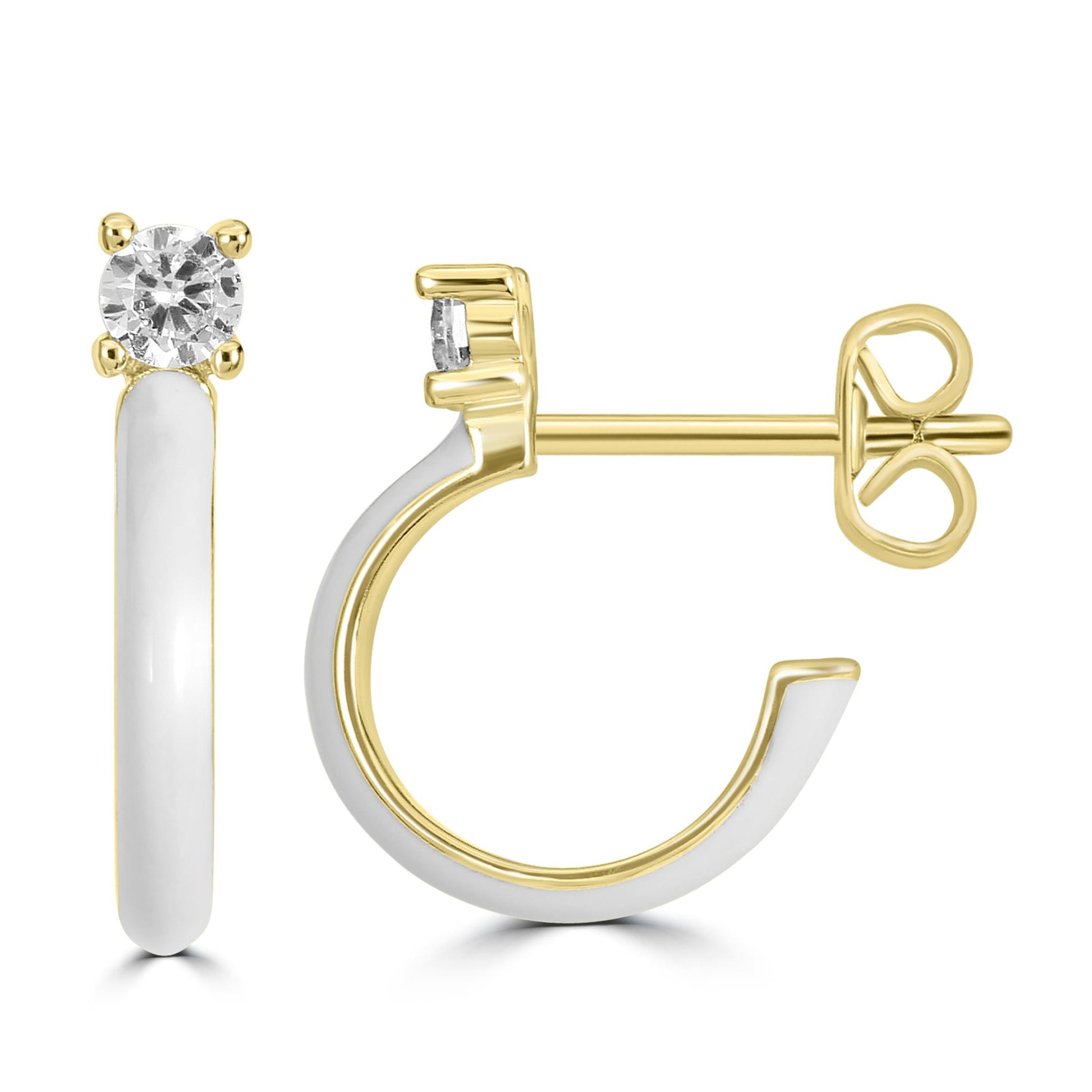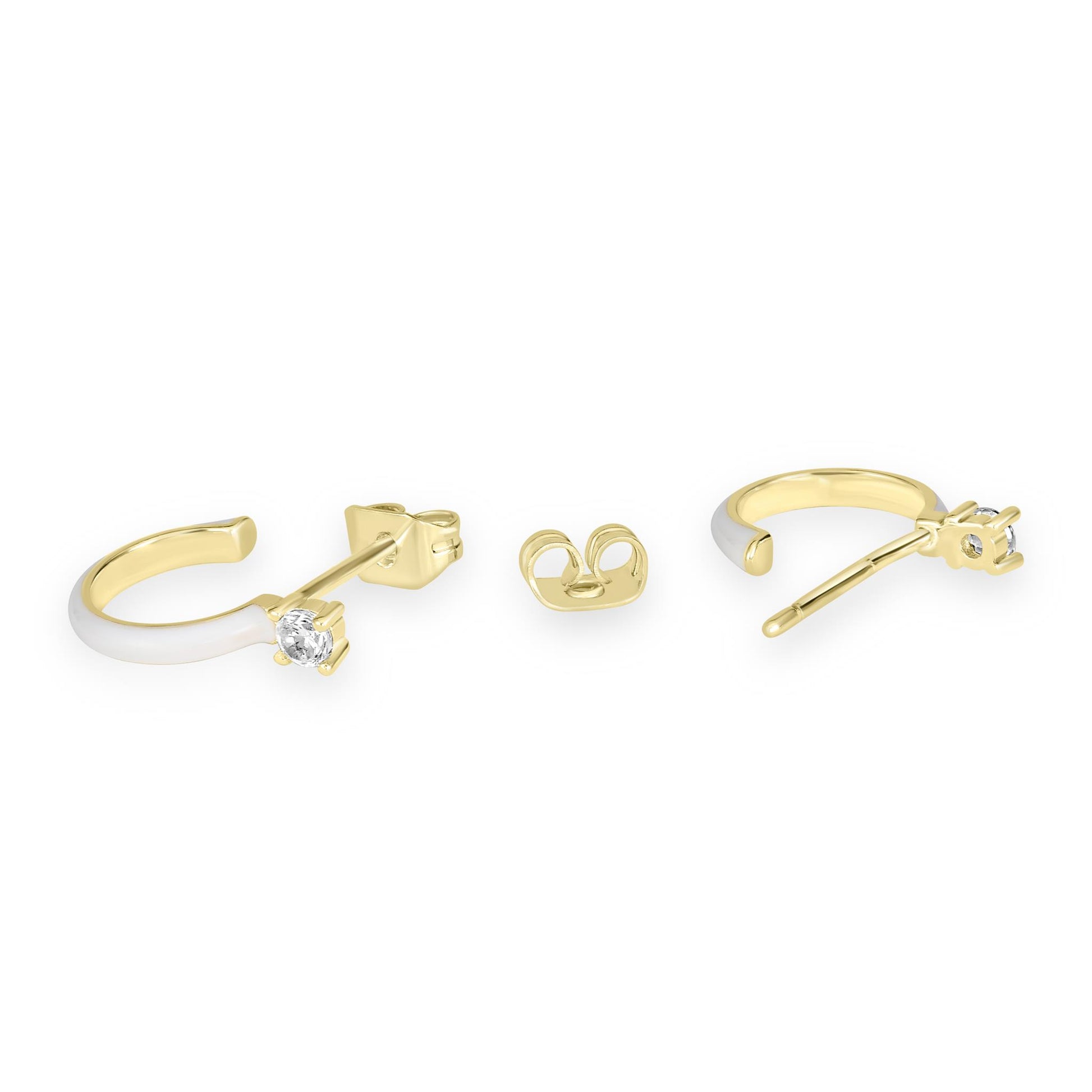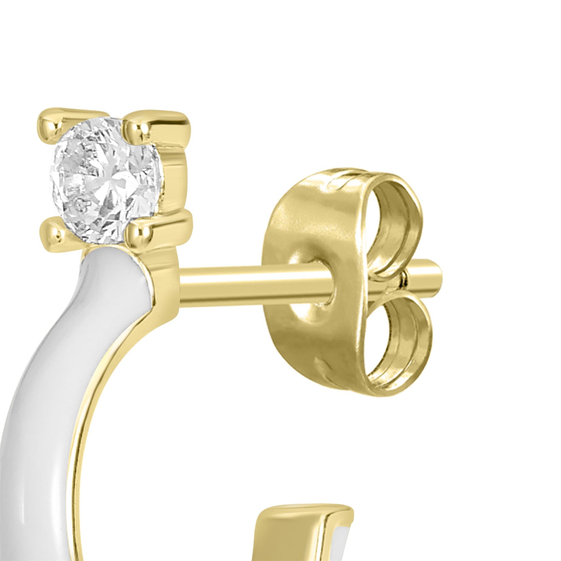 Bob Mackie is an internationally renowned costume and fashion designer who has dressed some of the most glamorous entertainment icons in the world. Gemistry has partnered with Bob Mackie in a brand new collaboration that marries the designer's exquisite sense of glamour and vibrant color with Gemistry's expertise in quality and craftmanship. The Gemistry Bob Mackie Hoop Earrings feature a 14K Gold Over Brass backing with a stunning white enamel and a round cut Cubic Zirconia stone at the top in a prong setting. They are secured with a post and nut backing. Whether you want to elevate your look, surprise someone with a thoughtful present, or celebrate a milestone, this exclusive collection helps you do just that! We are a modern brand that redefines luxury. With a focus on craftsmanship, sustainability, and transparency, Gemistry is committed to creating timeless pieces that will be treasured for generations.
