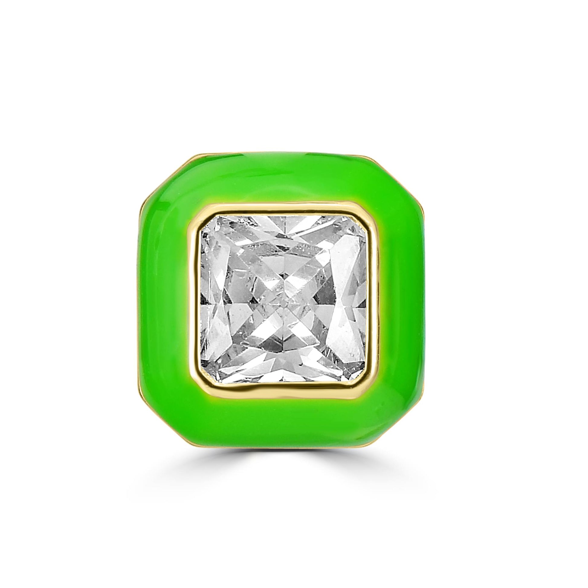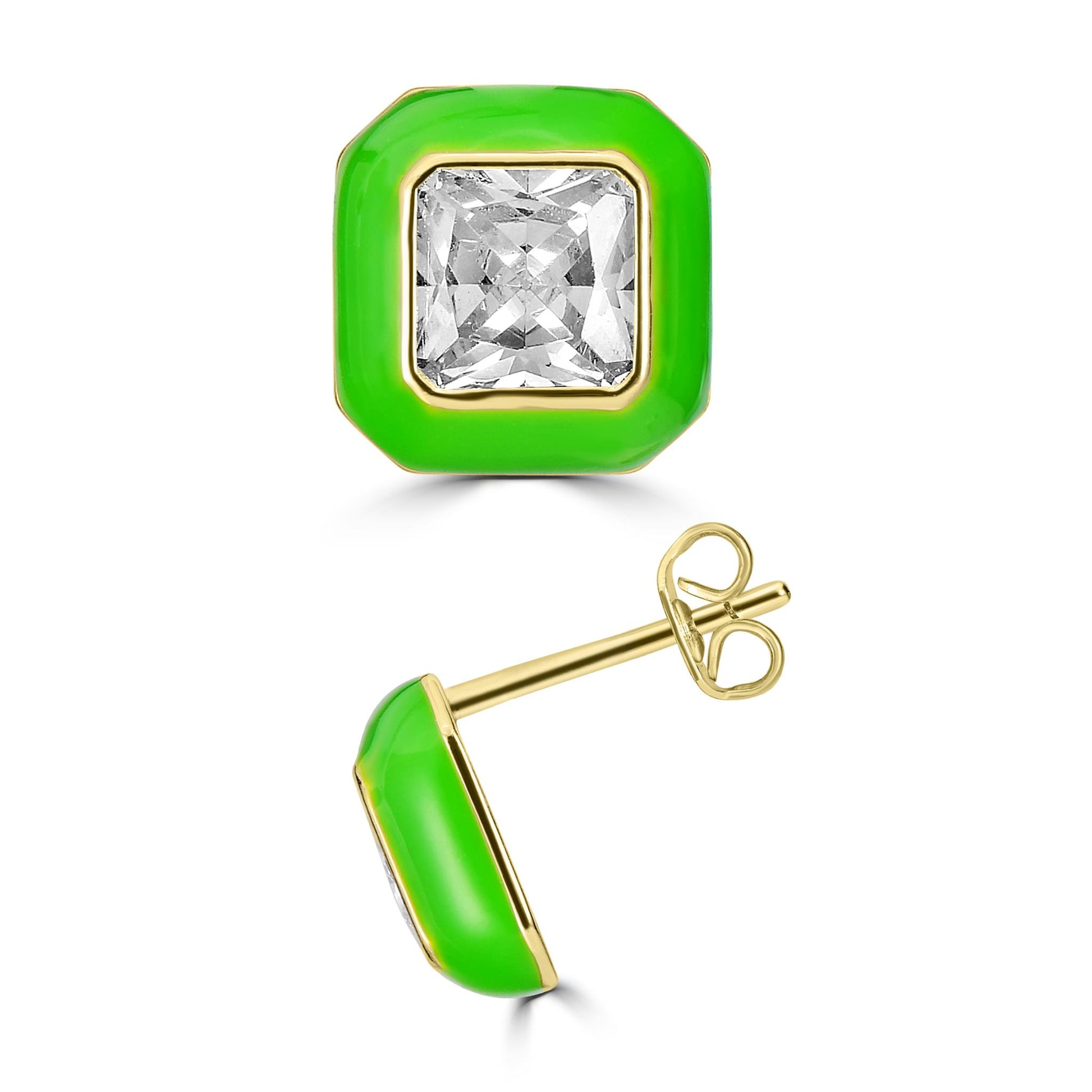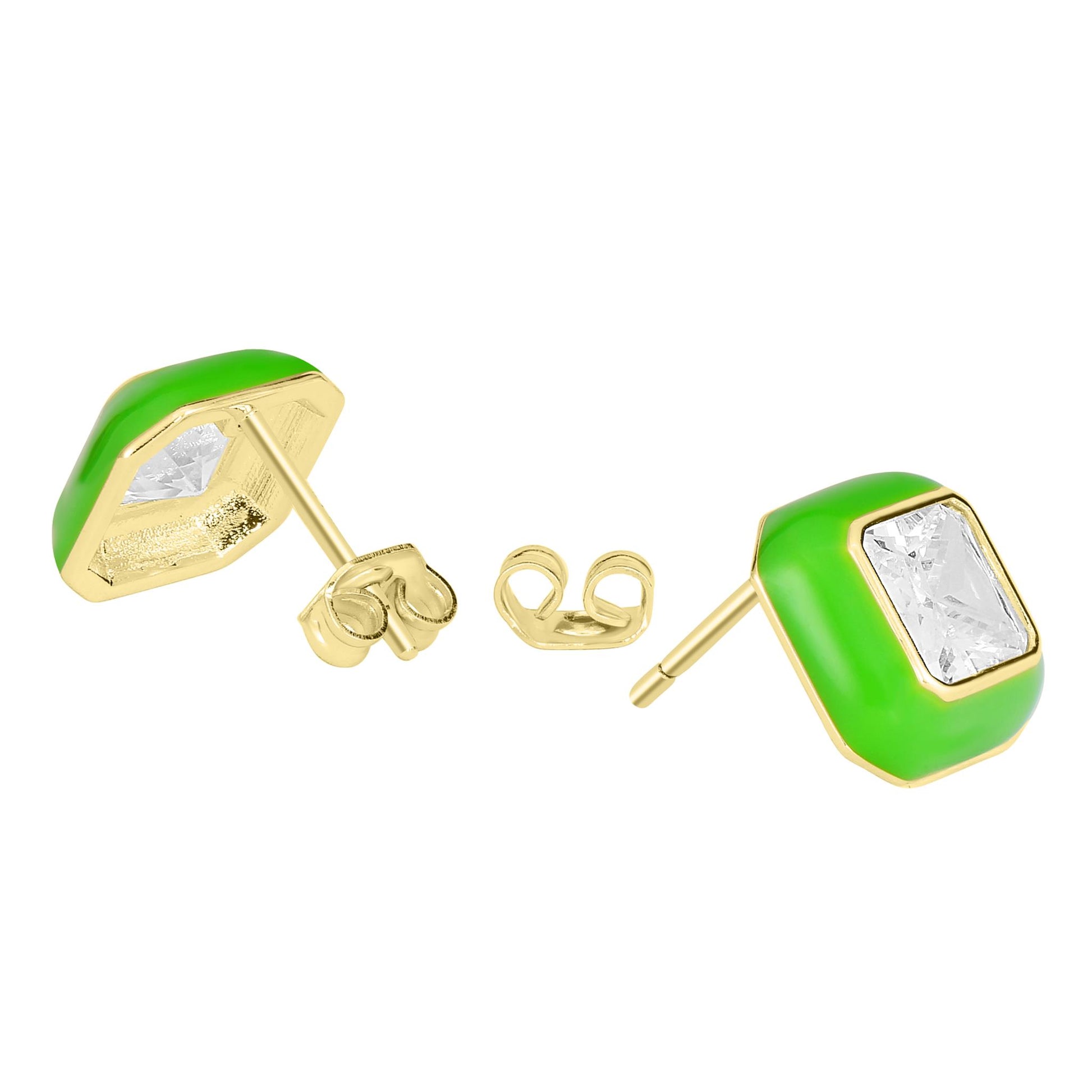 Bob Mackie is an internationally renowned costume and fashion designer who has dressed some of the most glamorous entertainment icons in the world. Gemistry has partnered with Bob Mackie in a brand new collaboration that marries the designer's exquisite sense of glamour and vibrant color with Gemistry's expertise in quality and craftmanship. The Gemistry Bob Mackie Stud Earrings are true show-stoppers! Each earring features Gold Over Brass with a rectangular cut sparkling Cubic Zirconia adorning a polished, green enamel base. The earrings are for pieced ears only and are secured with a post and nut backing. Whether you want to elevate your look, surprise someone with a thoughtful present, or celebrate a milestone, this exclusive collection helps you do just that!