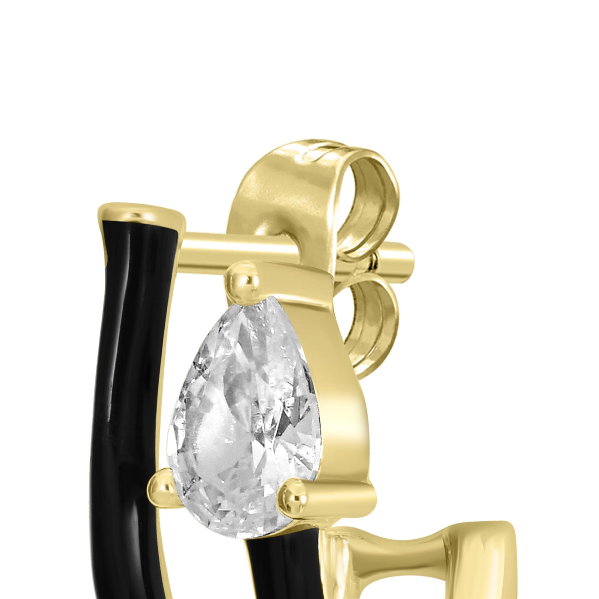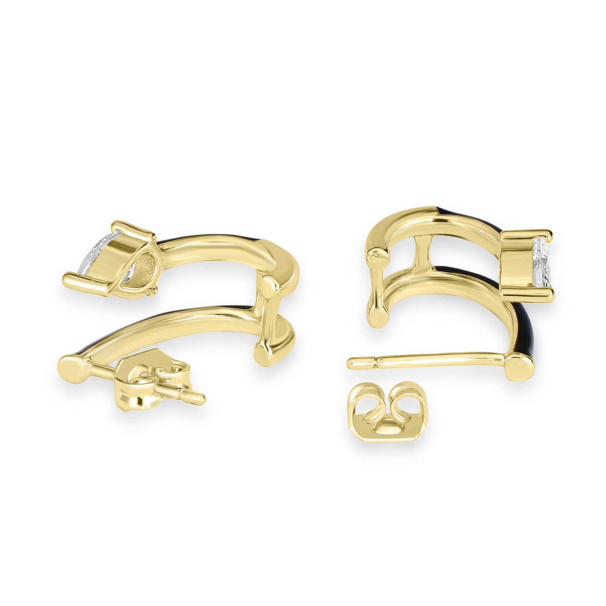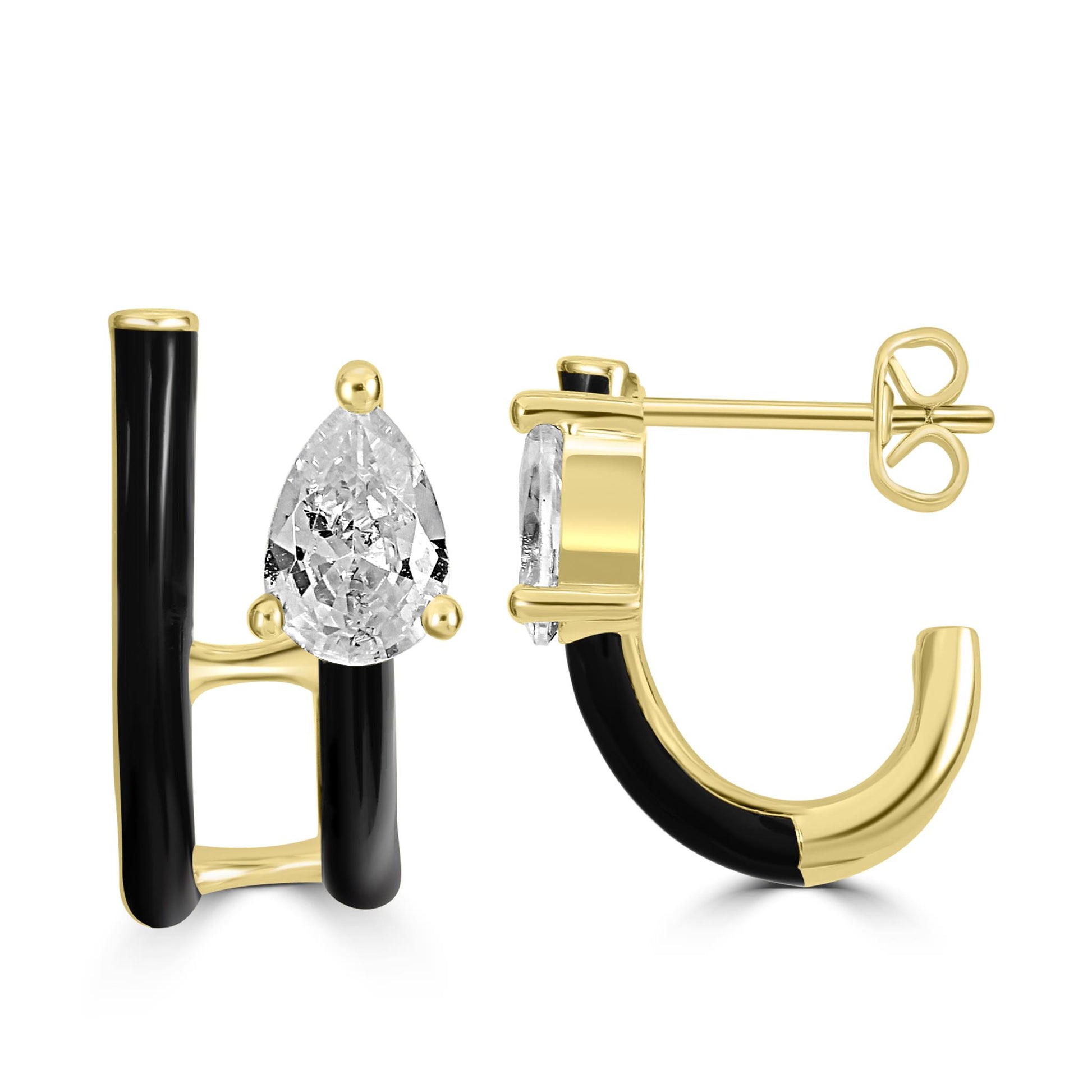 Bob Mackie is an internationally renowned costume and fashion designer who has dressed some of the most glamorous entertainment icons in the world. Gemistry has partnered with Bob Mackie in a brand new collaboration that marries the designer's exquisite sense of glamour and vibrant color with Gemistry's expertise in quality and craftmanship. The Gemistry Bob Mackie Hoop Earrings feature a 14K Gold Over Brass backing with a double row of black enamel. A gorgeous contrasting pear cut Cubic Zirconia stone in a prong setting rests at the top of the innermost row. The earrings are for pieced ears only and are secured with a post and nut backing. Whether you want to elevate your look, surprise someone with a thoughtful present, or celebrate a milestone, this exclusive collection helps you do just that! We are a modern brand that redefines luxury. With a focus on craftsmanship, sustainability, and transparency, Gemistry is committed to creating timeless pieces that will be treasured for generations.