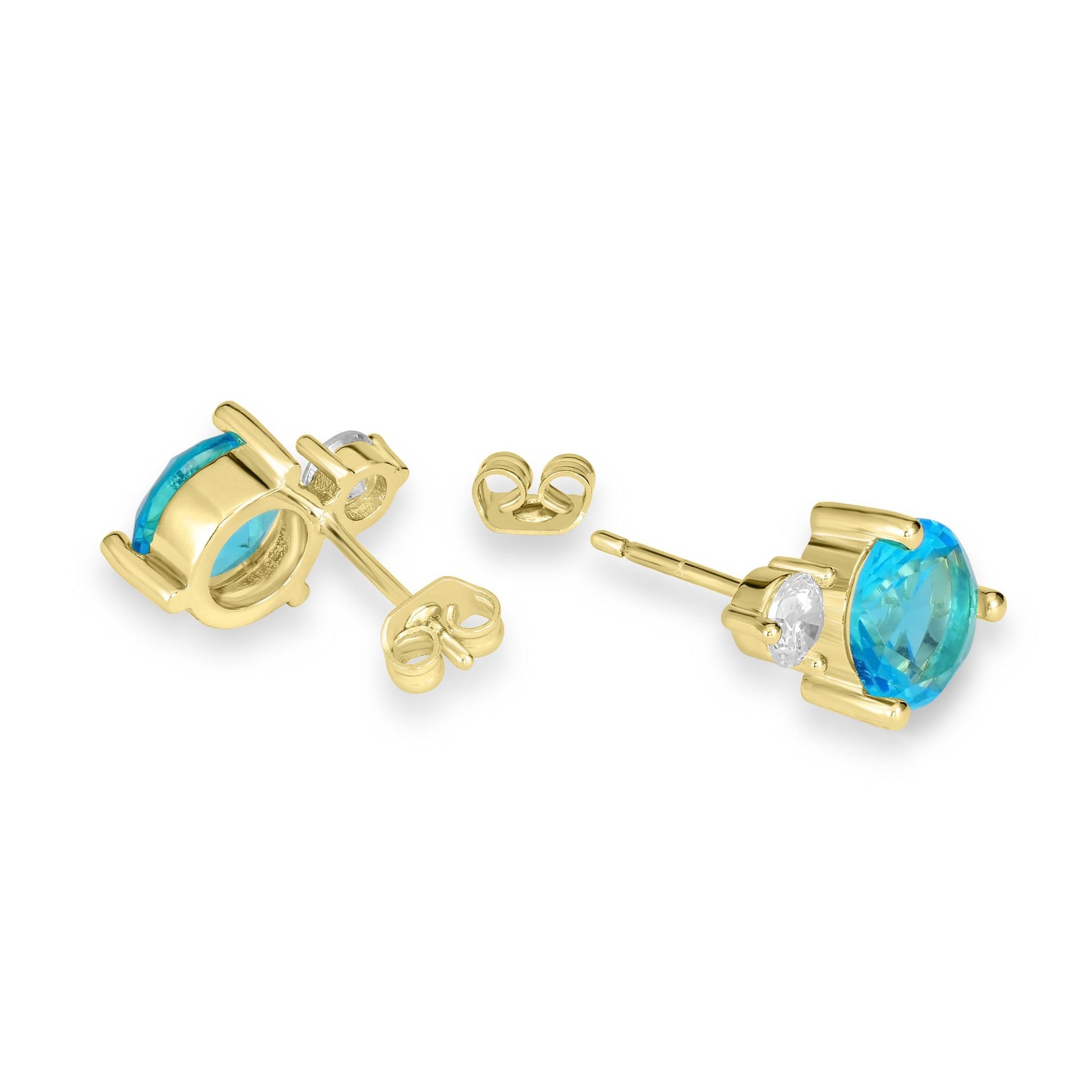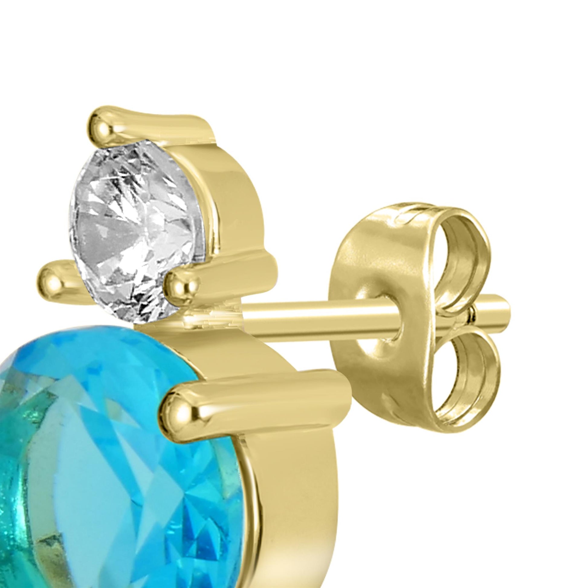 Bob Mackie is an internationally renowned costume and fashion designer who has dressed some of the most glamorous entertainment icons in the world. Gemistry has partnered with Bob Mackie in a brand new collaboration that marries the designer's exquisite sense of glamour and vibrant color with Gemistry's expertise in quality and craftmanship. The Gemistry Bob Mackie Stud Earrings are true show-stoppers! Each earring features a 14K Gold Over Brass base and backing with an 8mm round cut Sky Blue Topaz Cubic Zirconia topped with a 4mm round White Cubic Zirconia. The earrings are for pieced ears only and are secured with a post and nut backing. Whether you want to elevate your look, surprise someone with a thoughtful present, or celebrate a milestone, this exclusive collection helps you do just that!