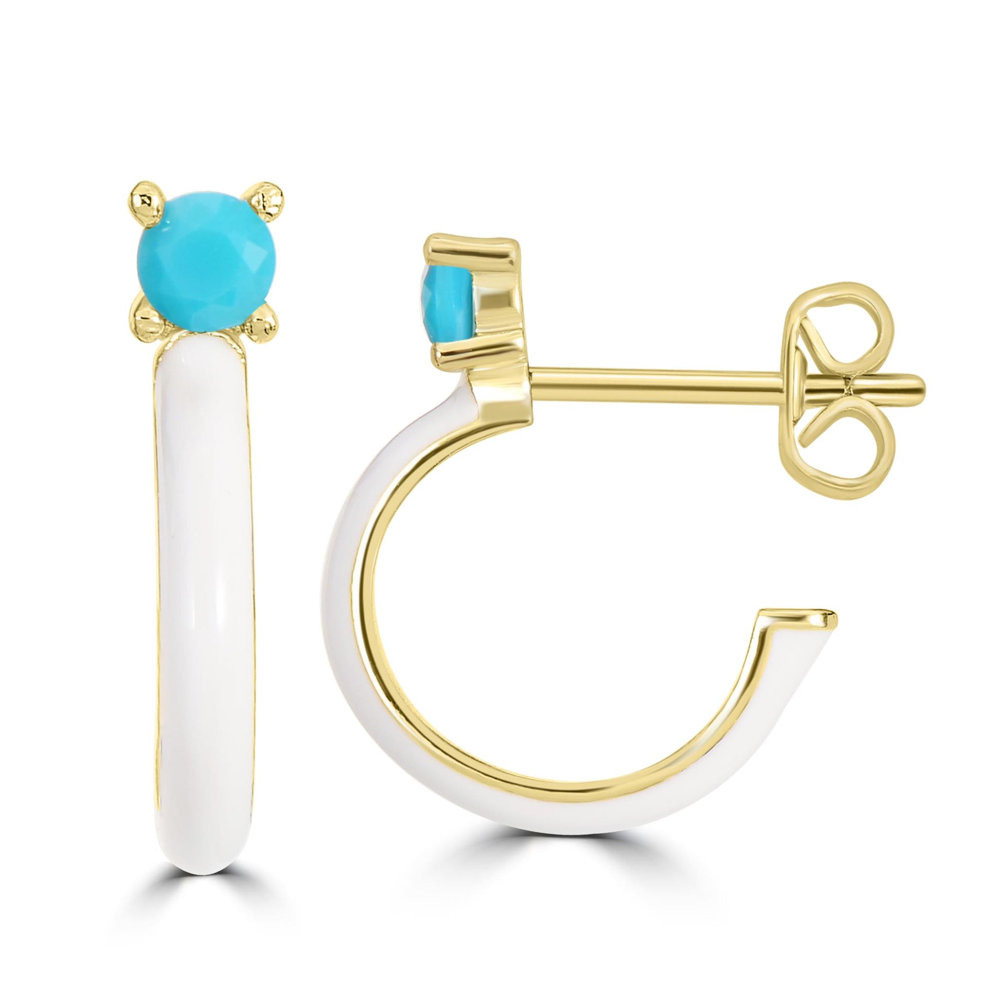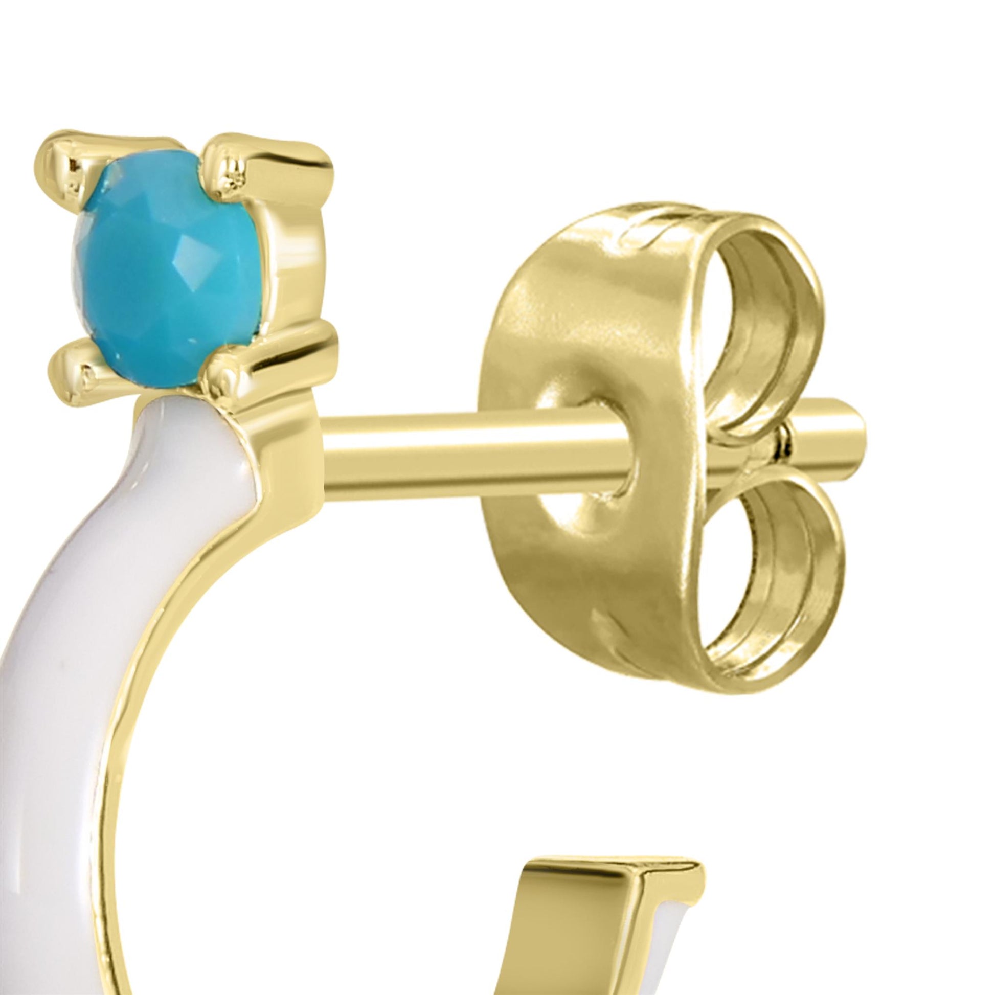 Bob Mackie is an internationally renowned costume and fashion designer who has dressed some of the most glamorous entertainment icons in the world. Gemistry has partnered with Bob Mackie in a brand new collaboration that marries the designer's exquisite sense of glamour and vibrant color with Gemistry's expertise in quality and craftmanship. The Gemistry Bob Mackie Hoop Earrings feature a 14K Gold over Brass backing with a vibrant white enamel and a round cut Turquoise Cubic Zirconia stone at the top in a prong setting. They are secured with a post and nut backing. Whether you want to elevate your look, surprise someone with a thoughtful present, or celebrate a milestone, this exclusive collection helps you do just that! We are a modern brand that redefines luxury. With a focus on craftsmanship, sustainability, and transparency, Gemistry is committed to creating timeless pieces that will be treasured for generations.