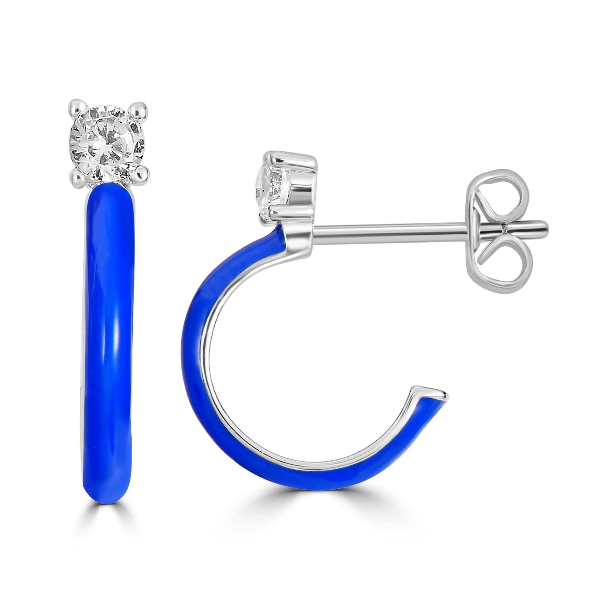 Bob Mackie is an internationally renowned costume and fashion designer who has dressed some of the most glamorous entertainment icons in the world. Gemistry has partnered with Bob Mackie in a brand new collaboration that marries the designer's exquisite sense of glamour and vibrant color with Gemistry's expertise in quality and craftmanship. The Gemistry Bob Mackie Hoop Earrings feature a Silver-Plated Brass backing with a vibrant blue enamel and a round cut Clear London Cubic Zirconia stone at the top in a prong setting. They are secured with a post and nut backing. Whether you want to elevate your look, surprise someone with a thoughtful present, or celebrate a milestone, this exclusive collection helps you do just that! We are a modern brand that redefines luxury. With a focus on craftsmanship, sustainability, and transparency, Gemistry is committed to creating timeless pieces that will be treasured for generations.