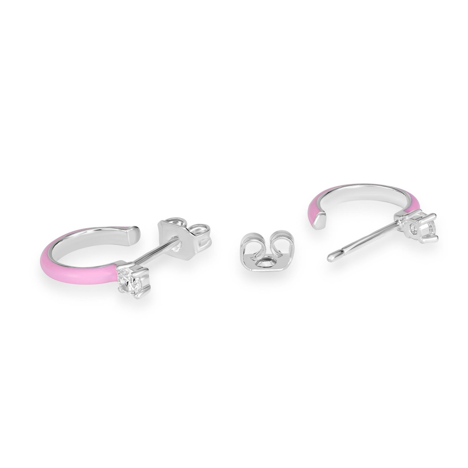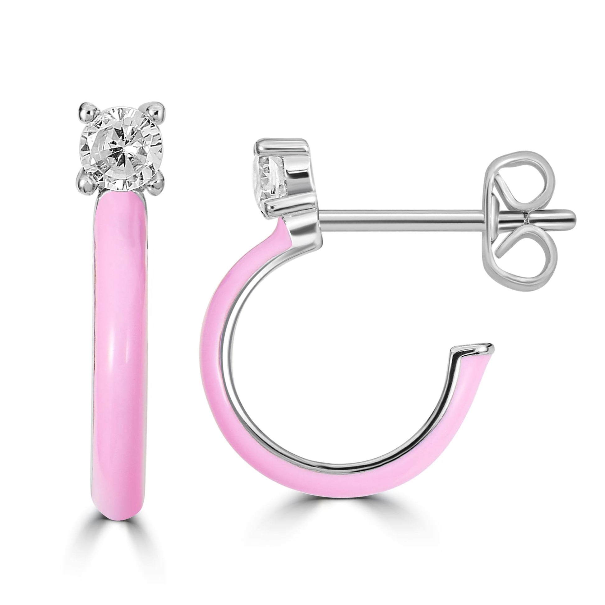 Bob Mackie is an internationally renowned costume and fashion designer who has dressed some of the most glamorous entertainment icons in the world. Gemistry has partnered with Bob Mackie in a brand new collaboration that marries the designer's exquisite sense of glamour and vibrant color with Gemistry's expertise in quality and craftmanship. The Gemistry Bob Mackie Hoop Earrings feature a Silver-Plated Brass backing with a vibrant pink enamel and a round cut Clear London Cubic Zirconia stone at the top in a prong setting. They are secured with a post and nut backing. Whether you want to elevate your look, surprise someone with a thoughtful present, or celebrate a milestone, this exclusive collection helps you do just that! We are a modern brand that redefines luxury. With a focus on craftsmanship, sustainability, and transparency, Gemistry is committed to creating timeless pieces that will be treasured for generations.
