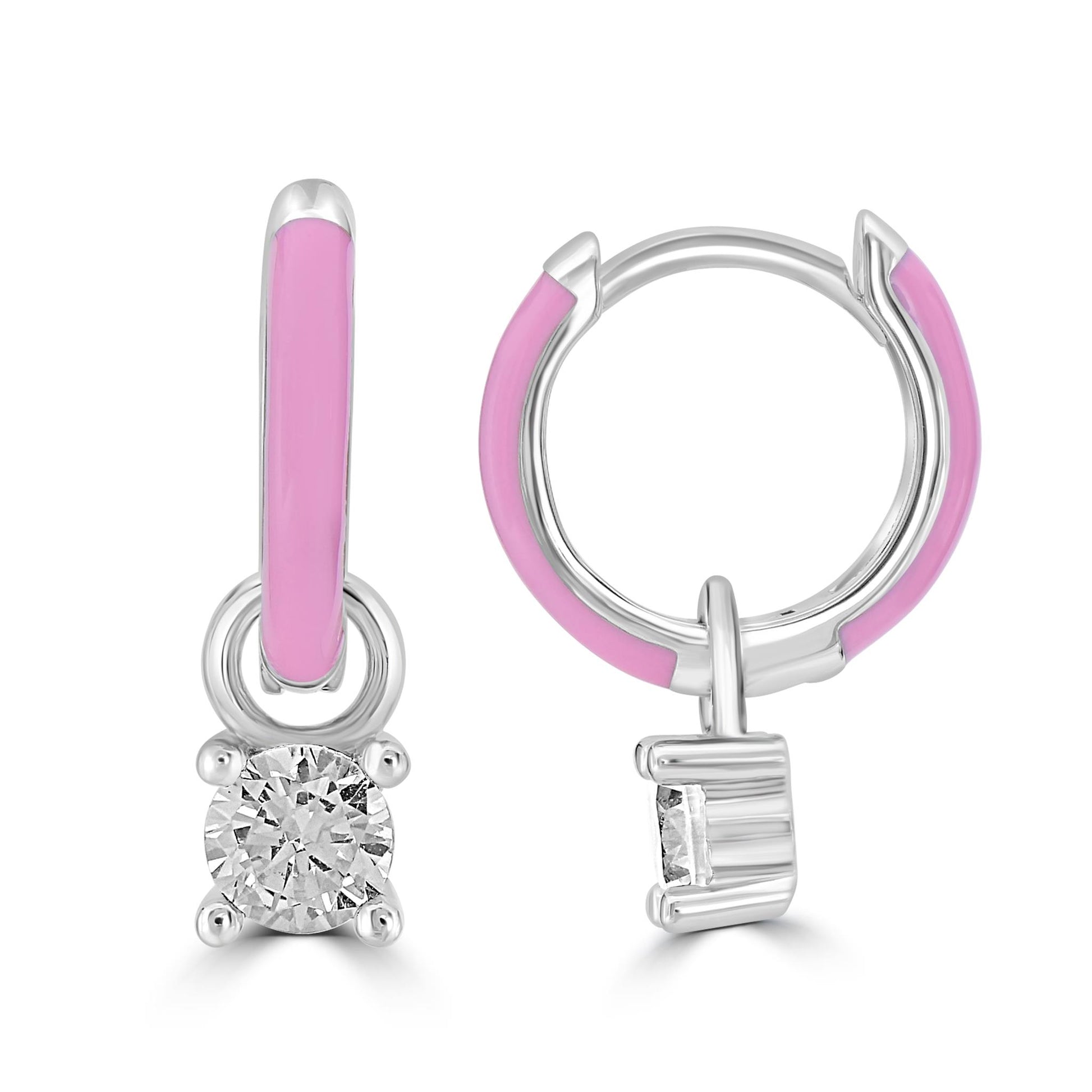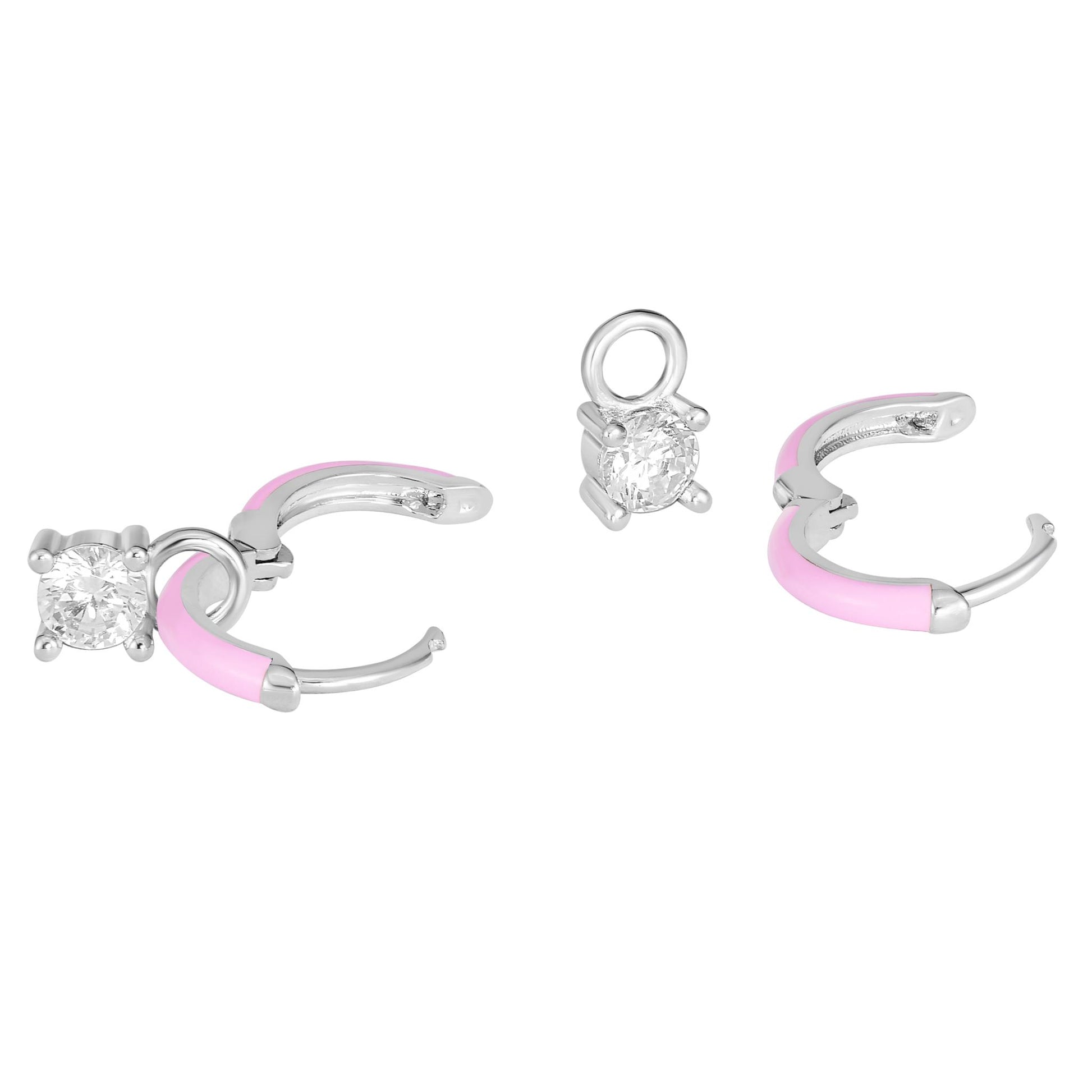 Bob Mackie is an internationally renowned costume and fashion designer who has dressed some of the most glamorous entertainment icons in the world. Gemistry has partnered with Bob Mackie in a brand new collaboration that marries the designer's exquisite sense of glamour and vibrant color with Gemistry's expertise in quality and craftmanship. The Gemistry Bob Mackie Hoop Earrings feature a Silver-Plated Brass backing with a stunning pink enamel and a round cut Cubic Zirconia stone at the bottom in a prong setting. They are secured with a post and nut backing. Whether you want to elevate your look, surprise someone with a thoughtful present, or celebrate a milestone, this exclusive collection helps you do just that! We are a modern brand that redefines luxury. With a focus on craftsmanship, sustainability, and transparency, Gemistry is committed to creating timeless pieces that will be treasured for generations.