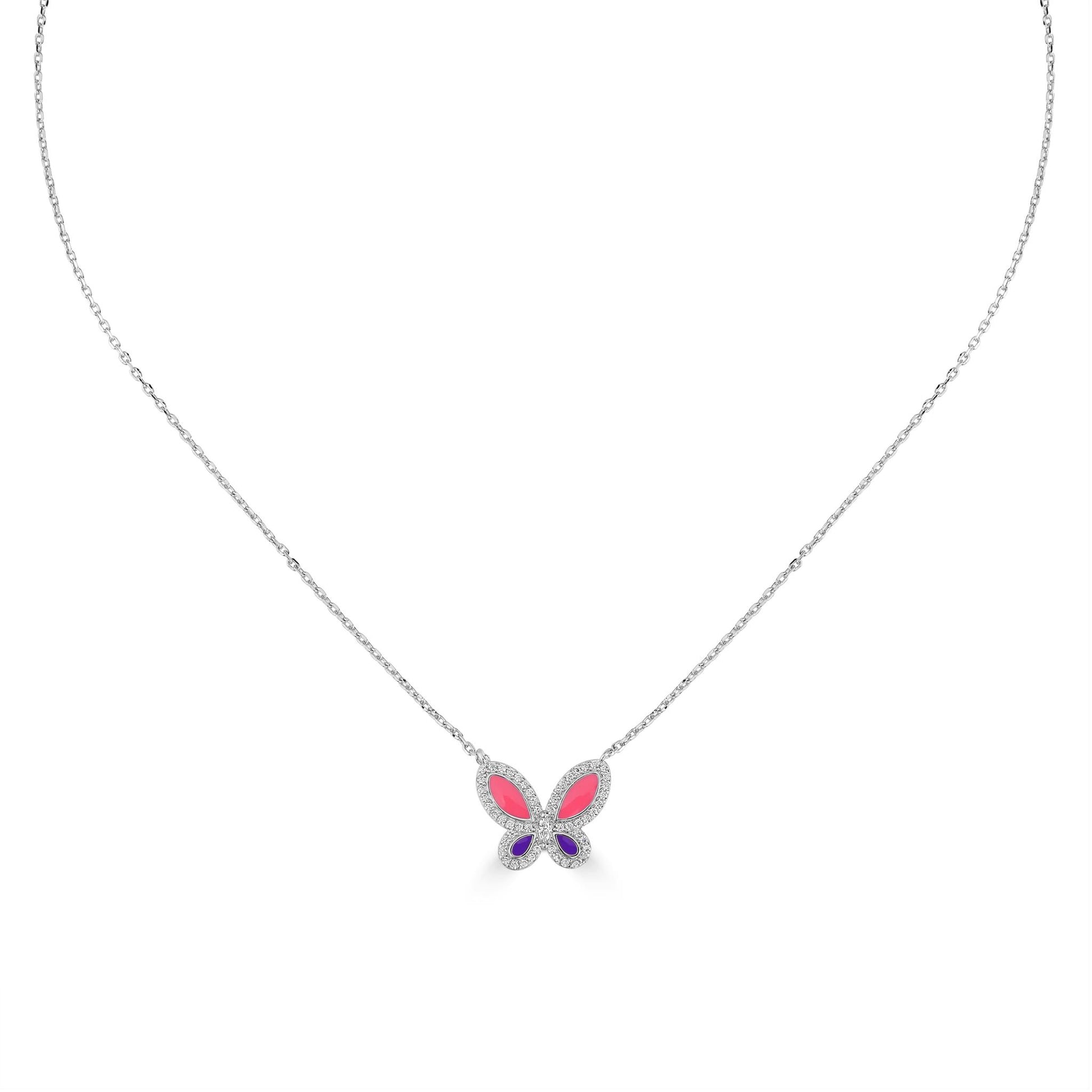 Bob Mackie is an internationally renowned costume and fashion designer who has dressed some of the most glamorous entertainment icons in the world. Gemistry has partnered with Bob Mackie in a brand new collaboration that marries the designer's exquisite sense of glamour and vibrant color with Gemistry's expertise in quality and craftmanship. The Gemistry Bob Mackie Butterfly Necklace features a Silver-Plated Brass chain with a Pink and Purple Cubic Zirconia Butterfly Pendant. The marquise cut colored CZ stones form the wings, and are surrounded by smaller round white cubic zirconias which form the outline of the butterfly. The chain is 16 inches long plus a 2 inch extender, and is secured with a lobster claw clasp. Whether you want to elevate your look, surprise someone with a thoughtful present, or celebrate a milestone, this exclusive collection helps you do just that!