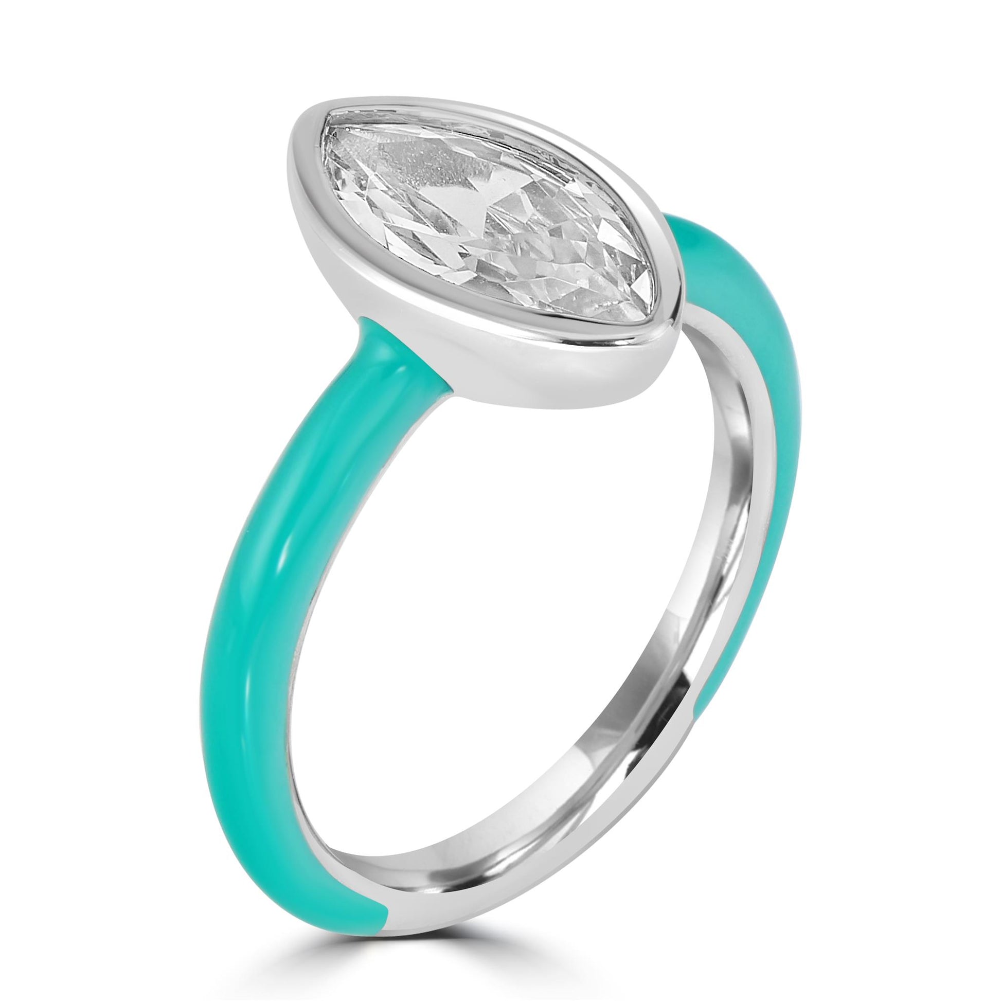 Bob Mackie is an internationally renowned costume and fashion designer who has dressed some of the most glamorous entertainment icons in the world. Gemistry has partnered with Bob Mackie in a brand new collaboration that marries the designer's exquisite sense of glamour and vibrant color with Gemistry's expertise in quality and craftmanship. The Gemistry Bob Mackie Cubic Zirconia Ring features Silver over Brass, with a marquise cut CZ as the center stone in a bezel mounting. The band of the ring is coated with a contrasting turquoise enamel. The soft, tranquil color of the enamel adds a playful and romantic touch to the overall design. Whether you want to elevate your look, surprise someone with a thoughtful present, or celebrate a milestone, this exclusive collection helps you do just that! We are a modern brand that redefines luxury. With a focus on craftsmanship, sustainability, and transparency, Gemistry is committed to creating timeless pieces that will be treasured for generations. Gemistry’s GIA-certified artisans thoughtfully create each piece to ensure it is lightweight, comfortable, and durable. When finished, we carefully polish and wrap your jewelry in a beautiful black gift pouch and box. Gemistry jewelry is a great way to indulge your wife, mom, grandmother, daughter, best friend or even yourself!