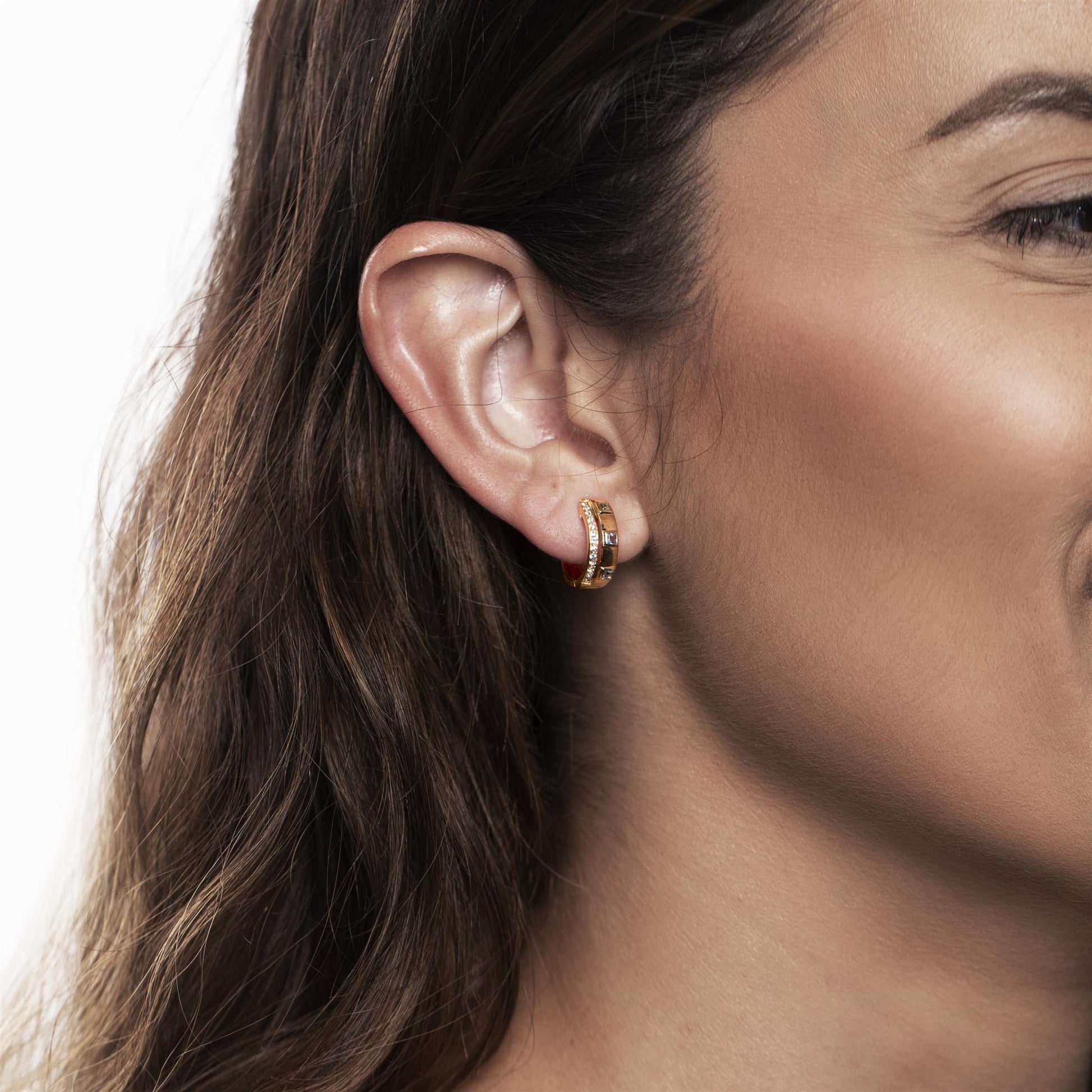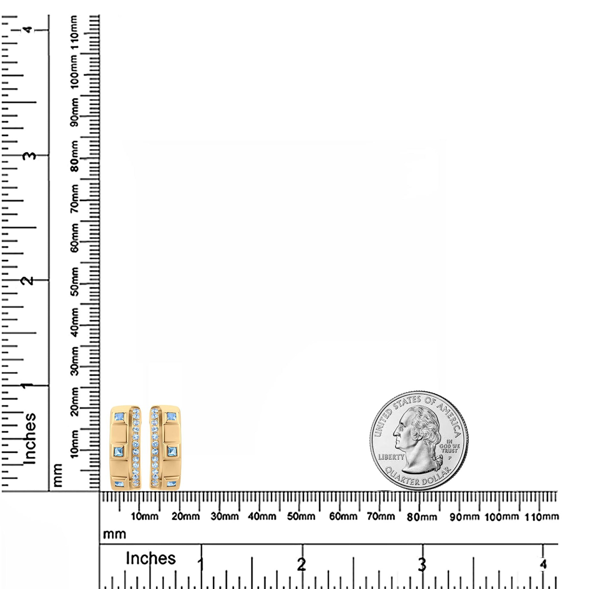Introducing the Gemistry Birthstone Collection: stylish jewelry featuring your birth month’s unique gemstone. Celebrate your individuality with these beautiful, personal pieces—perfect for gifts or treating yourself! Give your jewelry wardrobe a fashionable lift and add some brilliant bling to any outfit with these huggie hoops filled with round and square-cut Swiss Blue Topaz gemstones. Classic and chic, they feature 32 individual sparkling gemstones in a unique design set in genuine 14K Gold, with hinge snap closures. Topaz is the birthstone for the month of November. Each Topaz is meticulously selected for its clarity, hue, and saturation, ensuring your earrings are truly one-of-a-kind.