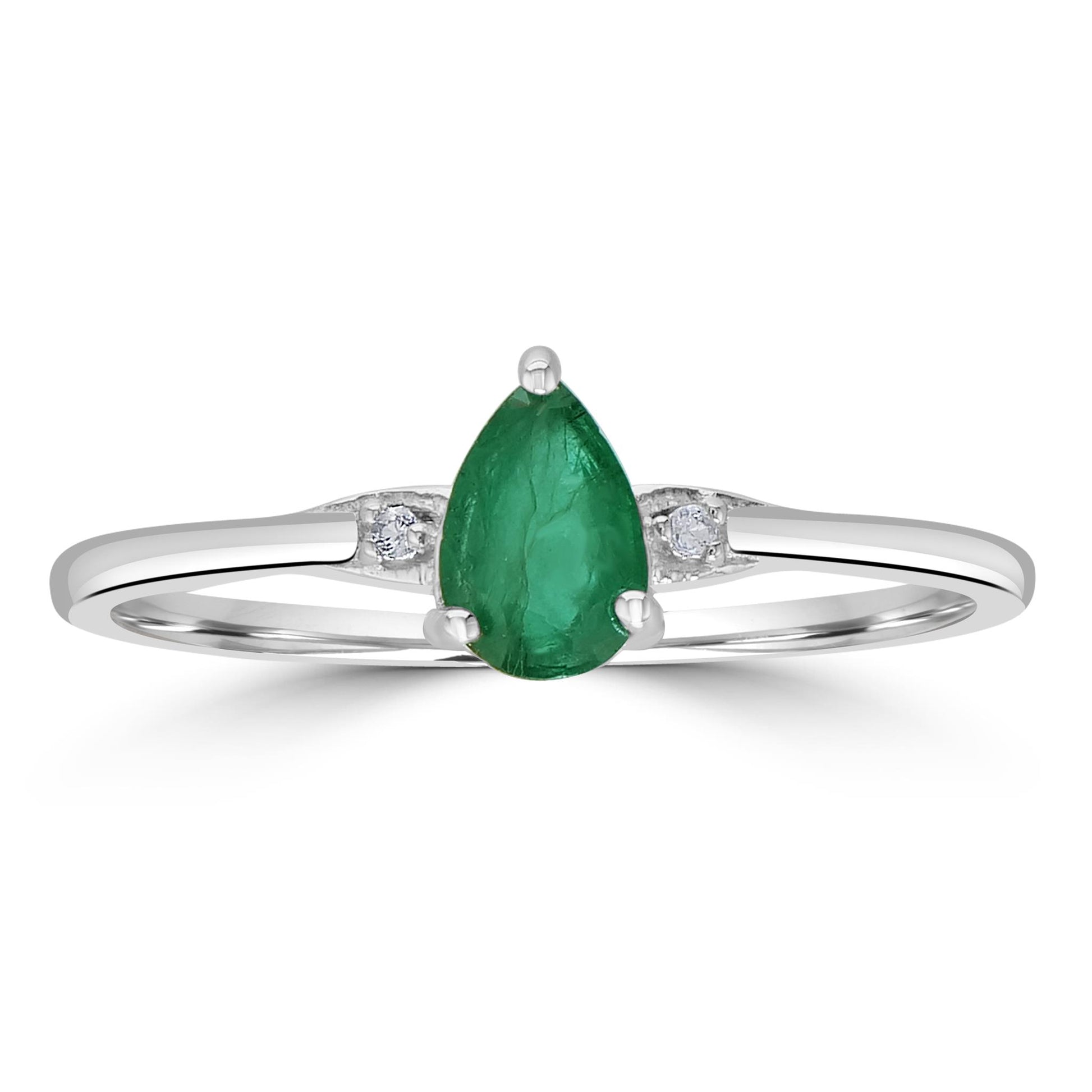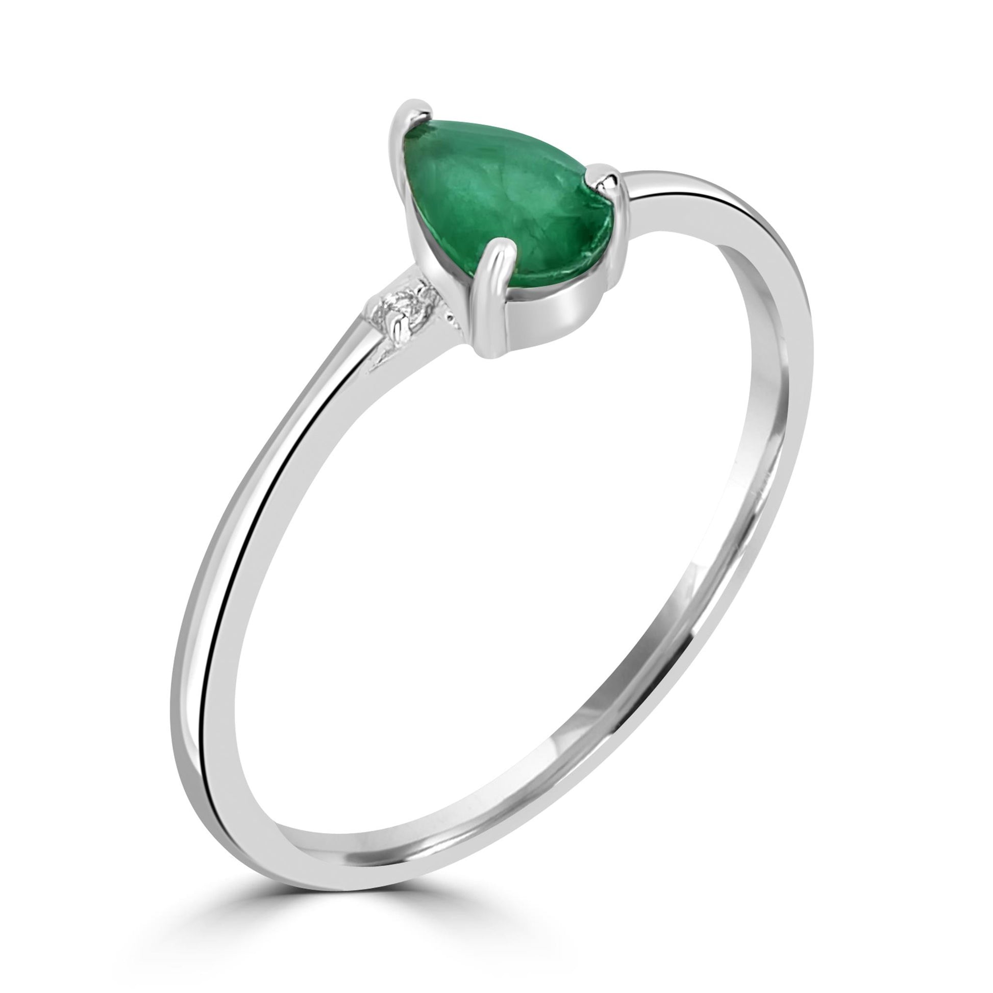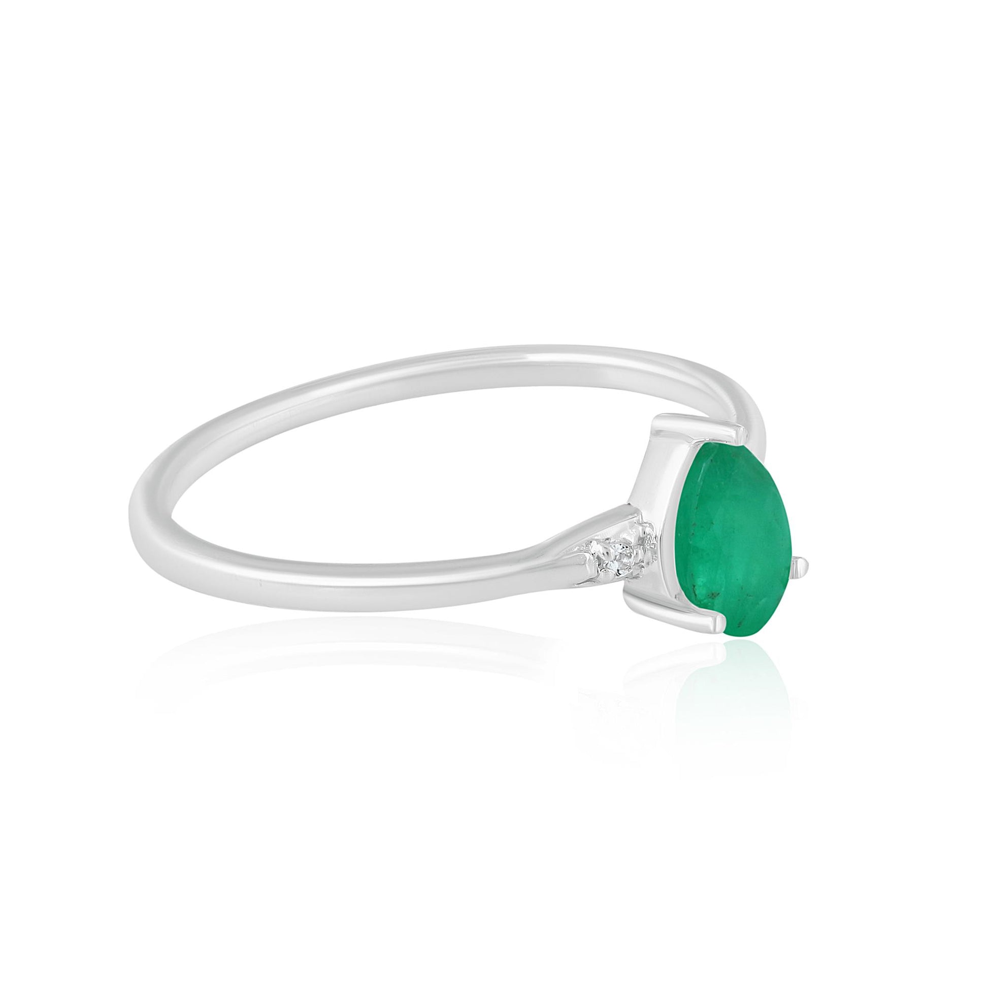 Introducing the Gemistry Stack Ring Collection: a versatile assortment of rings designed for effortless layering. Each piece combines timeless sophistication with modern flair, perfect for adding a touch of chic to any outfit. Mix, match, and stack to create your own unique style statement. The Dew 3-Stone Horizontal Stackable Pear Gemstone Ring is handcrafted from .925 Sterling Silver which is both lead-and nickel-free. This prong-set ring features 1 genuine Emerald gemstone complemented by 2 round White Topaz side stones. Emerald is May's birthstone. It symbolizes foresight, good fortune, and youth. Each gemstone is meticulously selected for its clarity, hue, and saturation, ensuring your ring is truly one-of-a-kind.