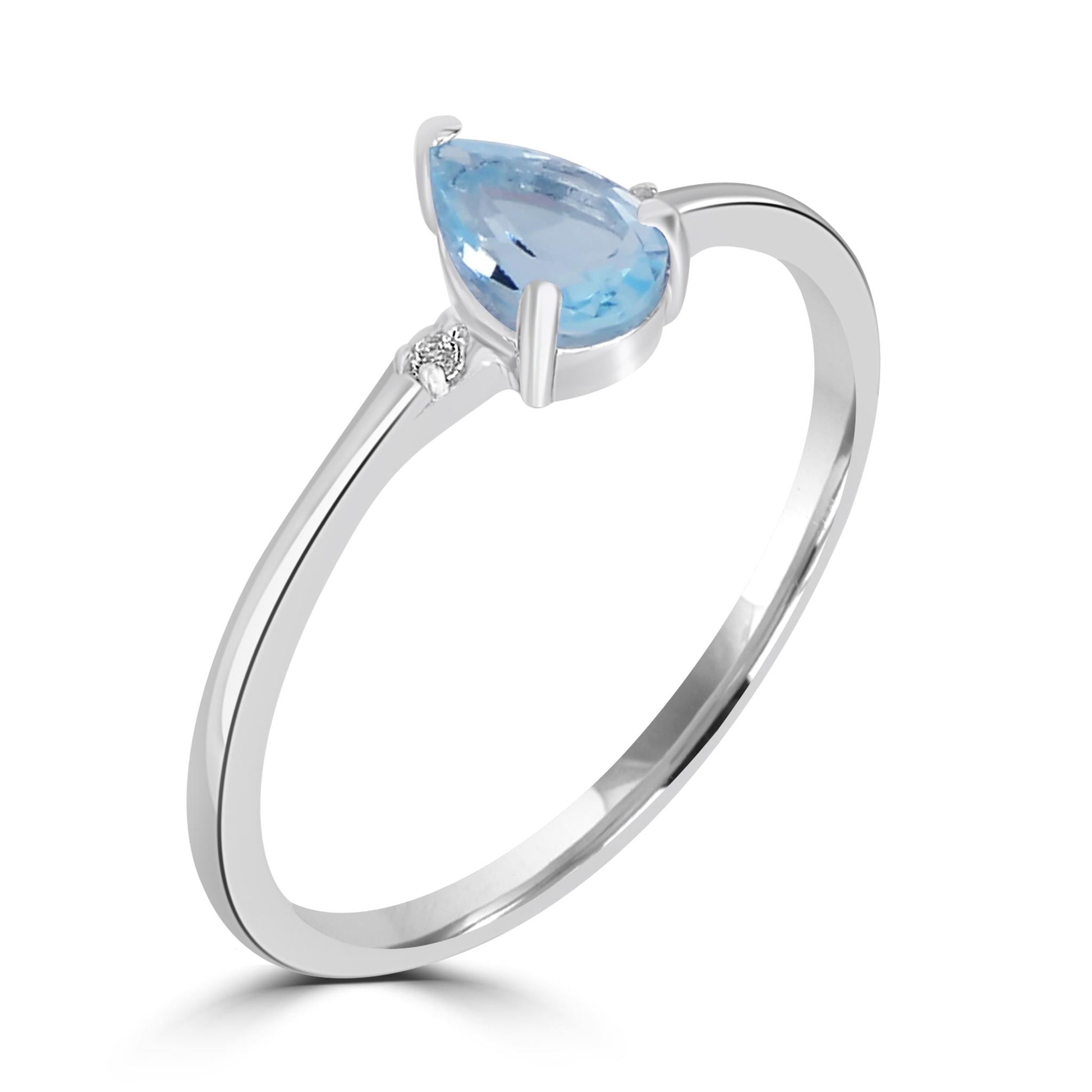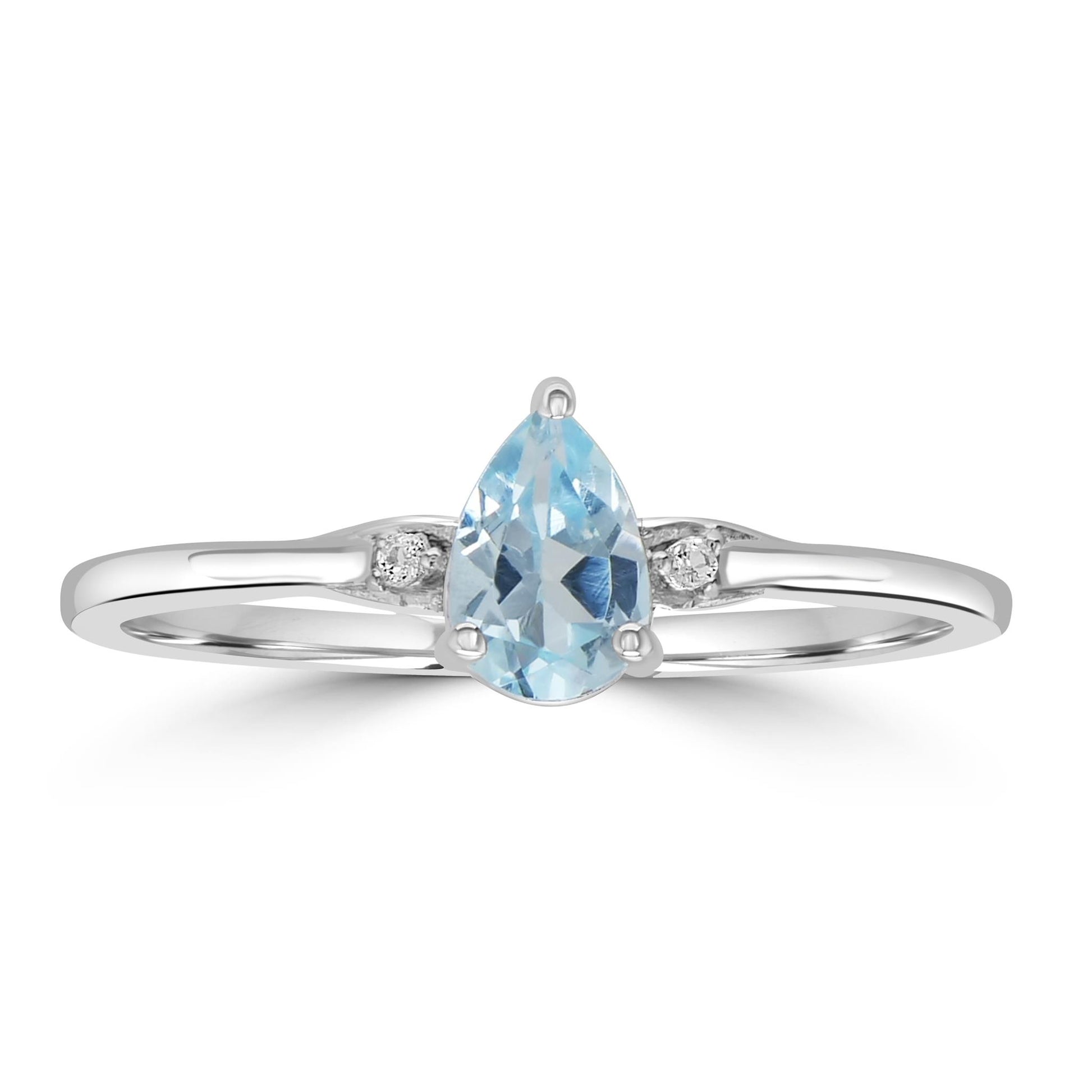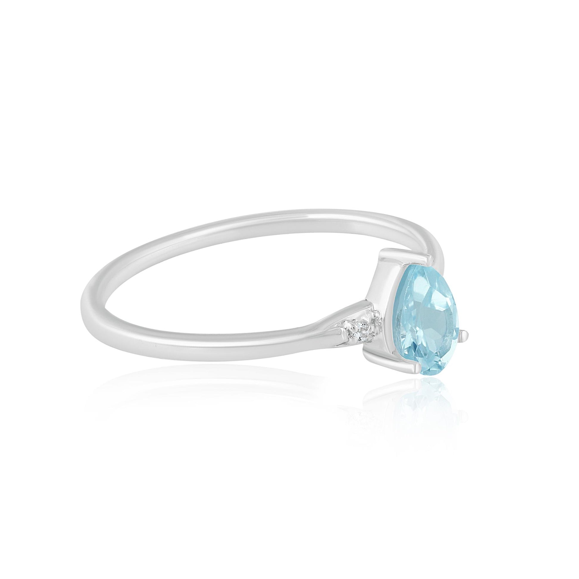 Introducing the Gemistry Stack Ring Collection: a versatile assortment of rings designed for effortless layering. Each piece combines timeless sophistication with modern flair, perfect for adding a touch of chic to any outfit. Mix, match, and stack to create your own unique style statement. The Dew 3-Stone Horizontal Stackable Pear Gemstone Ring is handcrafted from .925 Sterling Silver which is both lead-and nickel-free. This prong-set ring features 1 genuine Sky Blue Topaz gemstone complemented by 2 round White Topaz side stones. Blue Topaz is December's birthstone. It symbolizes honesty, deep emotional attachment, and clarity of feelings. Each Sky Blue Topaz gemstone is meticulously selected for its clarity, hue, and saturation, ensuring your ring is truly one-of-a-kind.
