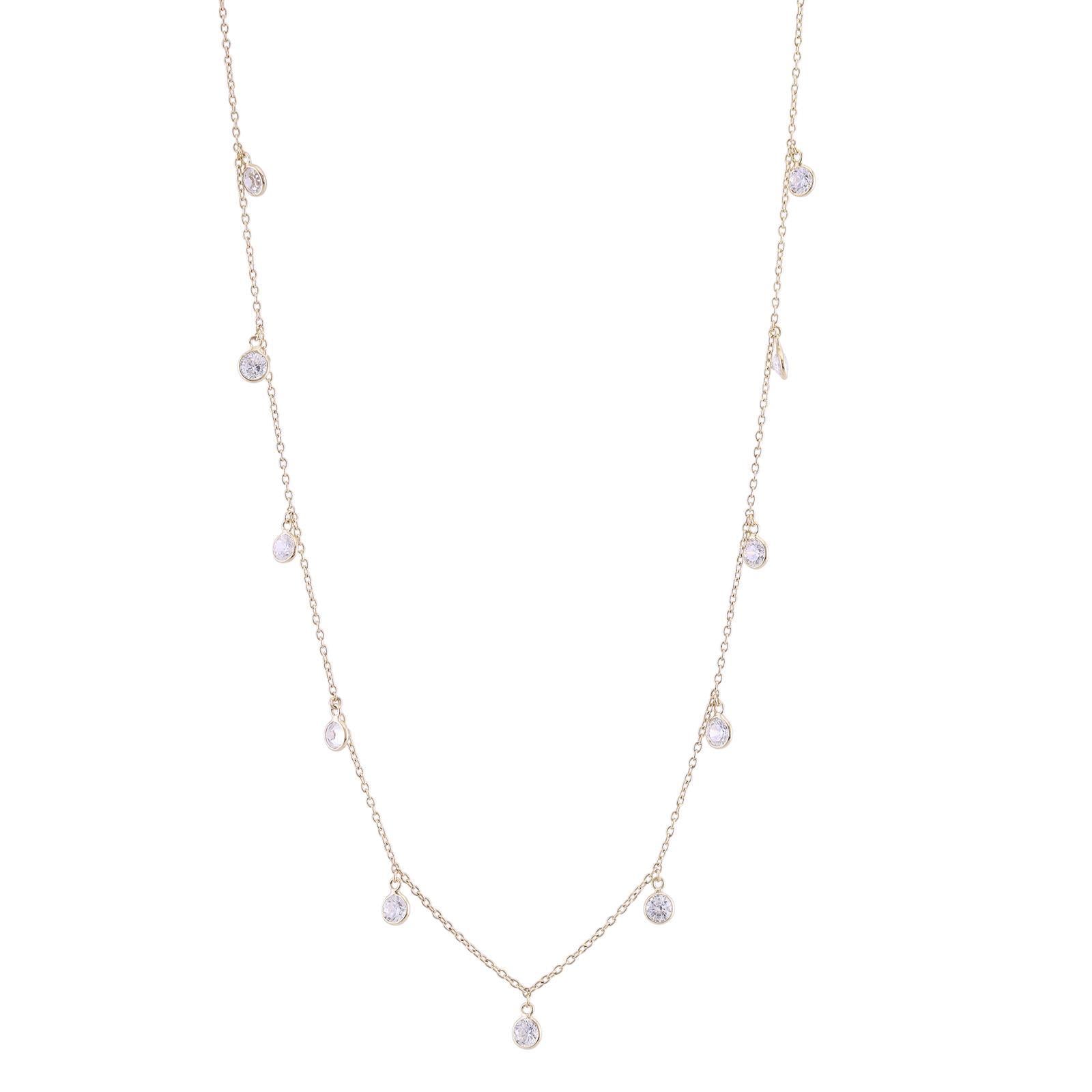 This sterling silver drop necklace features white CZ with a total carat weight of 5.33Ct . This product is crafted in sterling silver and comes with the stamp of 925 which guarantees the metal purity. This petite necklace is embellished with sparkling drops of white CZ that will definitely catch your eye. A must have for your accessory wardrobe.