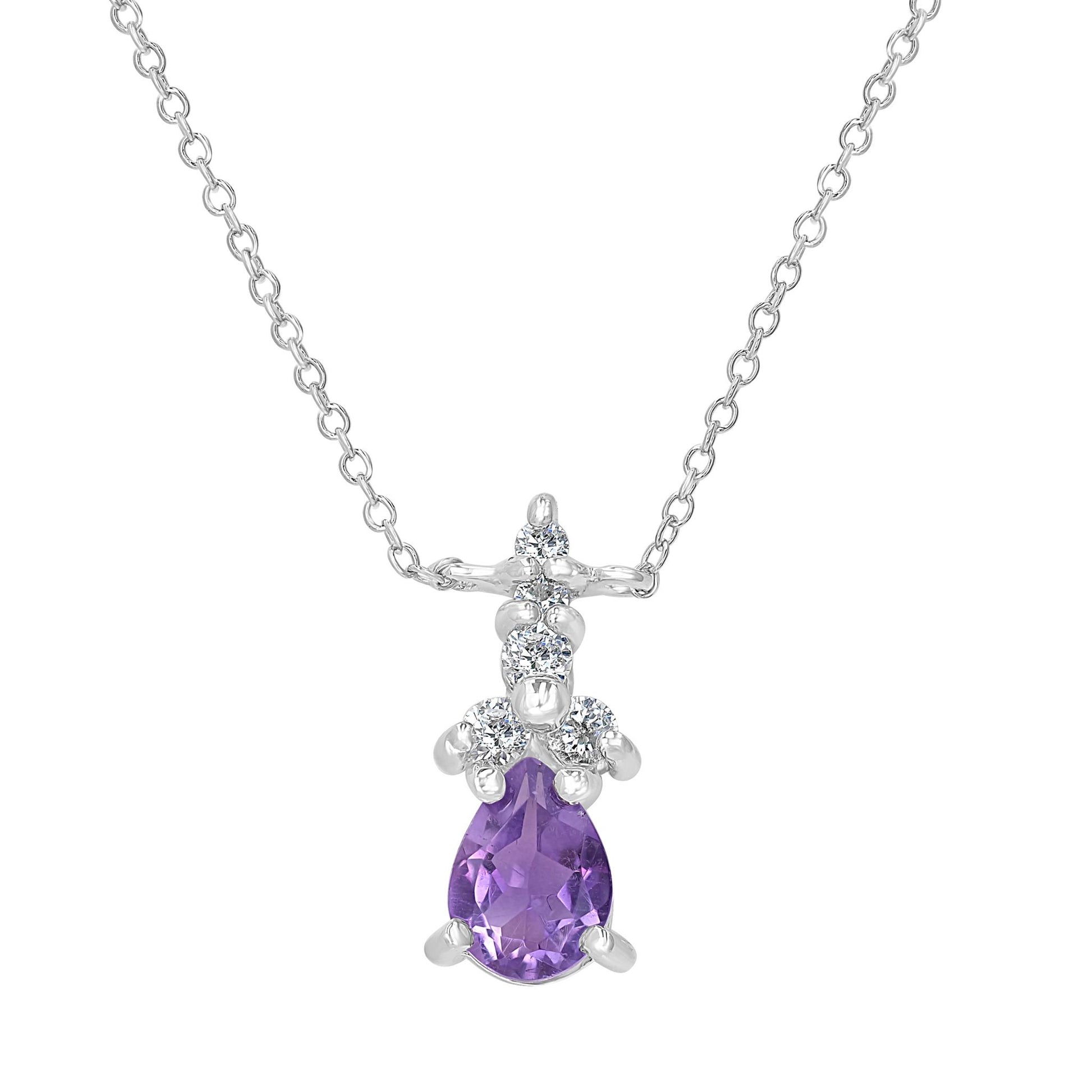 Designed with genuine Amethyst and CZ accents, this Sterling Silver necklace adds a touch of elegance to any outfit. Amethyst symbolizes peace, serenity and balance. It can relieve stress and balance moods swings, particularly anger, rage, fear and anxiety. Amethyst can dissolve negativities.