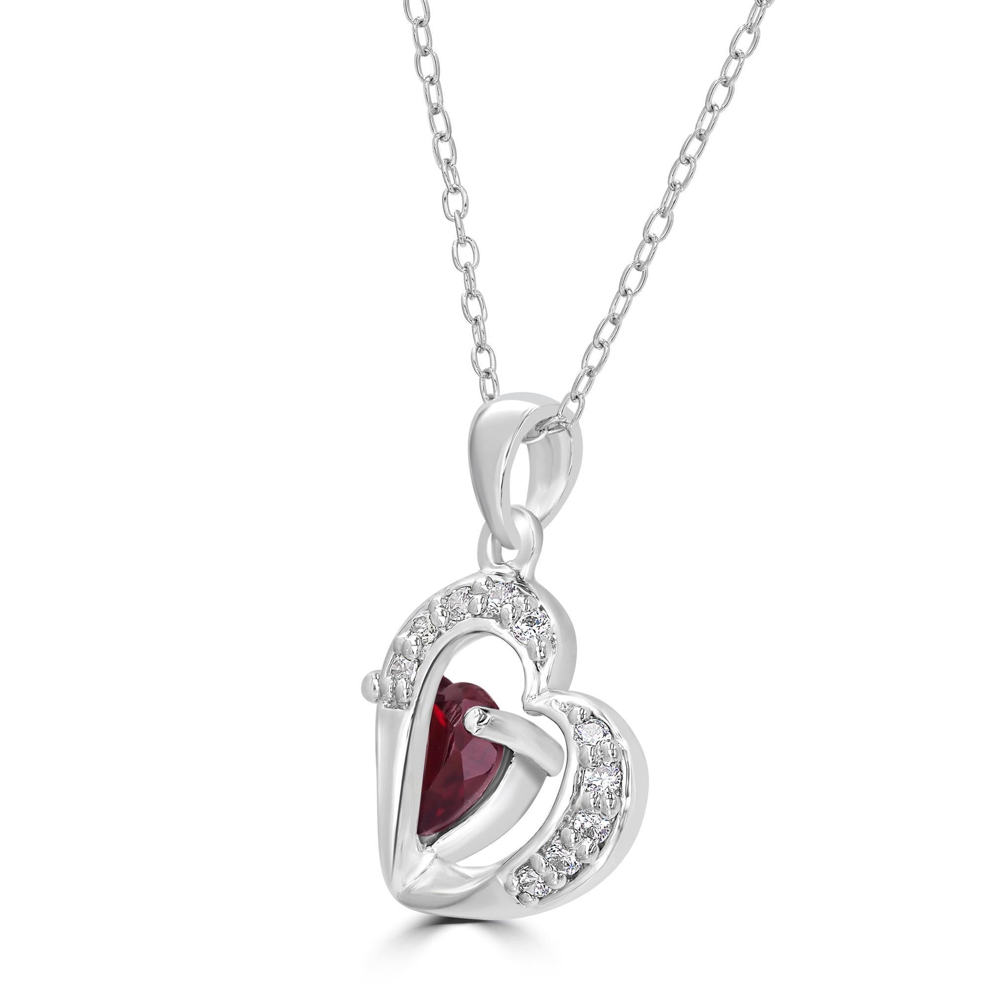 • Metal & Crafting: 925 Sterling Silver | Finish: Rhodium plating added to enhance shine and durability | Stone: Red Garnet & Cubic Zirconia | Stone Size: 6mm Heart