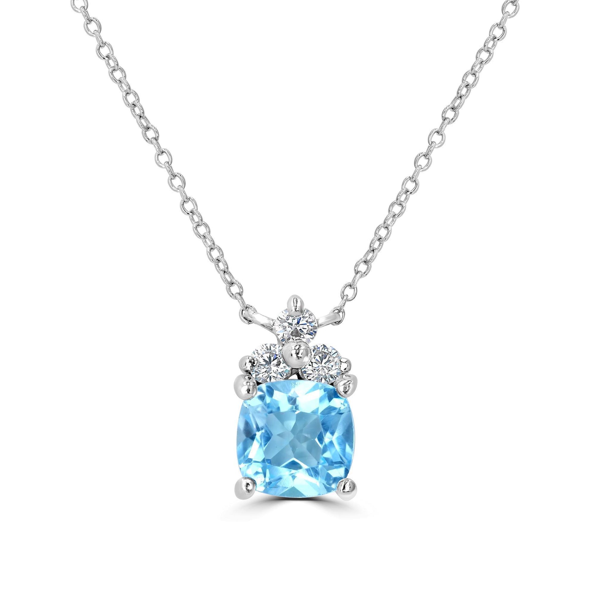 • Metal & Crafting: 925 Sterling Silver | Finish: Rhodium plating added to enhance shine and durability | Stone: Genuine Blue Topaz with Cubic Zirconia Accents | Clasp Type: Spring Lock Closure | Stone Size: 6MM Cushion Cut | Chain: 18" cable chain with a 2" extender. | Care: Imported wipe clean with a soft cloth.