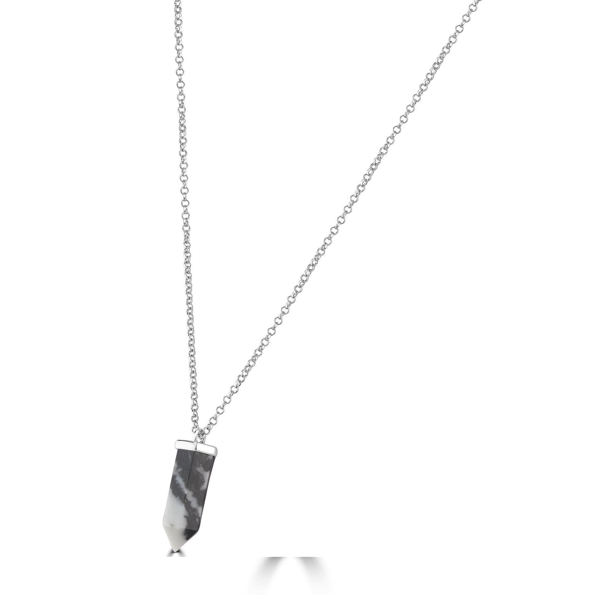The Fancy White Buffalo Cabochon Pendant Necklace is so elegant and stylish. Featuring a fancy cut cabochon of White Buffalo suspended from a delicate cable chain, this beautiful piece has a hanging length of 20 inches. This pendant necklace comes with a lobster clasp for easy wear. Adorn yourself or your loved one with this stunning frontal necklace be it any occasion.