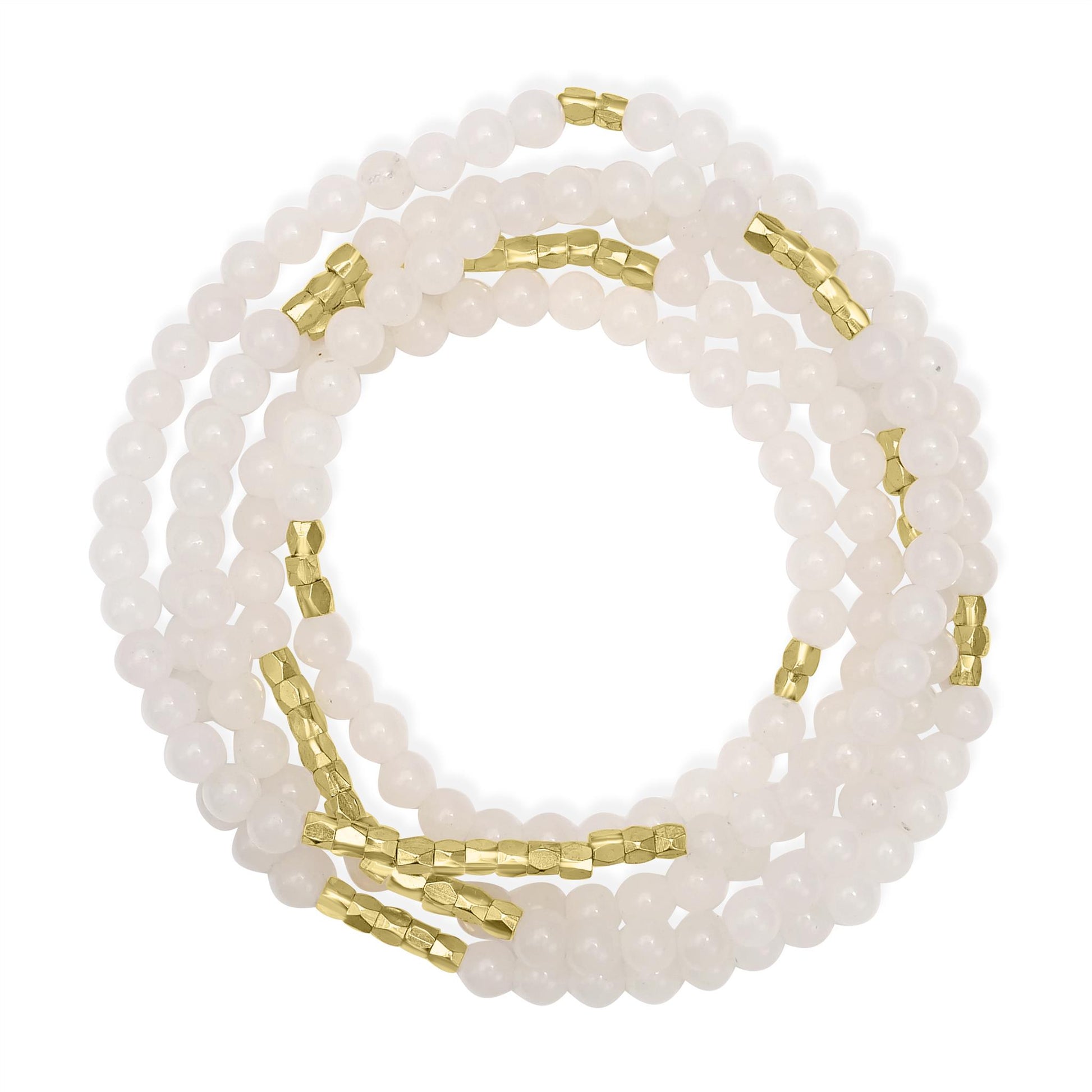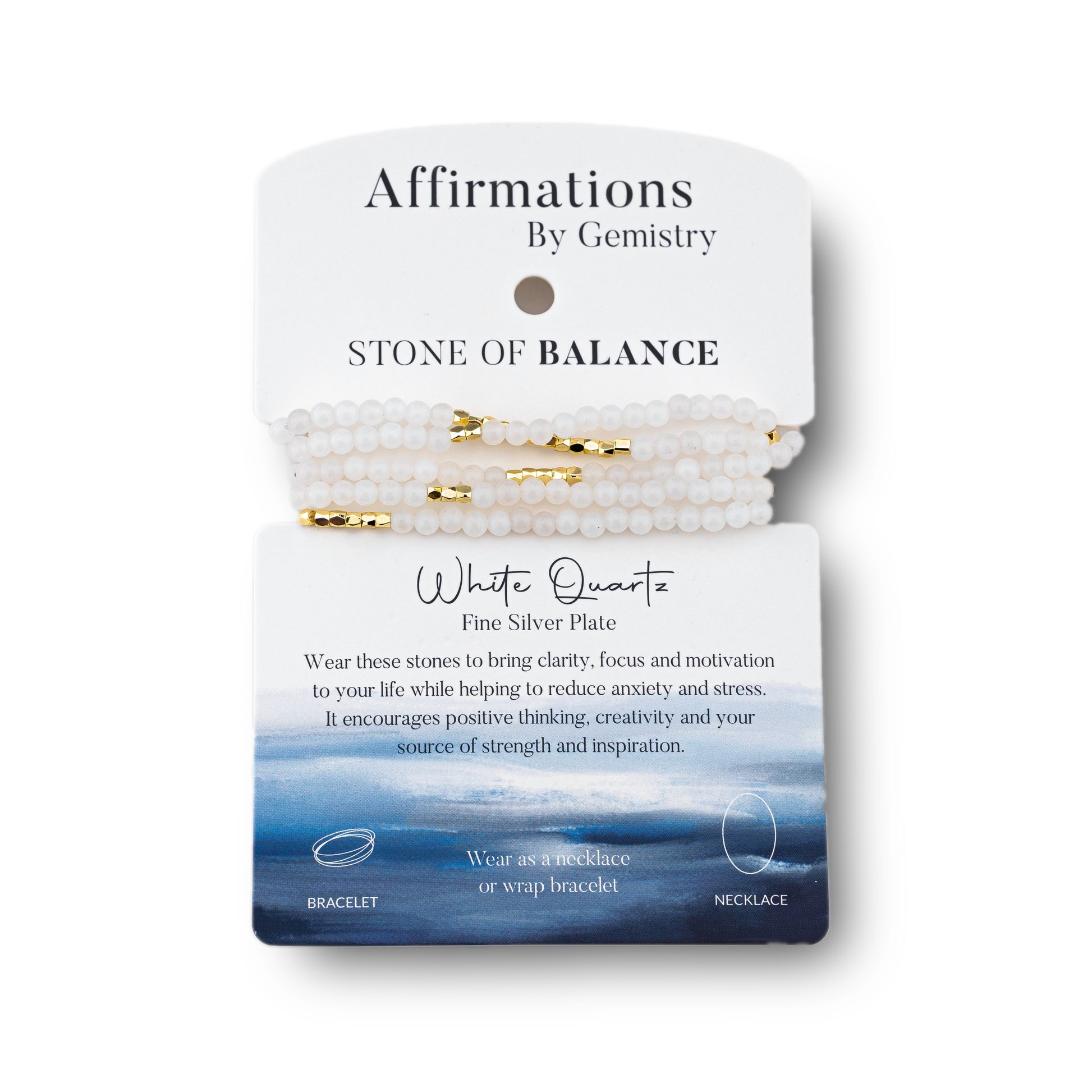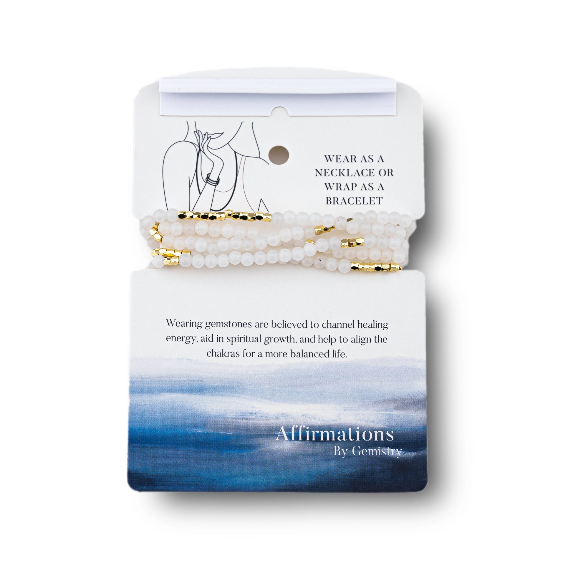 The Affirmations Wrap Bracelets by Gemistry are the perfect way to embrace your love of fashion while unlocking the healing energy of that comes from wearing our genuine gemstones. Wearing gemstones is believed to help to open, balance and harmonize the body’s seven chakras for improved physical and spiritual health. Different gemstones are associated with each of the chakras, providing grounding, security, protection and emotional healing. Each gemstone in our collection is both beautiful and meaningful and can be styled as either a wrap bracelet or used in a single strand as a necklace. The Gold-Plated Wrap Bracelet from Gemistry features a wrapped strand of 2mm round White Quartz beads interspersed with 14K Gold-Plated Brass accents. The simple strand design allows the bracelet to wrap around the wrist multiple times, creating a layered look from a single piece. The vibrant gemstone beads contrast with the shiny Gold-Plated Brass, creating a striking and elegant appearance. This bracelet is flexible, adjustable, and easy to wear and style with casual outfits and formal attire alike, making it ideal for fashion enthusiasts, gemstone lovers, gift givers, and anyone looking for a pop of chic!