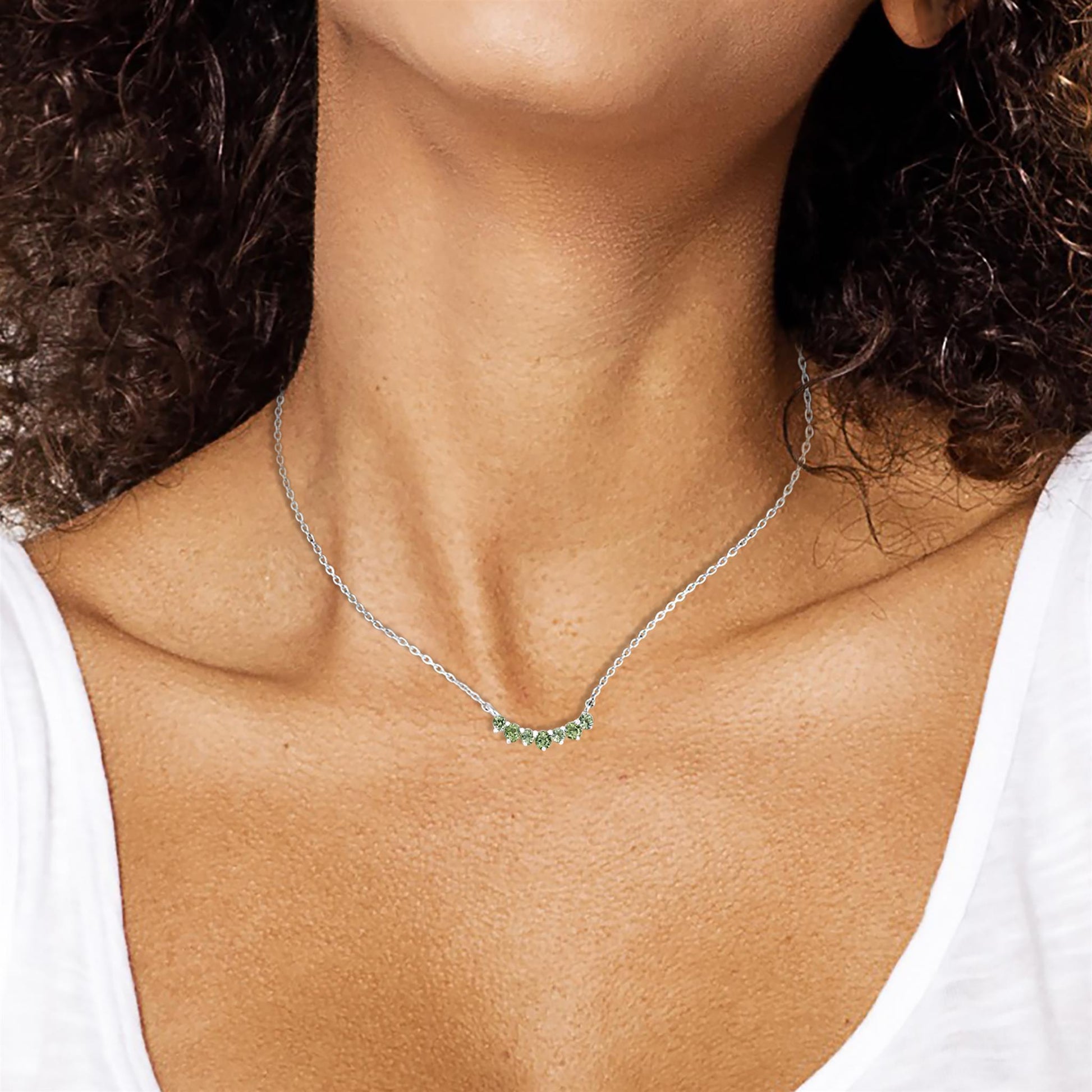 Gemistry Grace 7 Round Peridot Curved Bar Necklace with 18 Inch Cable Chain