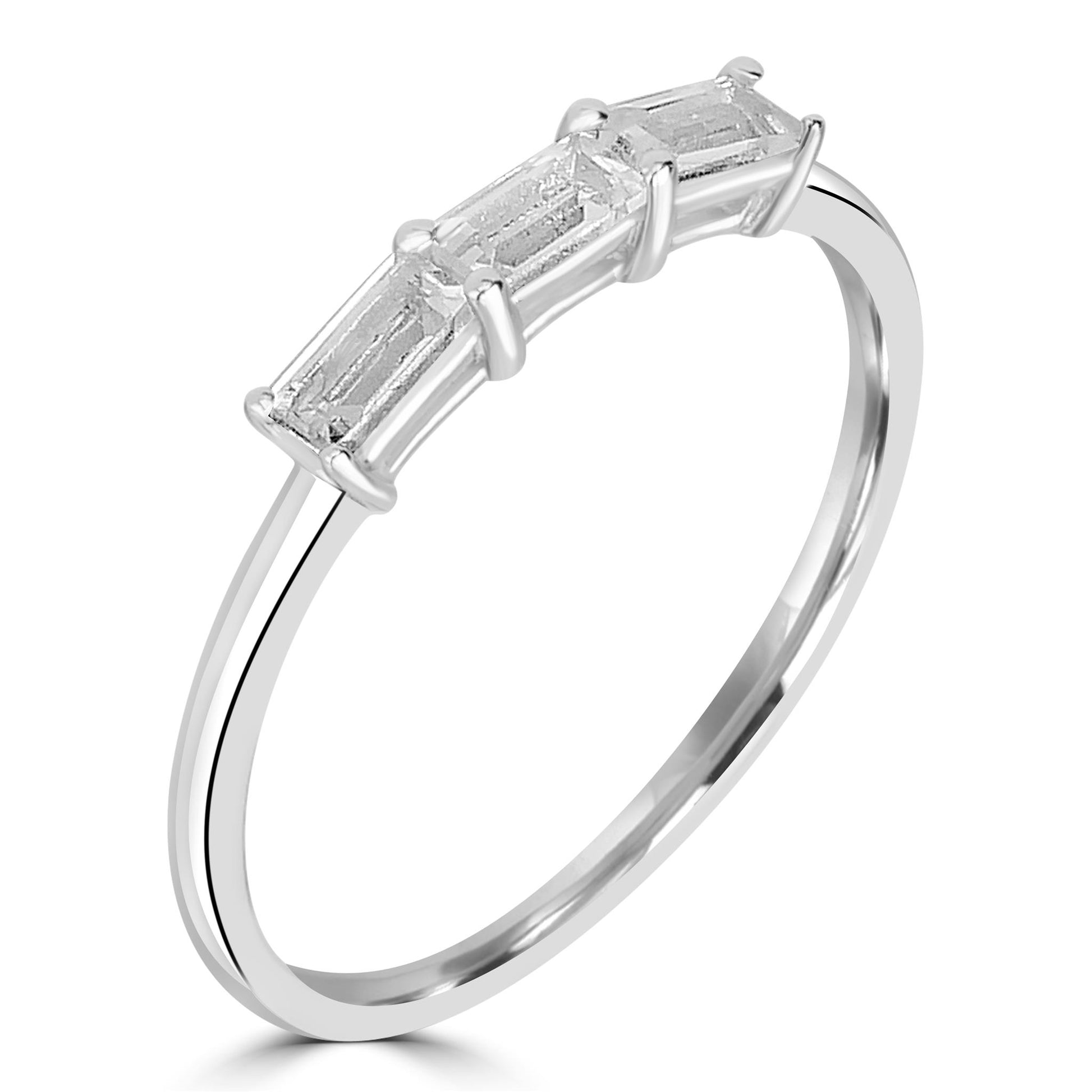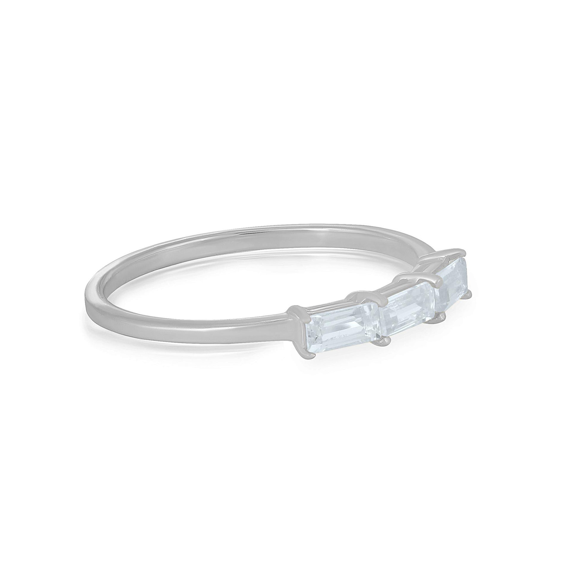 Introducing the Gemistry Stack Ring Collection : a versatile assortment of rings designed for effortless layering. Each piece combines timeless sophistication with modern flair, perfect for adding a touch of chic to any outfit. Mix, match, and stack to create your own unique style statement. Handcrafted from .925 Sterling Silver, the Heidi 3-Stone Baguette ring features 3 bezel-set genuine White Topaz gemstones. White Topaz, known for its clarity and symbolic meaning of honesty and deep emotional attachment, adds a refreshing touch of sparkle to this elegant piece. Our gemstone buyers meticulously select each White Topaz for its clarity, hue, saturation, and value, ensuring your ring is one-of-a-kind.