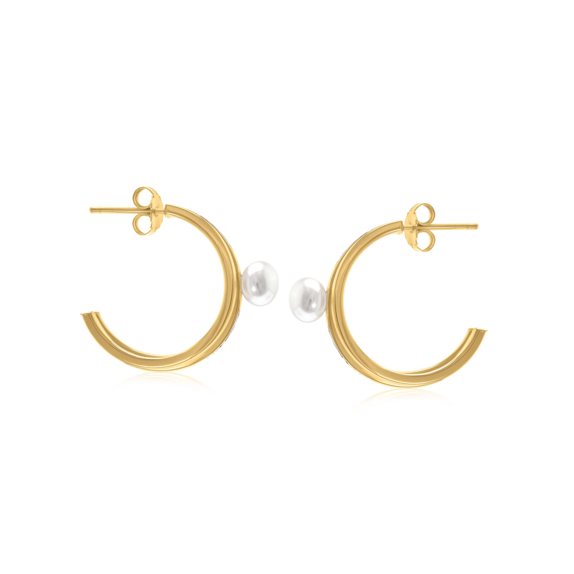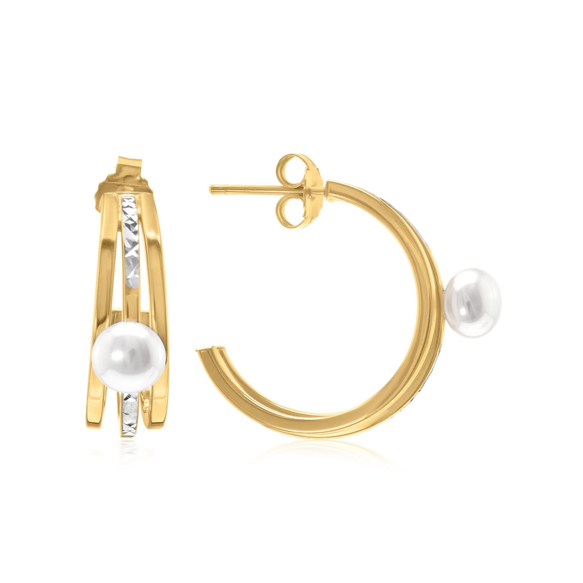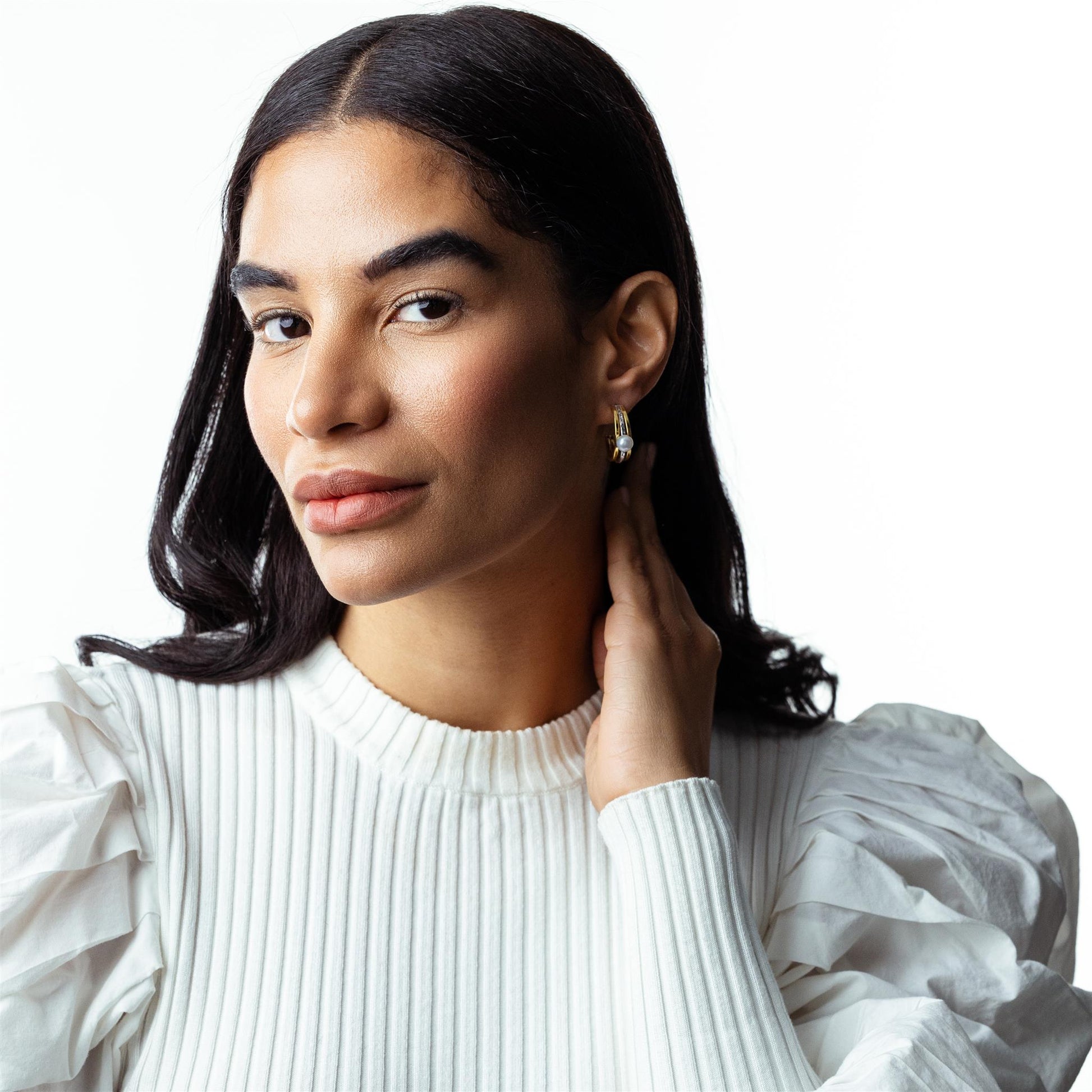 The Gemistry Judy Crowell Collection is renowned for its elegant and timeless designs, featuring a diverse range of unique gemstones set in high-quality materials. Each piece reflects Judy's classic and sophisticated style, offering versatile and affordable options suitable for both everyday wear and special occasions. Dazzle with these stunning Sterling Silver Triple Hoop Earrings. They feature a unique 14K Gold-Plated Sterling Silver triple hoop, and a delicate, cultured Freshwater Pearl at the center. These earrings are lightweight and have post and clutch closures (for pierced ears only).