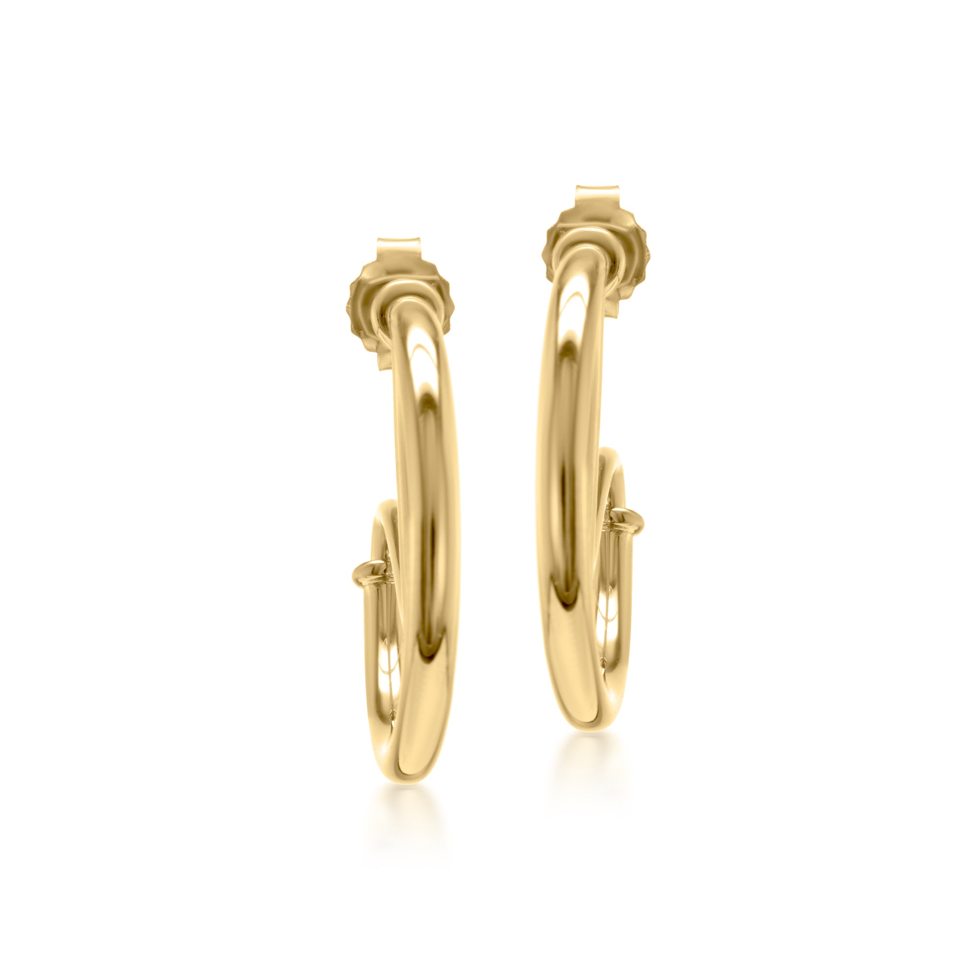 The Gemistry Judy Crowell Collection is renowned for its elegant and timeless designs, featuring a diverse range of unique gemstones set in high-quality materials. Each piece reflects Judy's classic and sophisticated style, offering versatile and affordable options suitable for both everyday wear and special occasions. Dazzle with these stunning 14K Gold-Plated Sterling Silver High Polish Funky Hoop Earrings. These high-polish hoop earrings are crafted from genuine .925 Sterling Silver with 14K Gold plating. The funky closed twist design makes for a sophisticated look, while the Gold plating on the Sterling Silver enhances the shine. These unique earrings are lightweight and have post and clutch closures (for pierced ears only).
