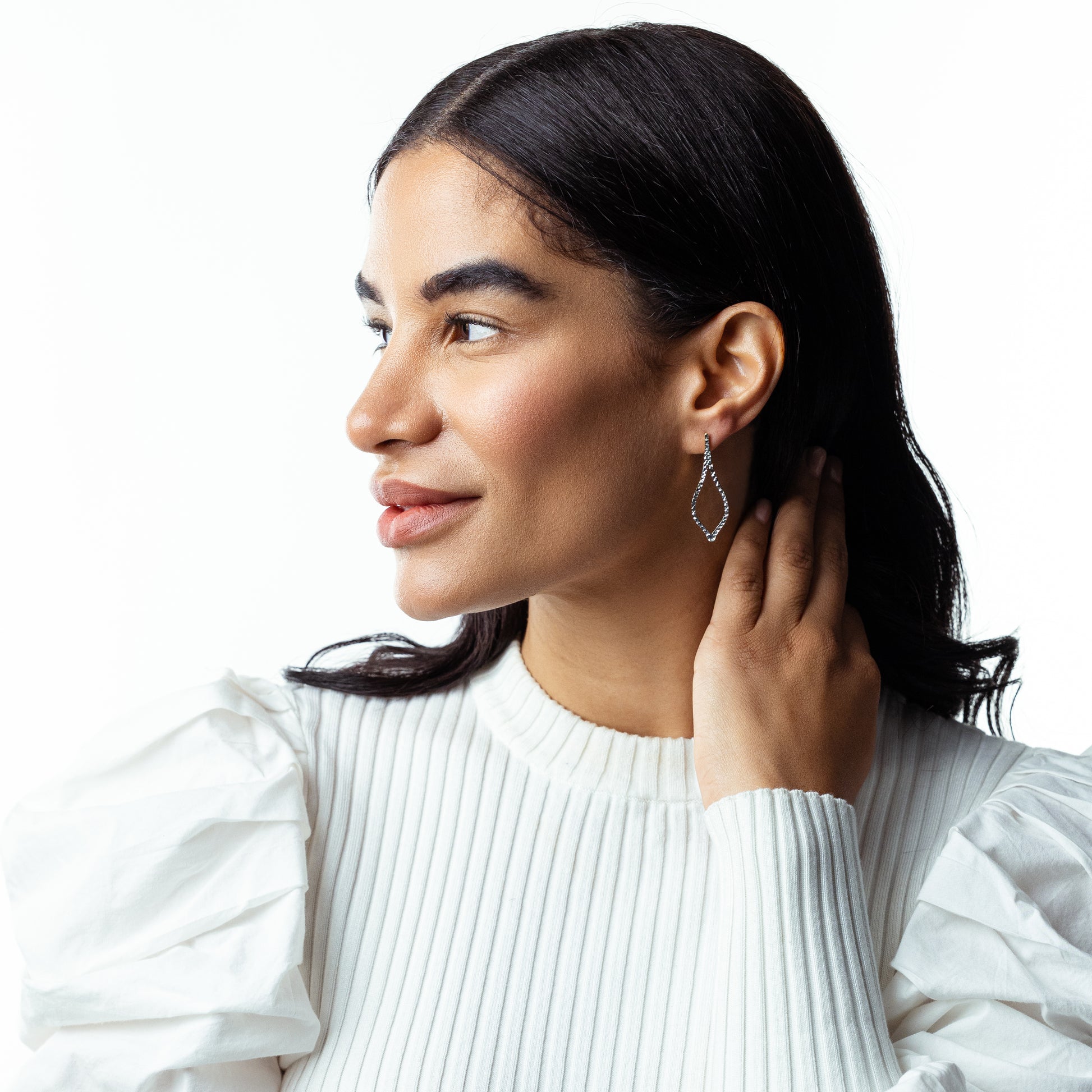 The Gemistry Judy Crowell Collection is renowned for its elegant and timeless designs, featuring a diverse range of unique gemstones set in high-quality materials. Each piece reflects Judy's classic and sophisticated style, offering versatile and affordable options suitable for both everyday wear and special occasions. Dazzle with these stunning genuine Sterling Silver Marquise Drop Earrings. They feature a unique diamond cut detailing and a sophisticated marquise shaped open design. The Rhodium plating on the Sterling Silver enhances the shine and makes these face-framing earrings glimmer and sparkle in the light. These earrings are lightweight and have post and clutch closures (for pierced ears only).