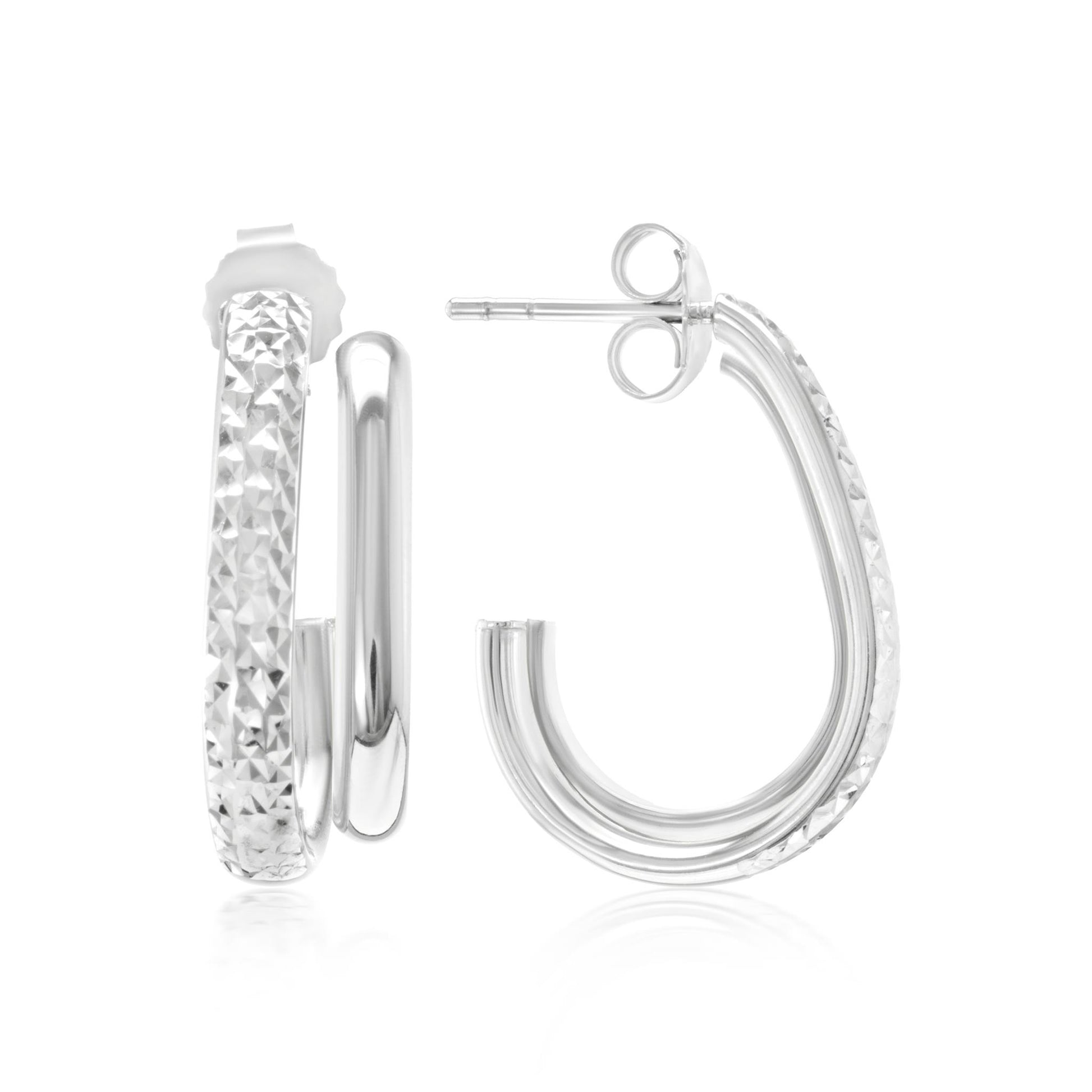 The Gemistry Judy Crowell Collection is renowned for its elegant and timeless designs, featuring a diverse range of unique gemstones set in high-quality materials. Each piece reflects Judy's classic and sophisticated style, offering versatile and affordable options suitable for both everyday wear and special occasions. Dazzle with these stunning Sterling Silver Diamond-Cut Rectangular J Hoop Earrings. They feature a unique diamond-cut facing and a contrasting smooth back, all with Rhodium-Plated genuine .925 Sterling Silver. The uniquely designed hoops glimmer like diamonds due to the high gloss plating and etched design. These earrings are lightweight and have post and clutch closures (for pierced ears only).