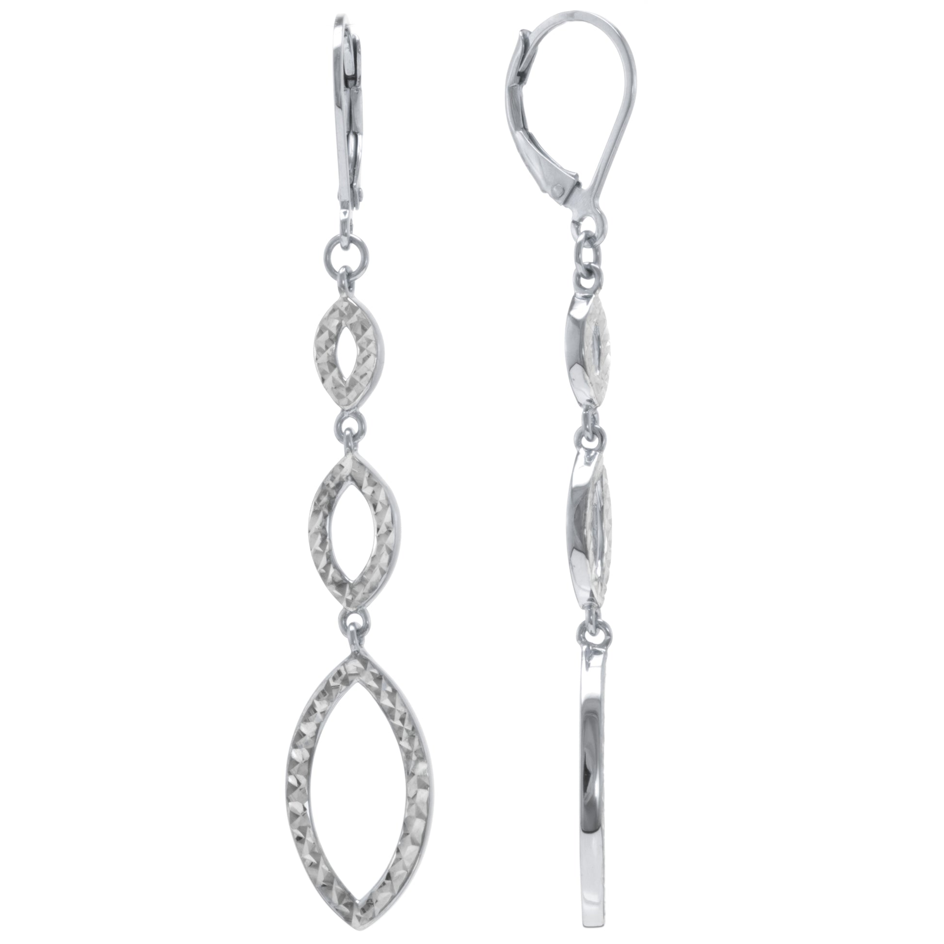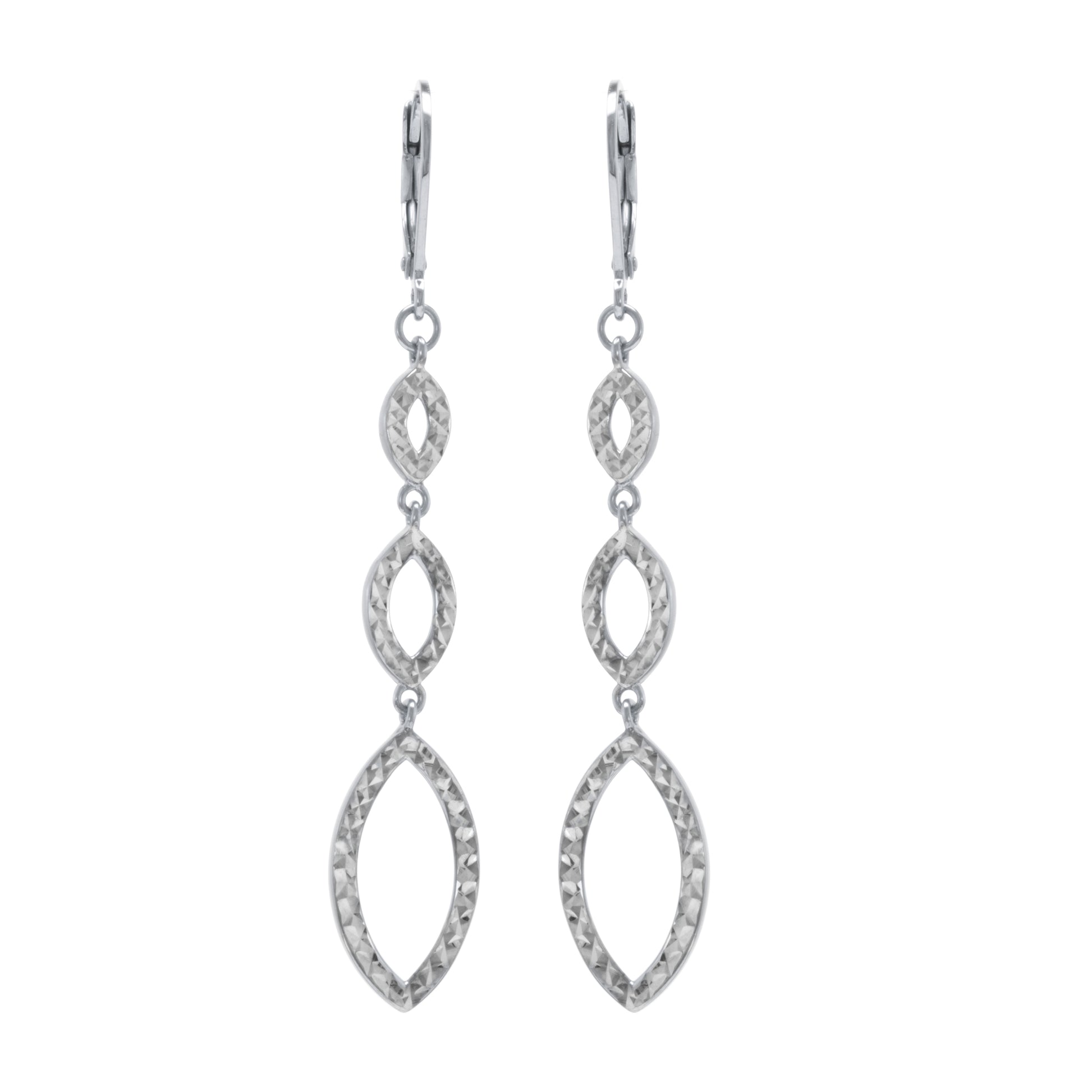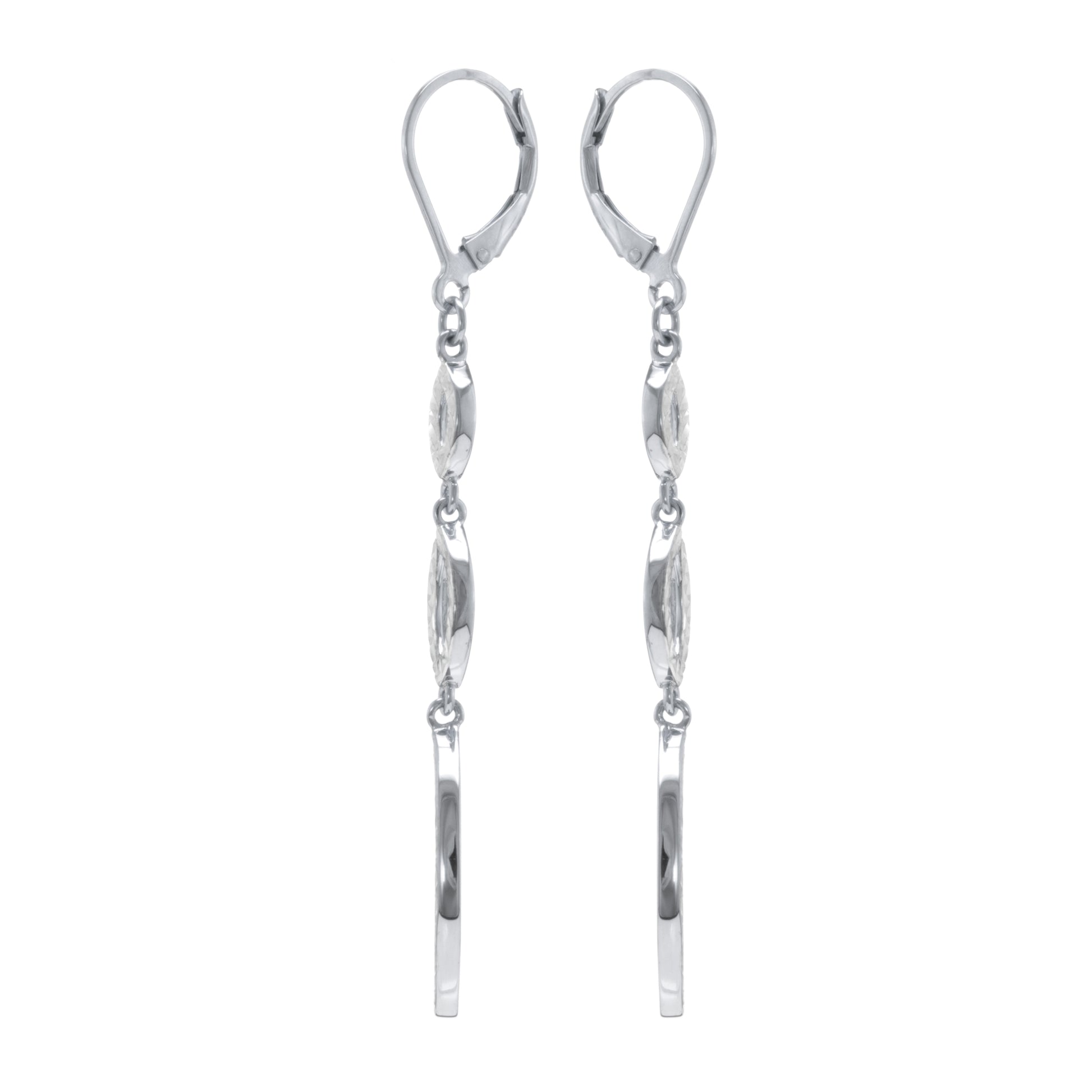 The Gemistry Judy Crowell Collection is renowned for its elegant and timeless designs, featuring a diverse range of unique gemstones set in high-quality materials. Each piece reflects Judy's classic and sophisticated style, offering versatile and affordable options suitable for both everyday wear and special occasions. Dazzle with these stunning genuine Sterling Silver Triple Marquise Drop Earrings. They feature a unique diamond cut detailing and a sophisticated marquise shaped open design. The Rhodium plating on the Sterling Silver enhances the shine and makes these face-framing earrings glimmer and sparkle in the light. These earrings are lightweight and have leverback closures (for pierced ears only).