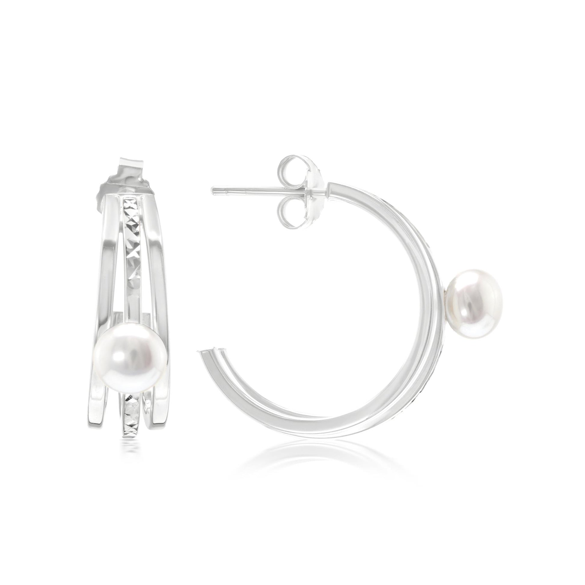 The Gemistry Judy Crowell Collection is renowned for its elegant and timeless designs, featuring a diverse range of unique gemstones set in high-quality materials. Each piece reflects Judy's classic and sophisticated style, offering versatile and affordable options suitable for both everyday wear and special occasions. Dazzle with these stunning Sterling Silver Triple Hoop Earrings. They feature a unique Rhodium-Plated genuine .925 Sterling Silver triple hoop, and a delicate, cultured Freshwater Pearl at the center. These earrings are lightweight and have post and clutch closures (for pierced ears only).