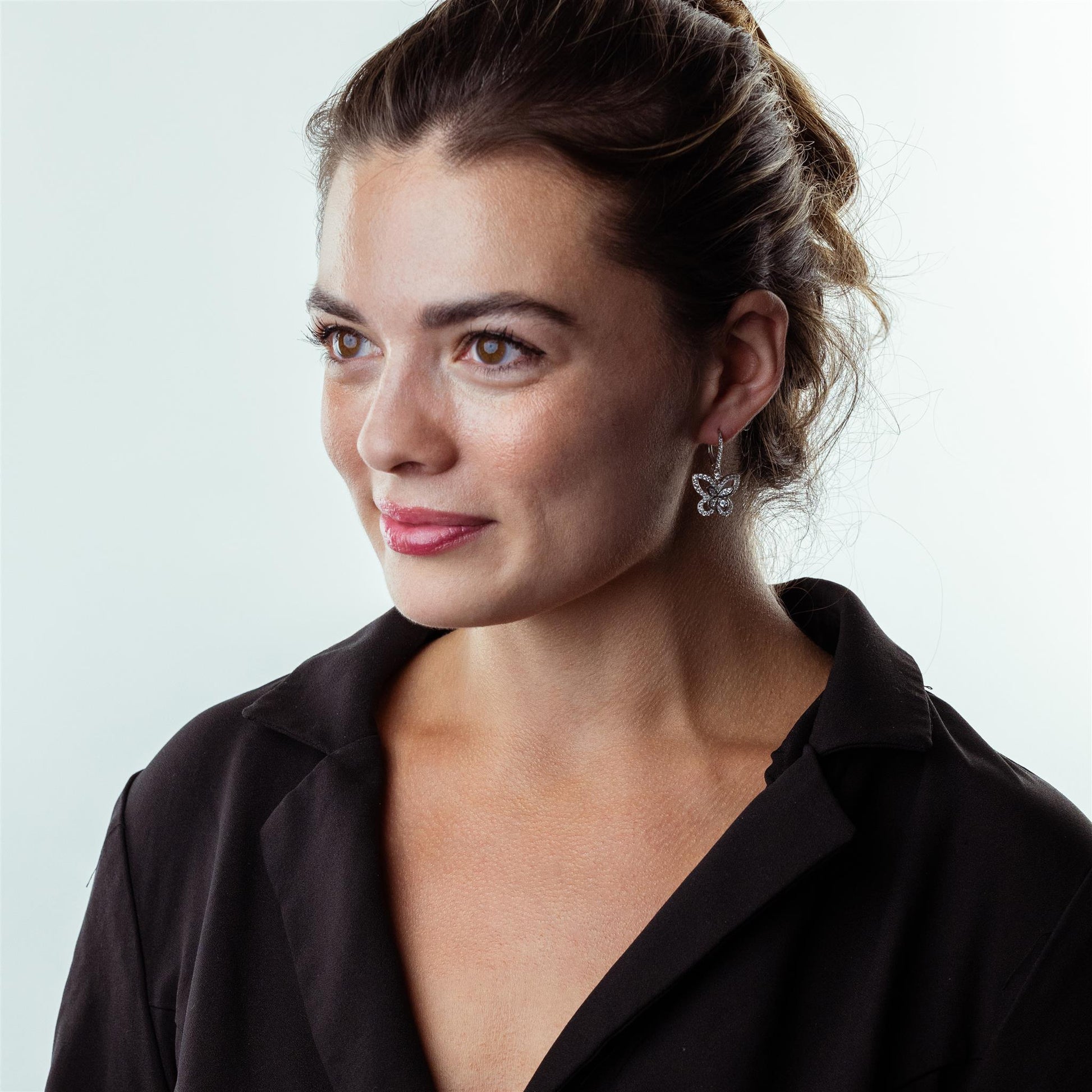 The Gemistry Judy Crowell Collection is renowned for its elegant and timeless designs, featuring a diverse range of unique gemstones set in high-quality materials. Each piece reflects Judy's classic and sophisticated style, offering versatile and affordable options suitable for both everyday wear and special occasions. Fun but refined, these butterfly earrings are ideal for any occasion. Made from Sterling Silver and adorned with Cubic Zirconia stones, they are lightweight without compromising their shine. With leverback closures, they are secure and easy to fasten, and for pierced ears only.