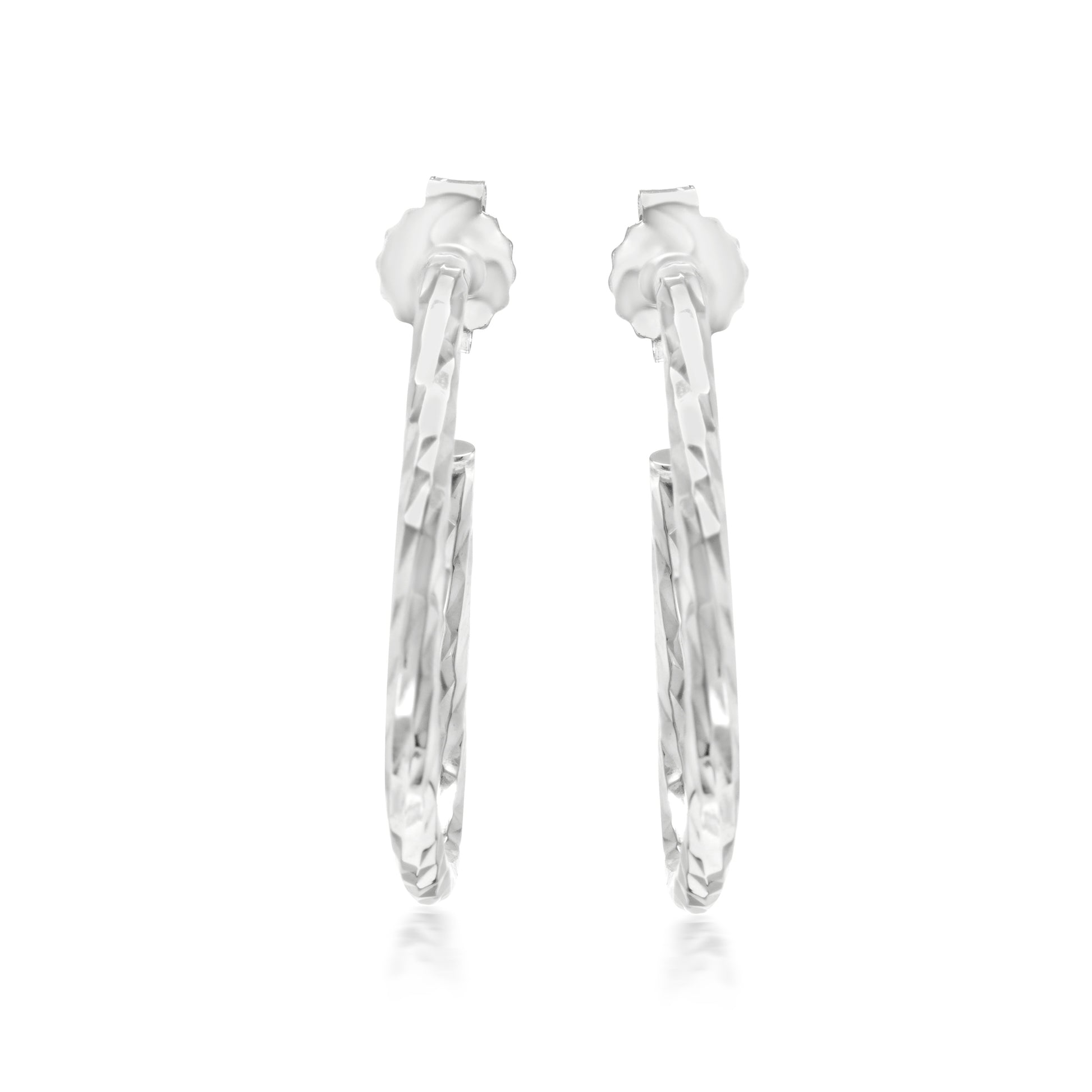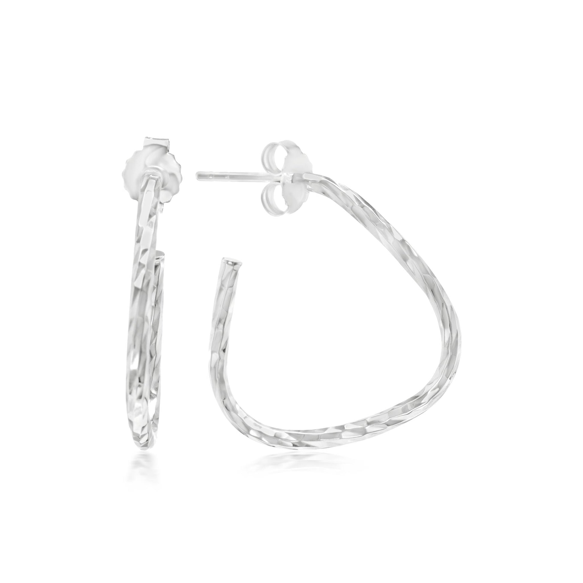 The Gemistry Judy Crowell Collection is renowned for its elegant and timeless designs, featuring a diverse range of unique gemstones set in high-quality materials. Each piece reflects Judy's classic and sophisticated style, offering versatile and affordable options suitable for both everyday wear and special occasions. Dazzle with these stunning Sterling Silver Diamond-Cut Triangular Hoop Earrings. They feature a unique diamond-cut facing and a contrasting smooth back, all with Rhodium-Plated genuine .925 Sterling Silver. The uniquely designed hoops glimmer like diamonds due to the high gloss plating and etched design. These earrings are lightweight and have post and clutch closures (for pierced ears only).